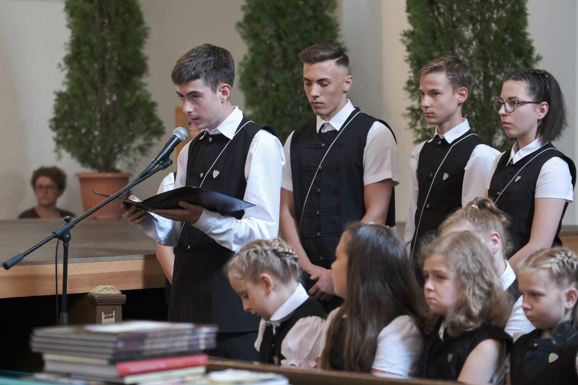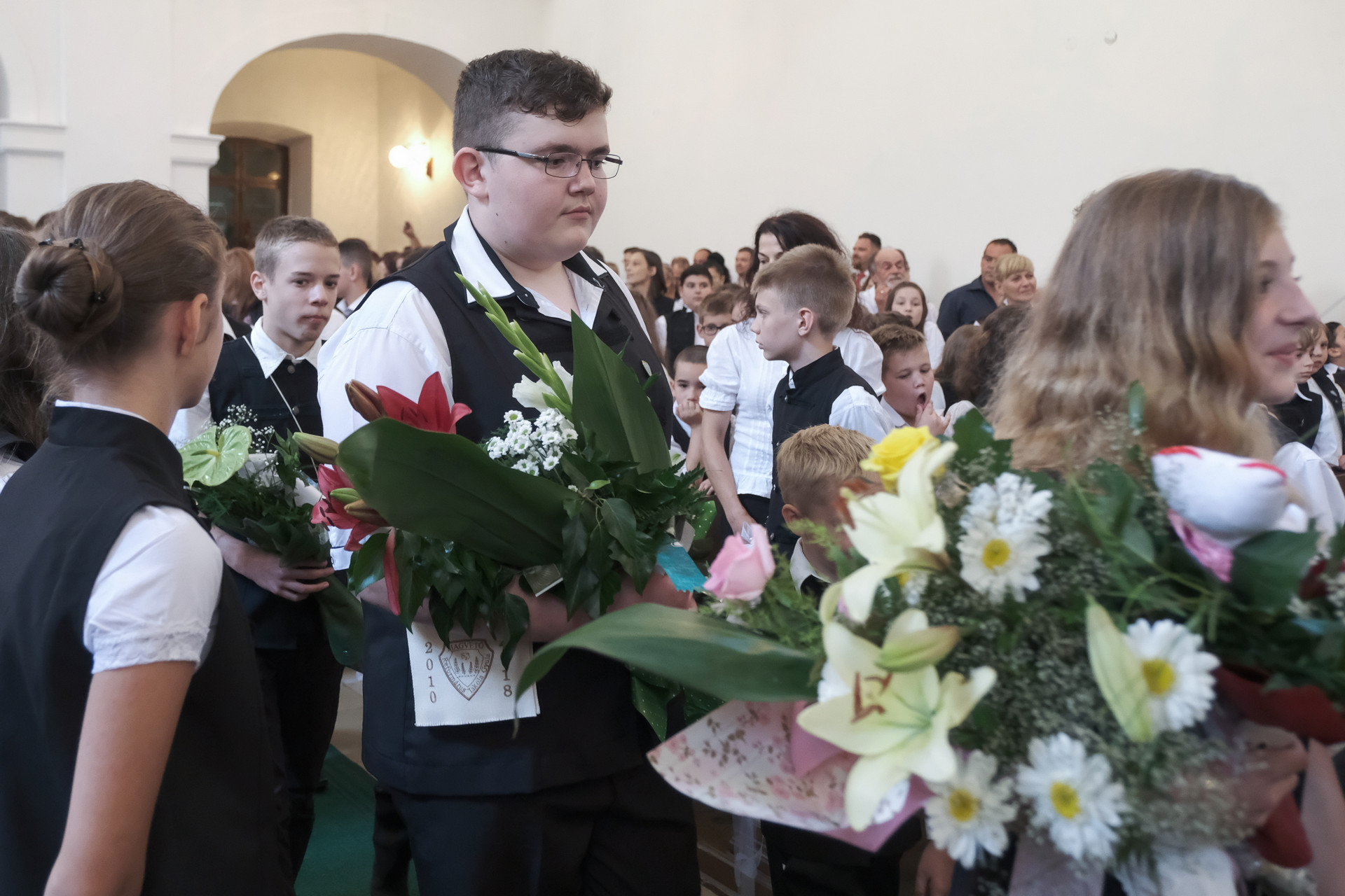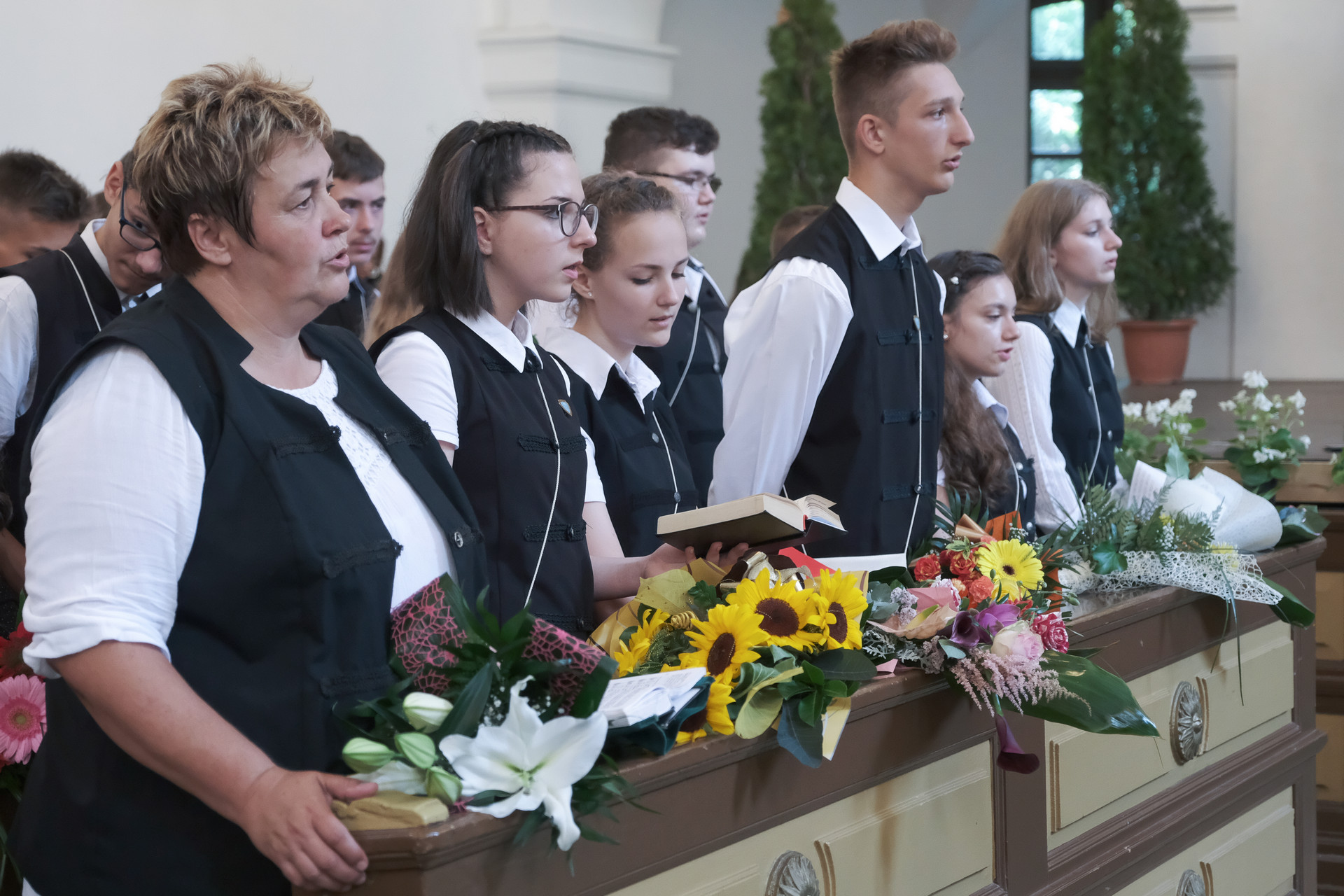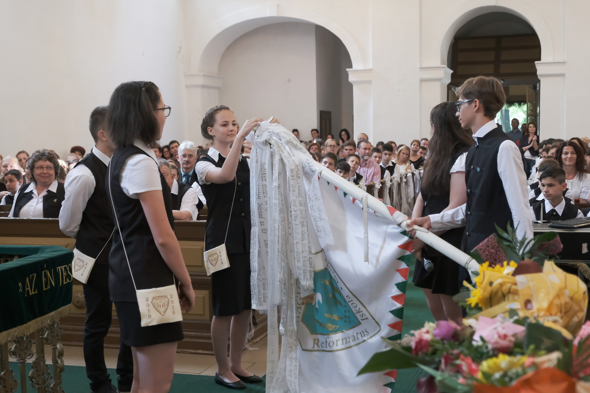 – Kívánom, hogy ne csak visszatekinteni tudjatok az elmúlt dolgokra, hanem engedjétek az életetekben munkálkodni Istent, hogy ő nyisson és mutasson utat nektek, amelyen járnotok lehet, amelyen járnotok kell – mondta a ballagóknak az iskola vezetője, majd hozzátette, hogy a mai nap nem csupán a ballagás ünnepe, hanem a tanévzáró is.