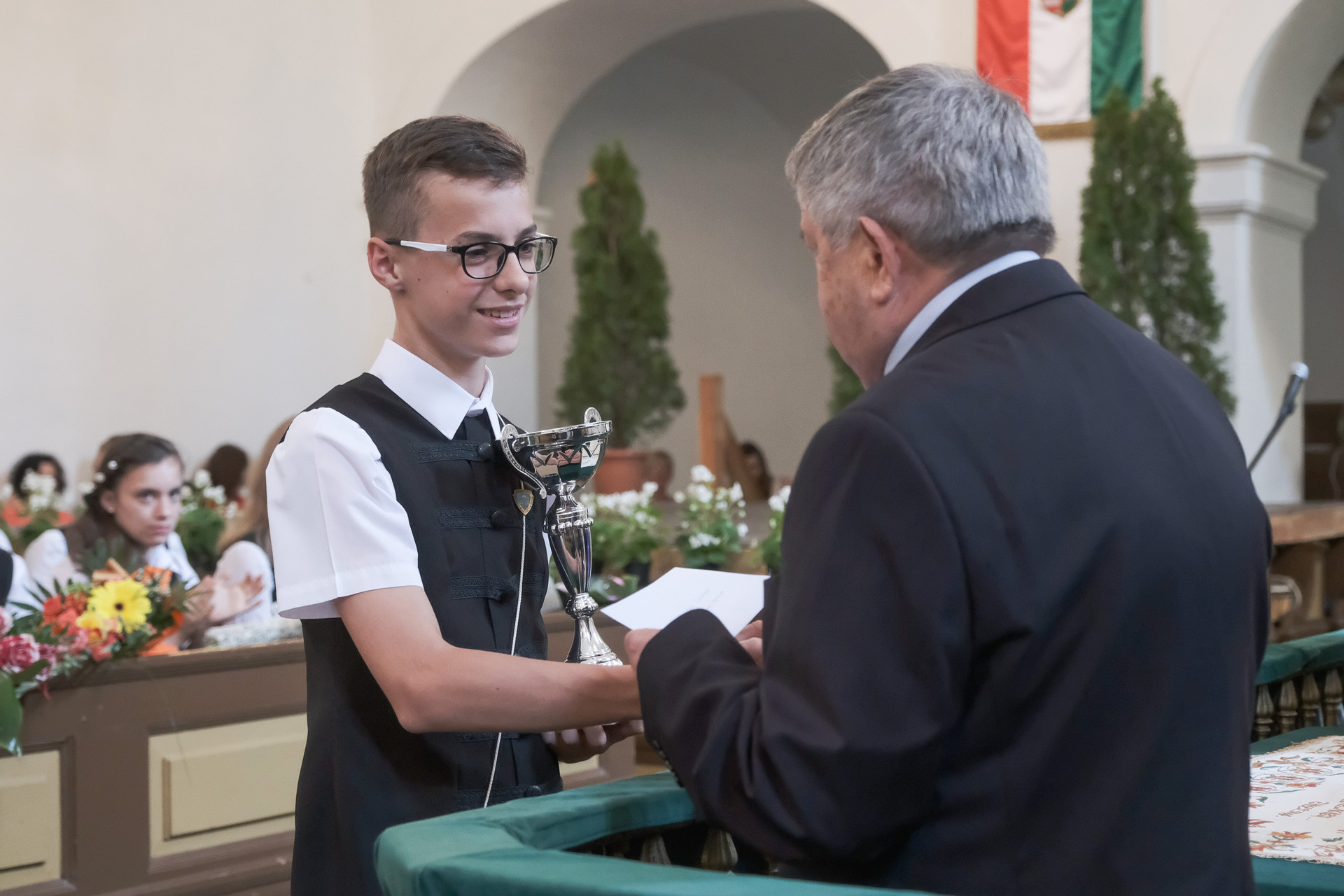 A köszöntő után a díjak és elismerések átadása következett: a Magvető-díjat idén Herdelóné Pelok Boglárka és Székács Márk vehették át. Jó tanuló, jó sportoló kitüntetést kapott Székács Kristóf és Herdeló Csongor, az alapítványi könyvutalványt pedig Perlaki Réka érdemelte ki.