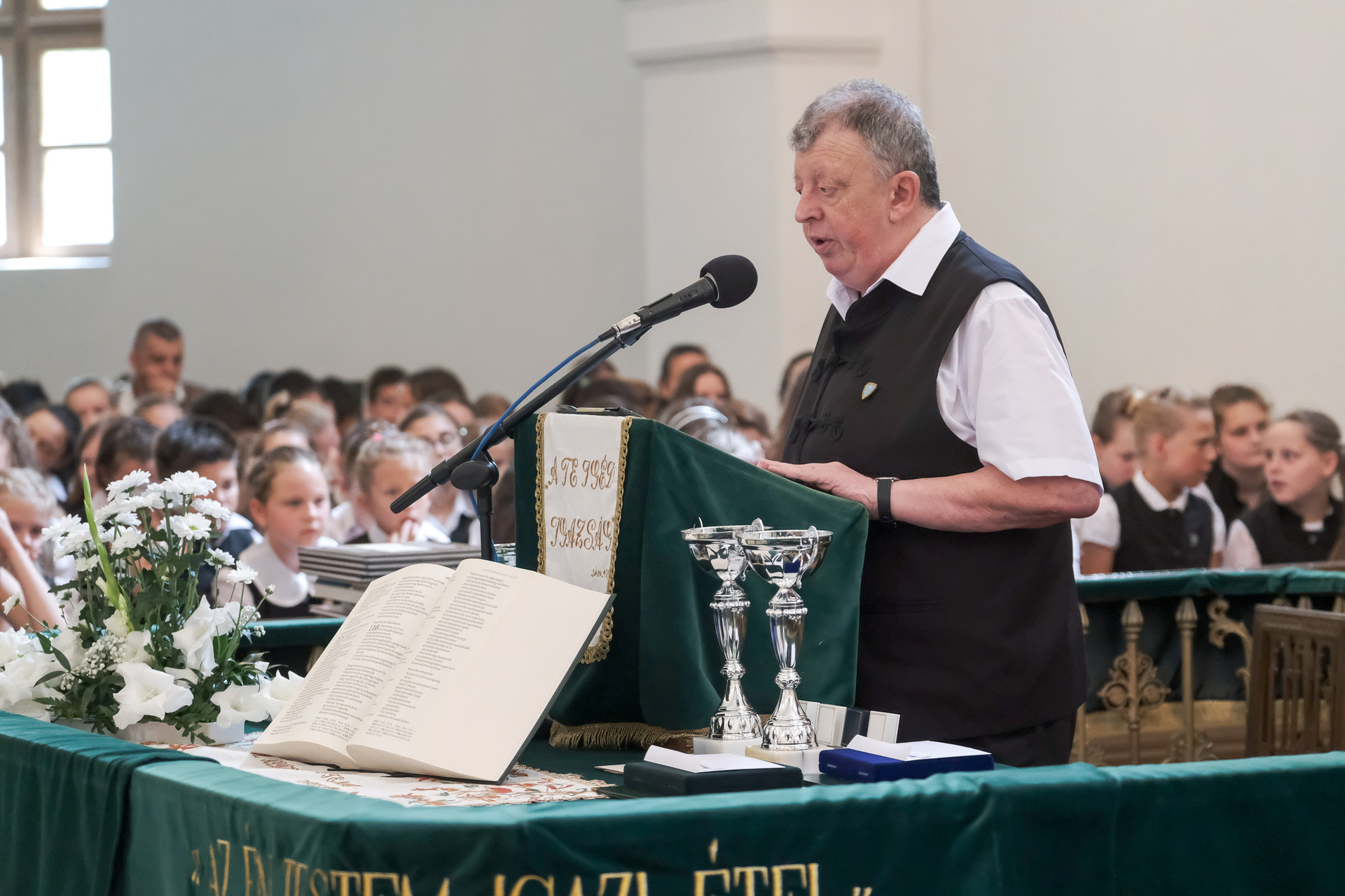 – Intézményünk a tudás kútforrása, a rend és a fegyelem kialakítója, ahol a lélek gyümölcsei is jelen vannak – kezdte beszédét Varga Ottó. – Olyan értékeket kívánunk közvetíteni, amelyek alapján tanulóink a hitben megállnak és naponként erősödnek. Ennek alapja az Istennel való napi kapcsolat: a Biblia mindennapi olvasása és az imádkozás is.