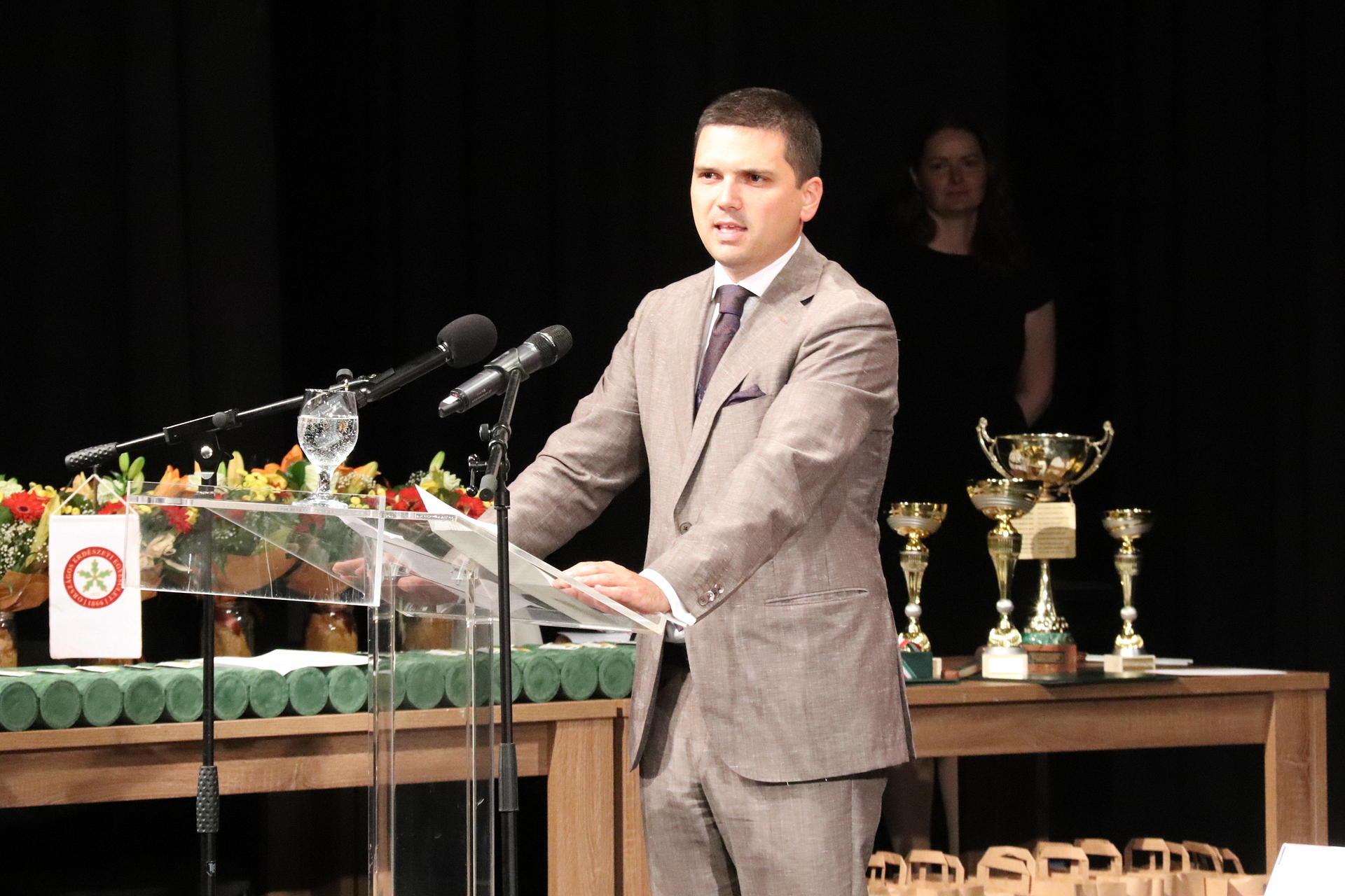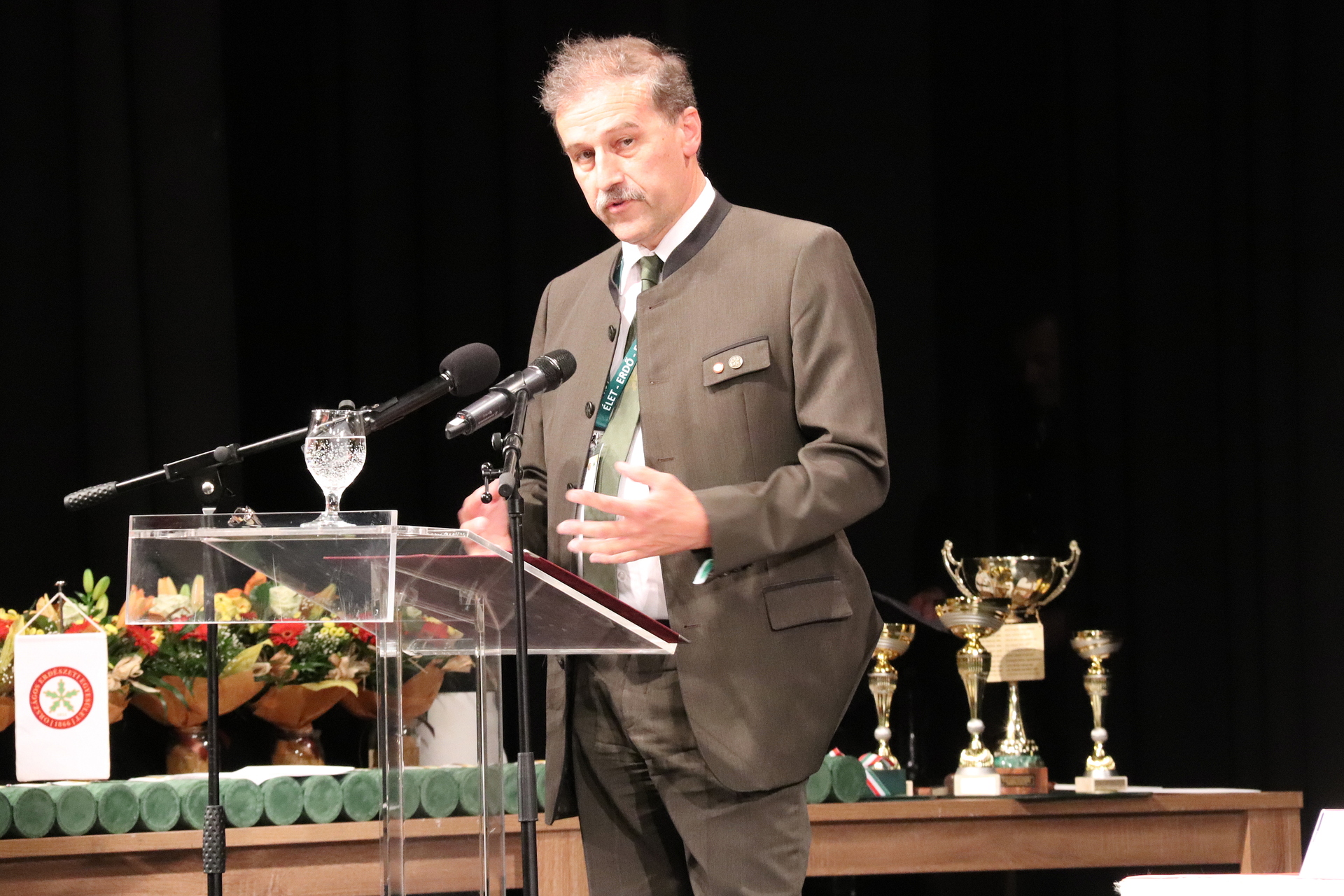 – A hely szelleme főhajtásra kötelez a vidék jeles történelmi személyisége, a miniszter, a képviselő, a királyi biztos és Szeged újjáépítője, Tisza Lajos gróf emléke előtt. Az ő képessége és ereje fogta össze a dualizmus erdészeinek legjavát. Bedő Alberttel formálták az egyesületet a monarchia jelentős szakmai szervezetévé. Szellemi hagyatékát az utódok alázatával ápoljuk – mutatott rá Zambó Péter. Hozzátette: elnökként a legfőbb célja az volt, legyen jó az egyesület tagjának lenni. Ezt követően az egyesület eredményeit ismertette, főként a közösségszervező és az oktatási tevékenységüket. Kiemelte: erdészeti erdei iskolák évente 60 ezer gyermeket fogadnak, és el szeretnék érni, hogy az erdő ügye megjelenjen a nemzeti alaptantervben.