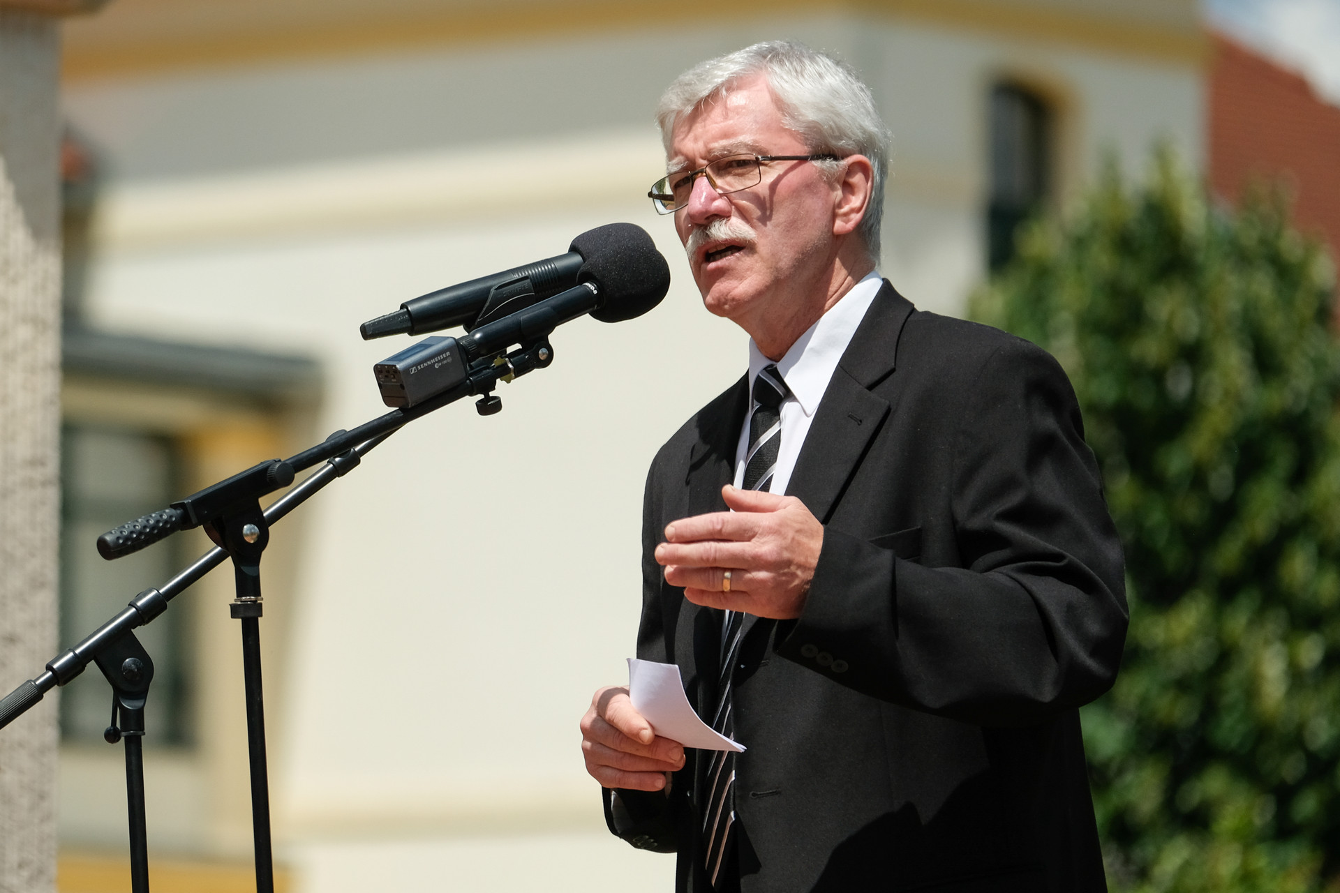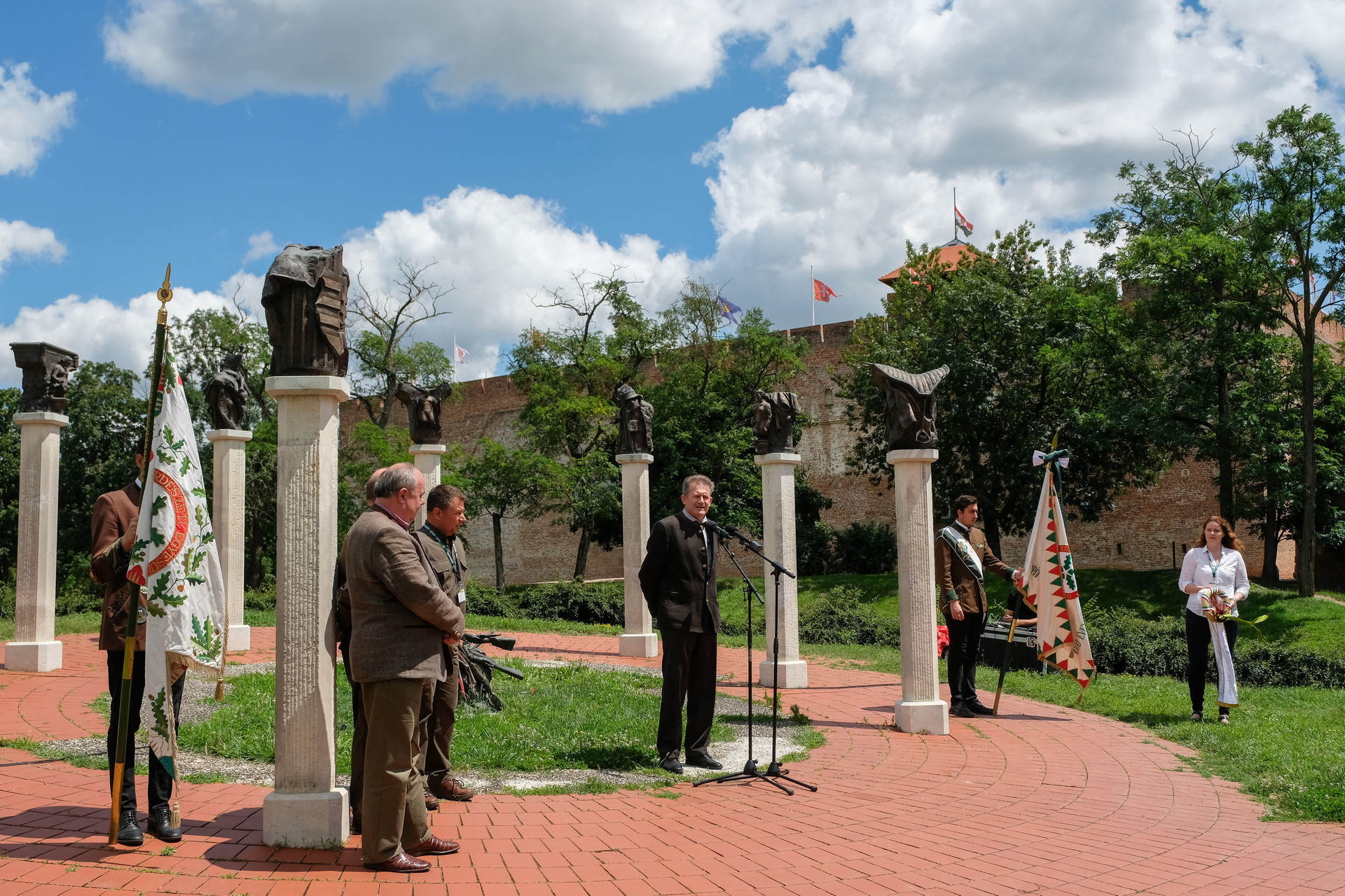 – A 13 aradi vértanú közül 10 Gyulán tette le a fegyvert. Azért fontos ez a hely, mert ez az emlékezés helye, bármelyik időpontban. A múlt mindig átvezet a jelenbe, a jelennek pedig mindig törekednie kell a múltra is. Vissza kell fordulnunk, nemcsak emlékezni, hanem tanulni is. A nemzet önmagában tartalmazza az emlékezetet, és az a nemzet, amelynek nincs emlékezete, nem lehet nemzet. Ez olyan, mint a mint a vallás: gyakorolni kell, felszínen tartani, mert mindkettőben közös a hit – fogalmazott Kereskényi Miklós, majd részletesen ismertette a vértanúk történetét egészen kivégzésük pillanatáig.