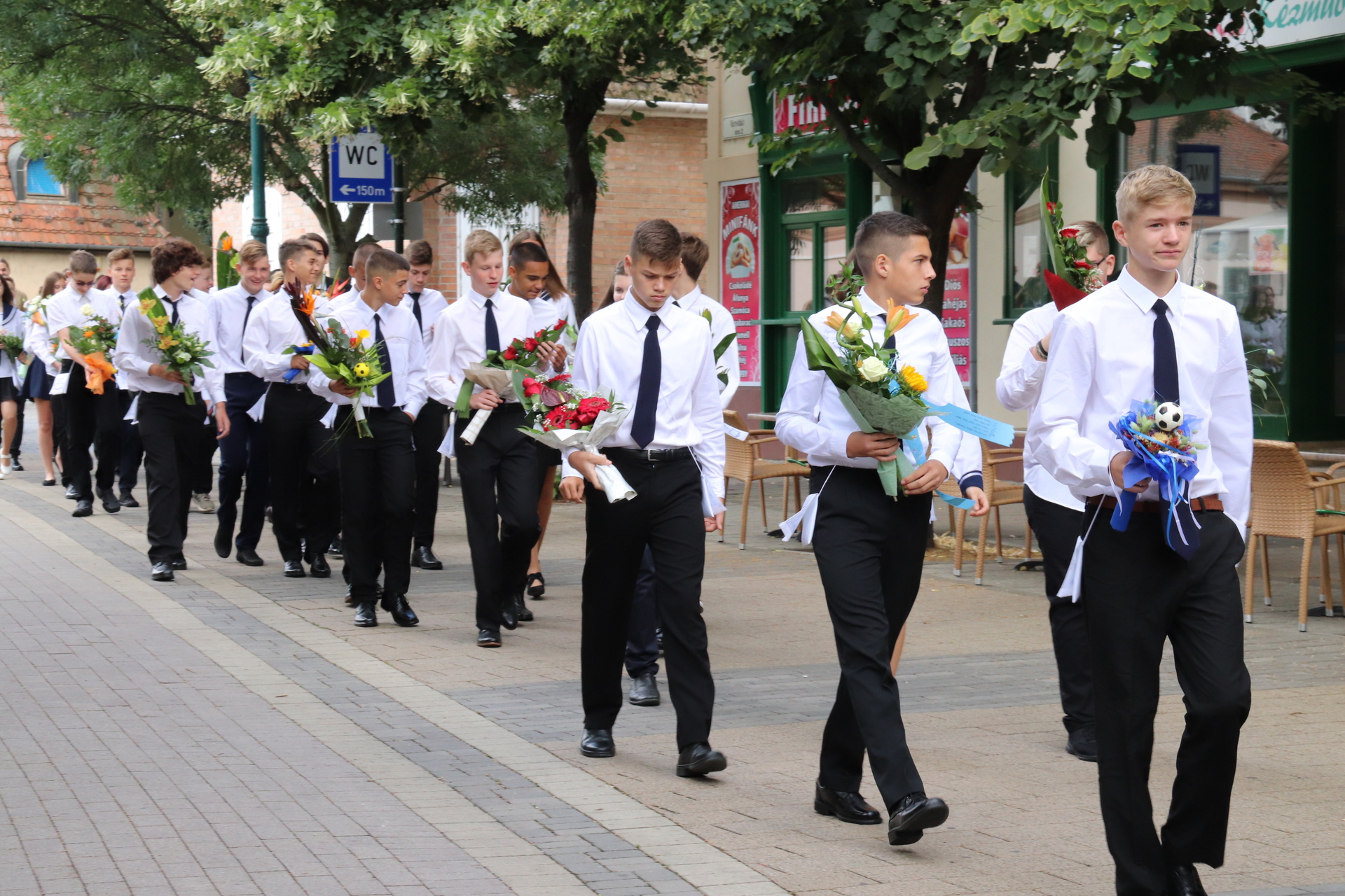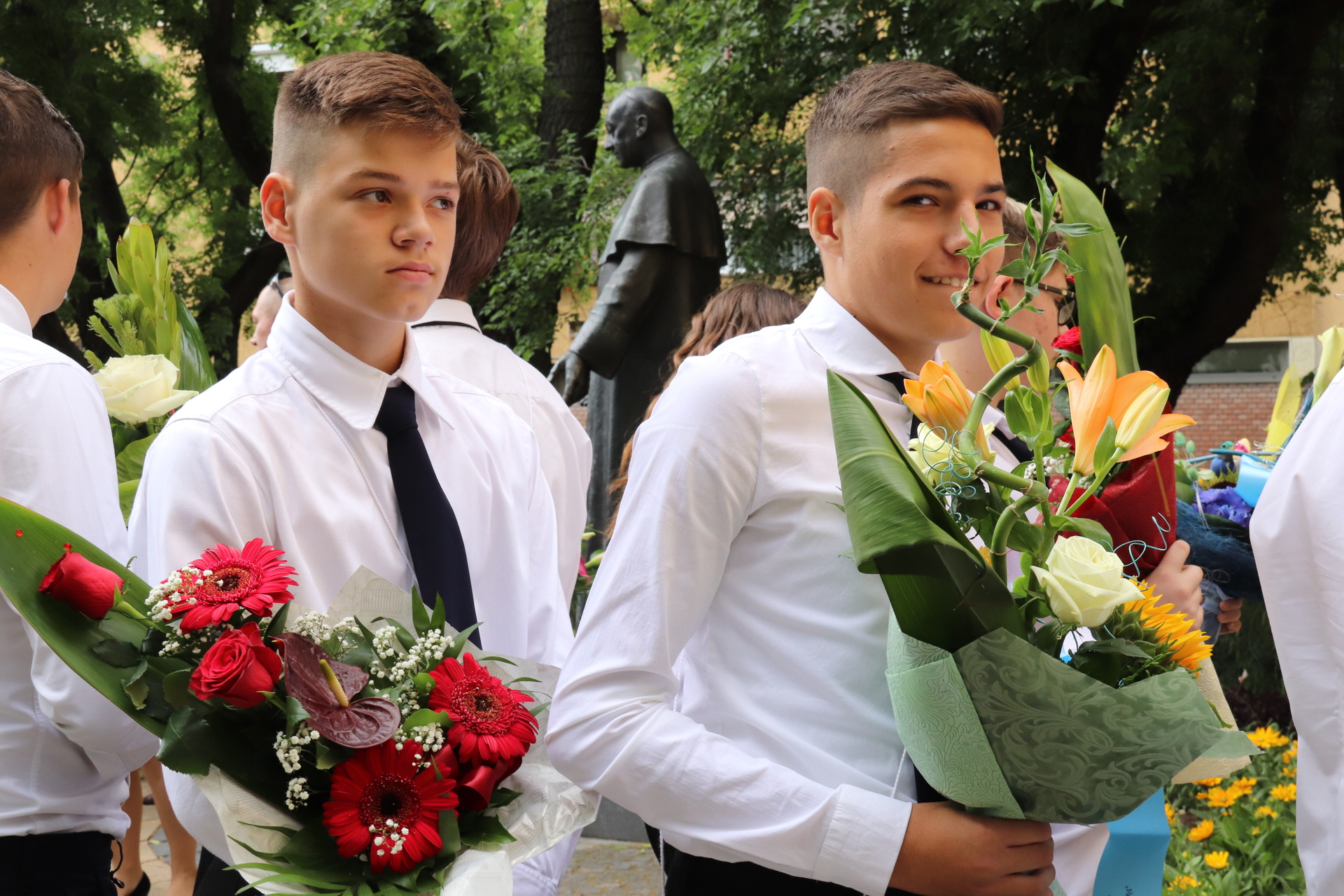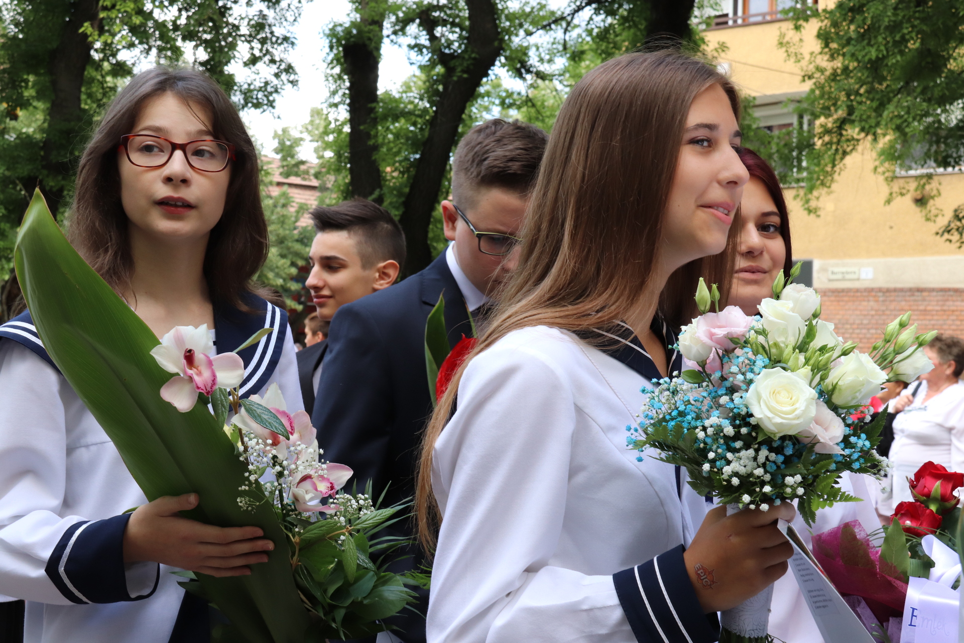 Rendkívüli osztályfőnöki órákkal indult a nyolcadikosok utolsó iskolai napja a Karácsonyi János Katolikus Általános Iskola és Gimnázium belvárosi épületében. A ballagók ezt követően indultak el batyuikkal a Nádi Boldogasszony-kegytemplomba, ahol előbb szentmisén vettek részt, majd meghallgathatták az évértékelőt, és átvették díjaikat.