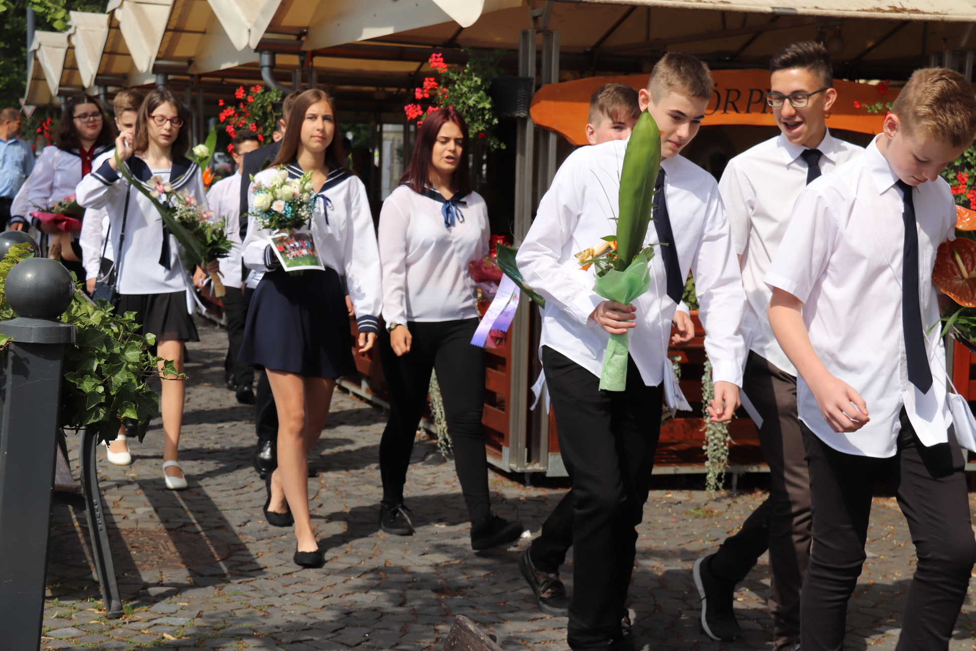 A mise után a ballagó nyolcadikosok versekkel és dalokkal búcsúztak el az általános iskolai évektől.