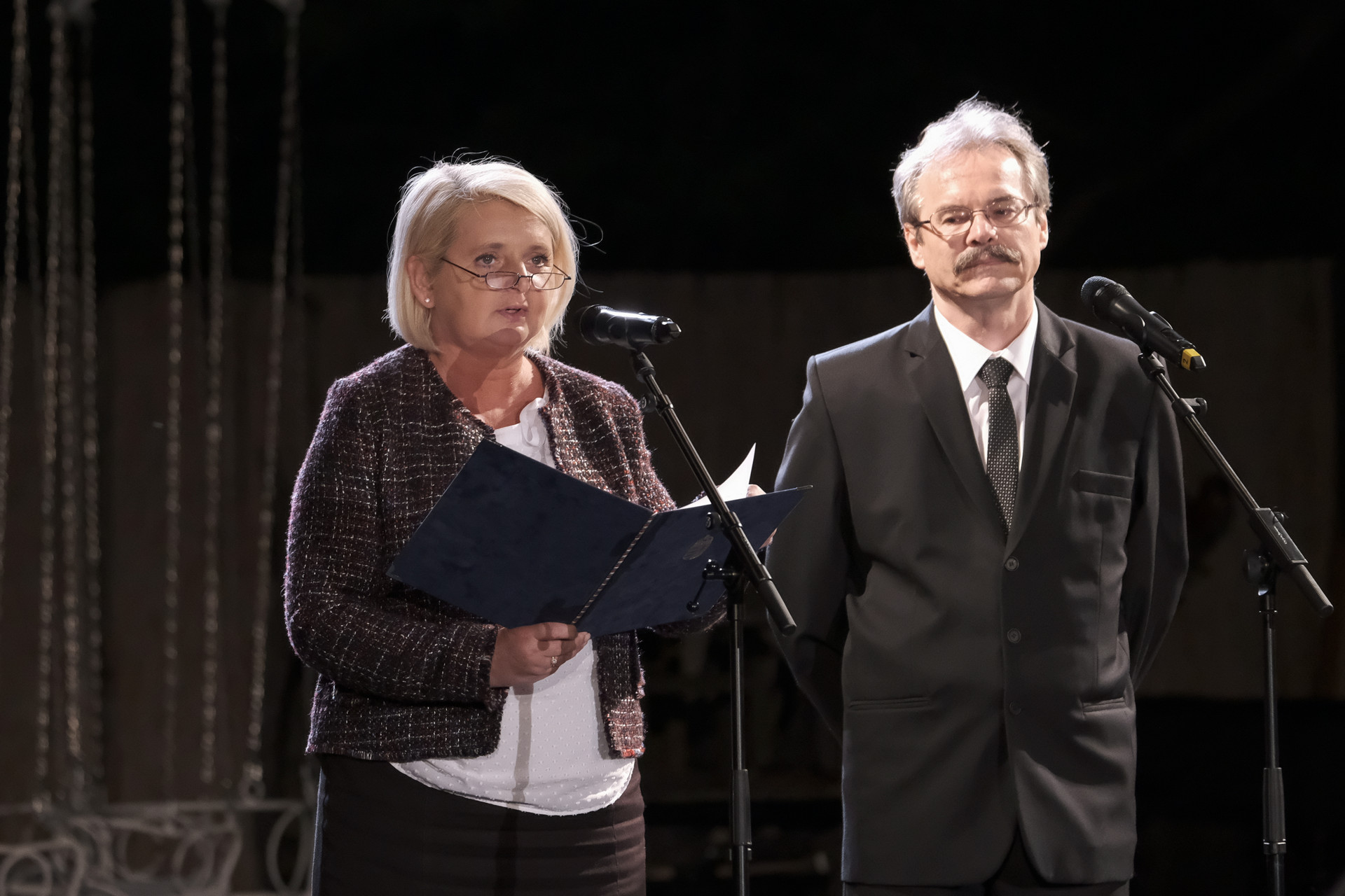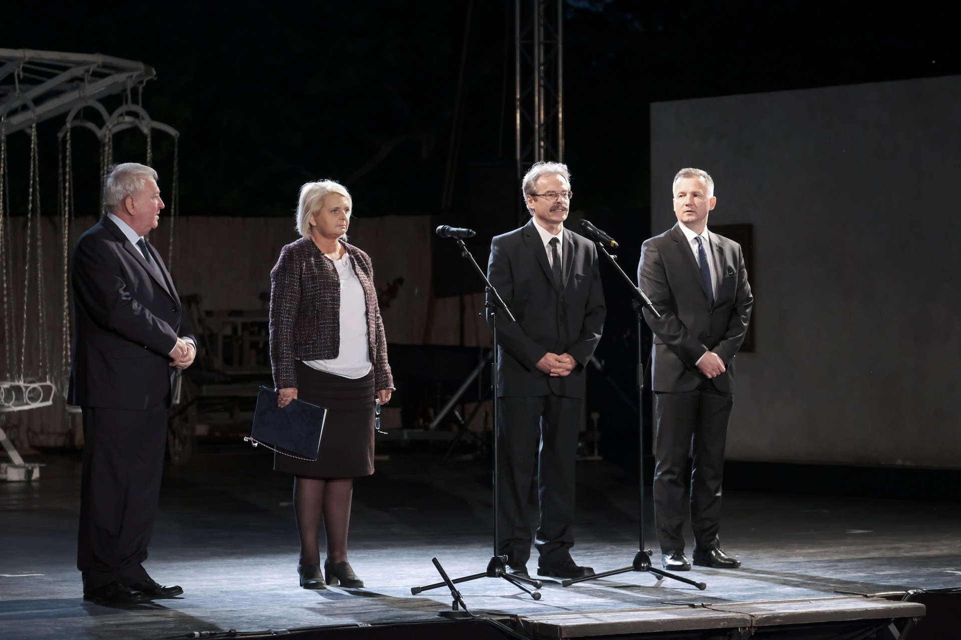 A megnyitó pillanatai: KOvács József, Krucsainé Herter Anikó, Elek Tibor és Görgényi Ernő a színpadon
