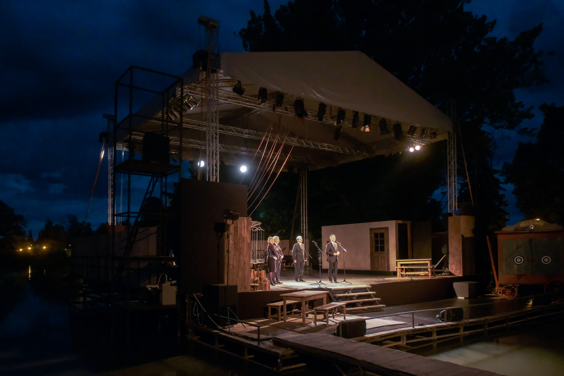 A megjelent közönséget a tószínpadról Krucsainé Herter Anikó, a kulturális kapcsolatokért és fejlesztésekért felelős helyettes államtitkár, Kovács József országgyűlési képviselő, Görgényi Ernő, Gyula város színházbarát polgármestere és Elek Tibor, a Gyulai Várszínház ügyvezetője köszöntötték. Mindannyian kihangsúlyozták, hogy Gyula lakossága és az idelátogató vendégek mennyire szerencsés helyzetben vannak, hogy egy gótikus téglavárban és tőszomszédságában láthatják estéről estére megelevenedni a legjelentősebb magyar szerzők klasszikus és kortárs darabjait. Rendkívül színes, közel 70 előadást tartalmazó évadot nyitott meg a „direktor”.