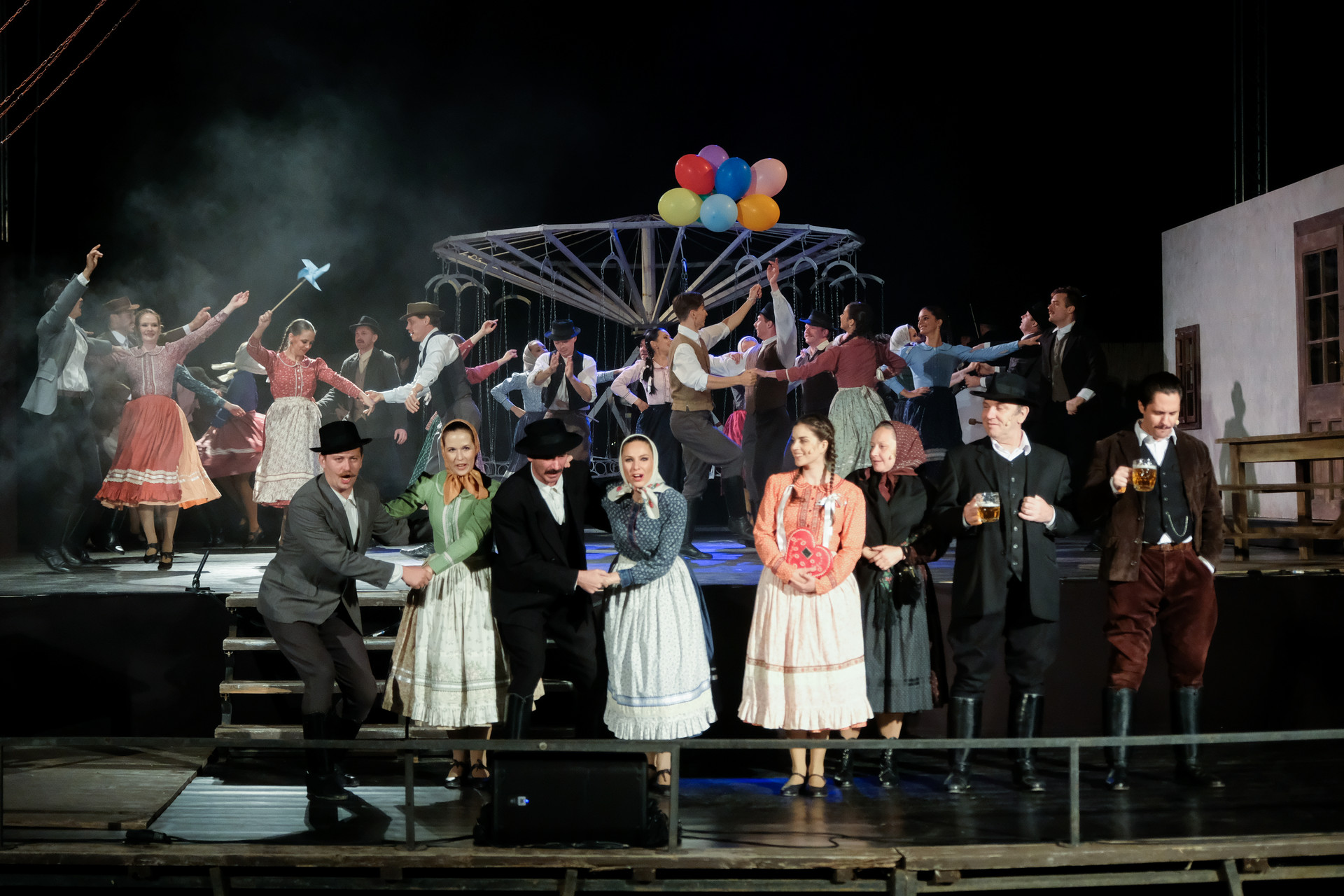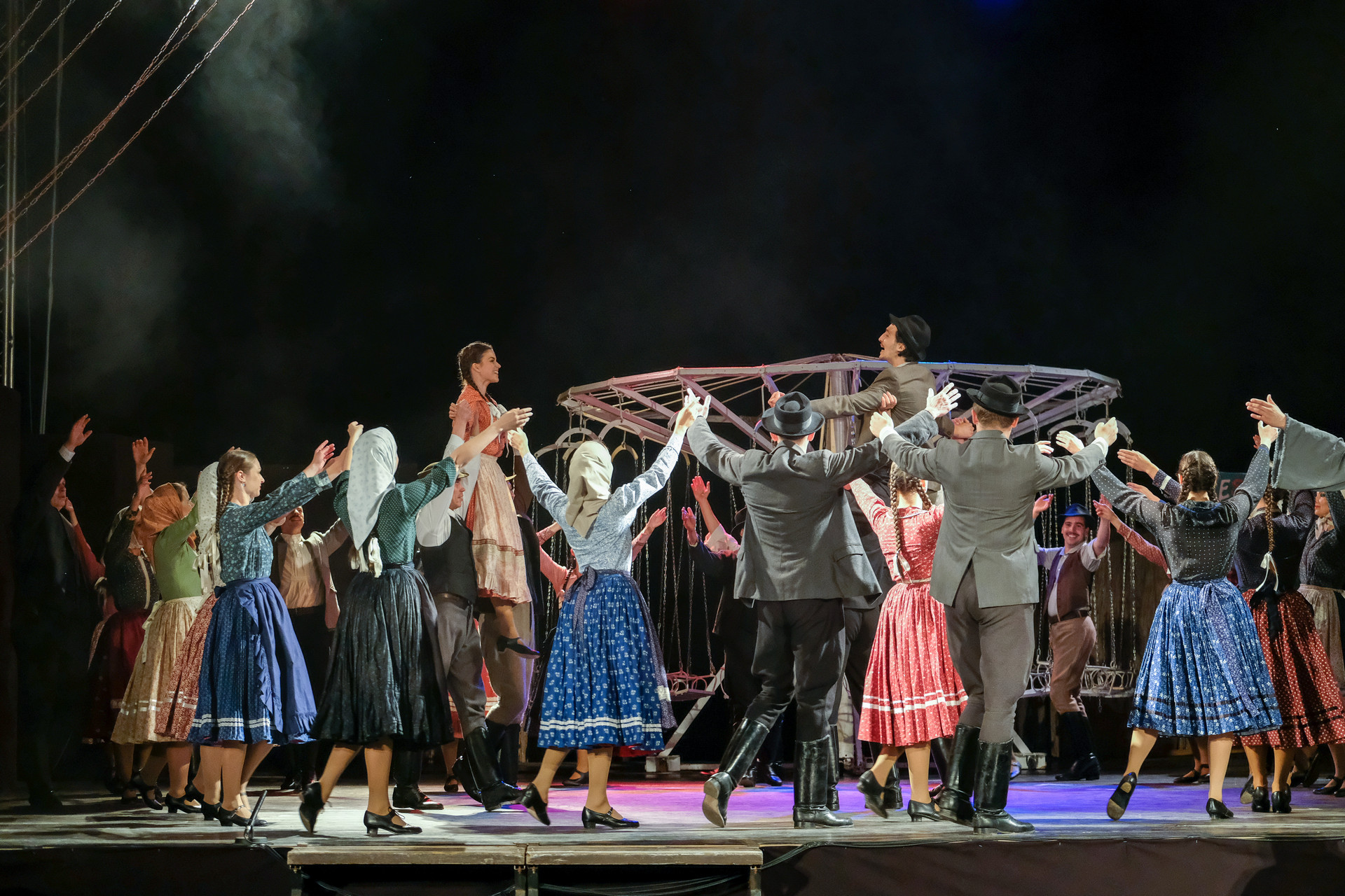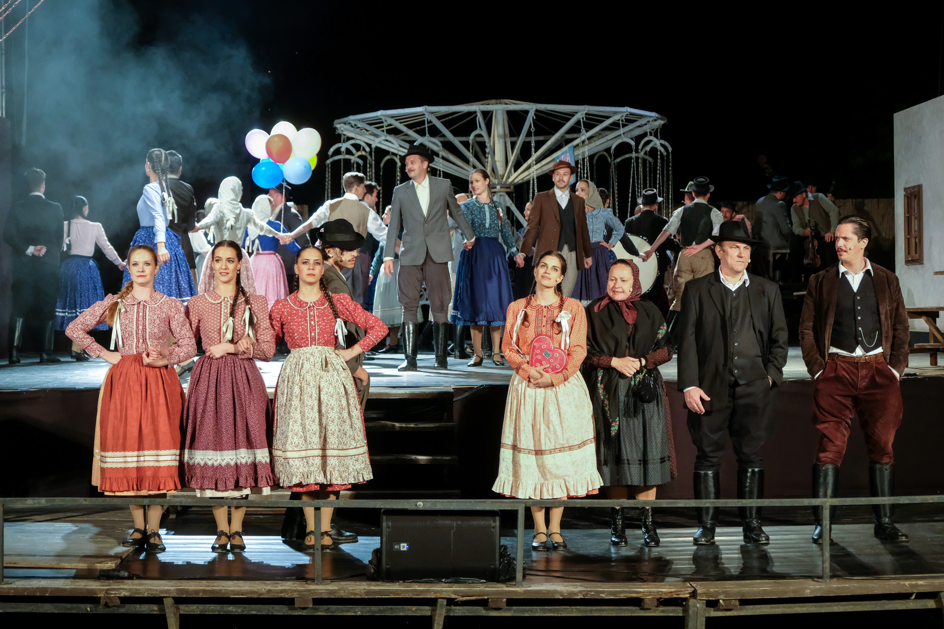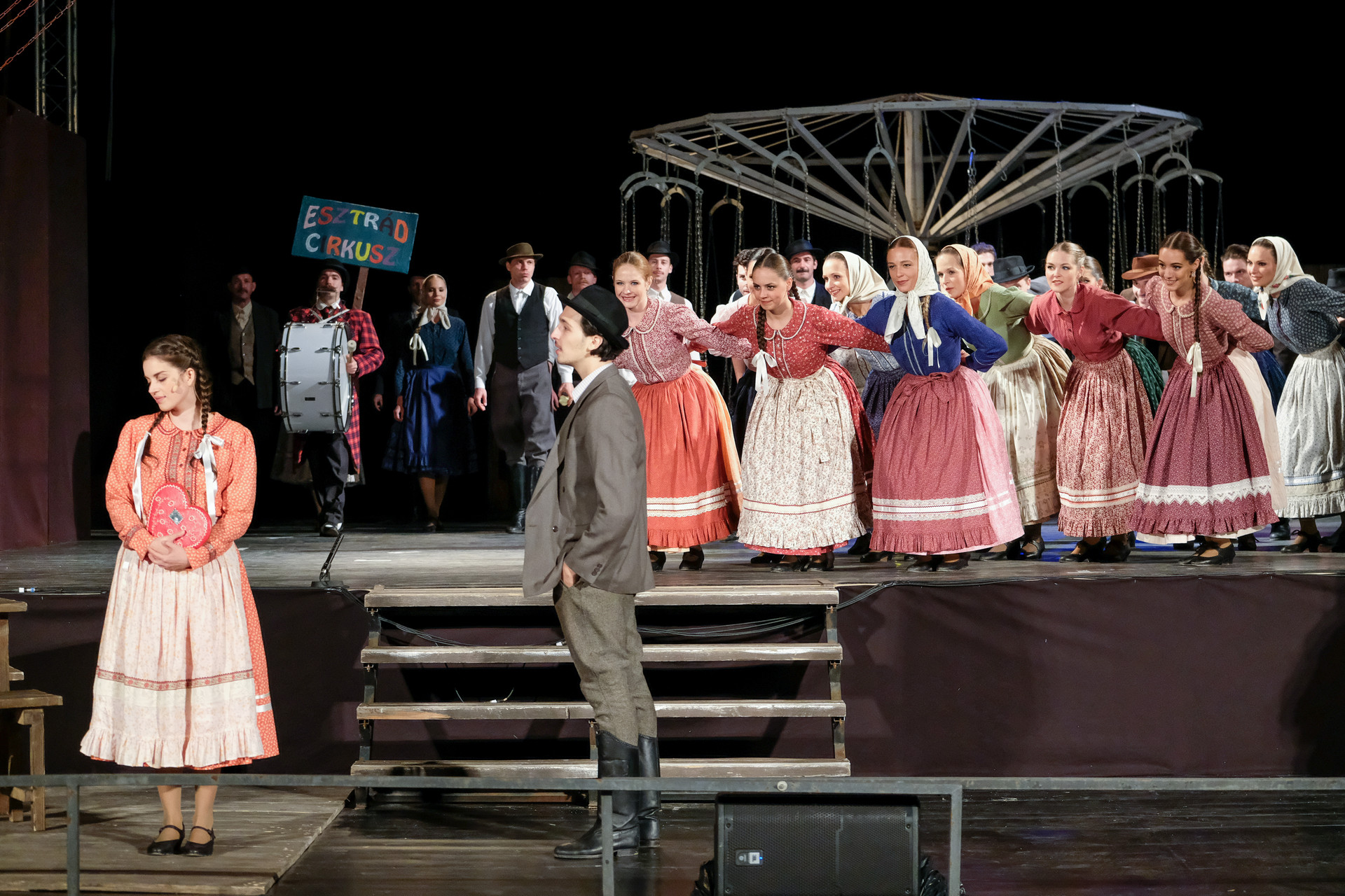 A megnyitót követően a Körhinta című előadást tekinthettük meg Vidnyánszky Attila rendezésében, a Nemzeti Színház és a Magyar Nemzeti Táncegyüttes és Zenekara közös produkciójaként. Nyilvánvaló, hogy az eredeti történet megfilmesített változatához kapcsolt elvárásainkkal ültünk be a színházba és kerestük a klasszikus mondatokat, jeleneteket, helyzeteket. Nem csalódtunk. A Körhinta 1955-ben készült, 1956-ban bemutatott fekete-fehér, magyar filmdráma. Fábri Zoltán alkotását az 1956-os cannes-i filmfesztiválon Arany Pálmára jelölték. A forgatókönyvet Sarkadi Imre A kútban című, 1954-ben megjelent novellája alapján Fábri Zoltán és Nádasy László írták.