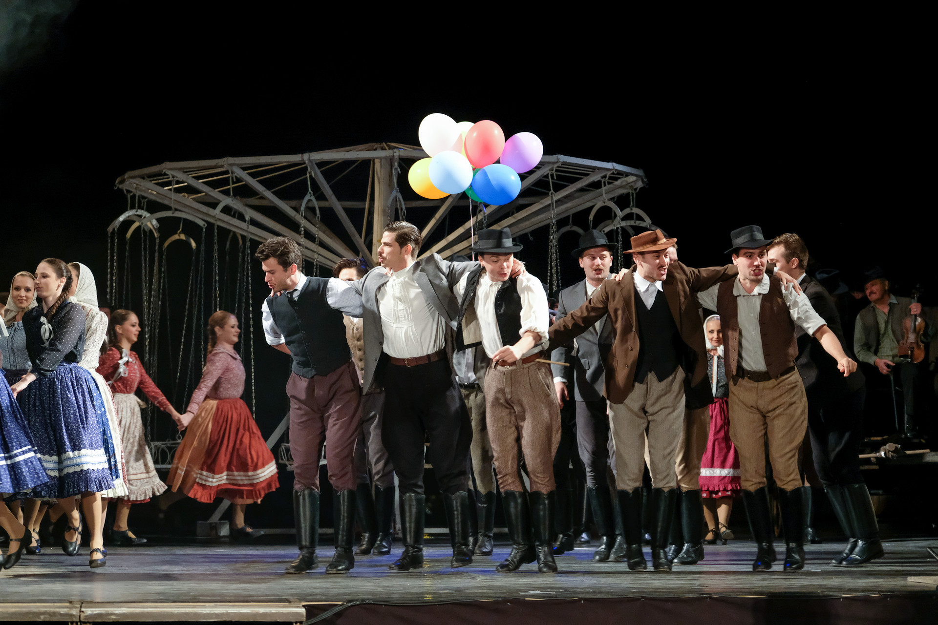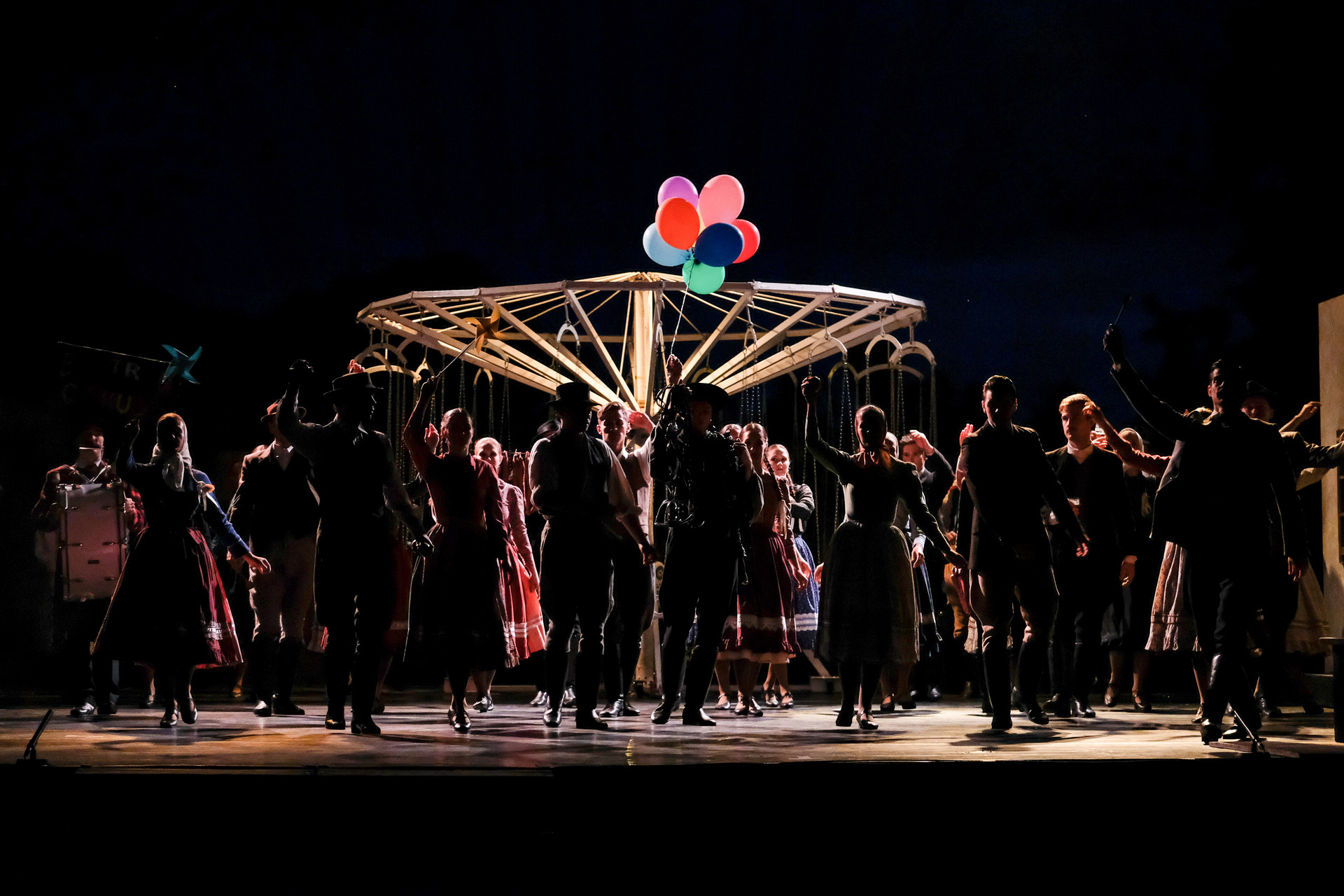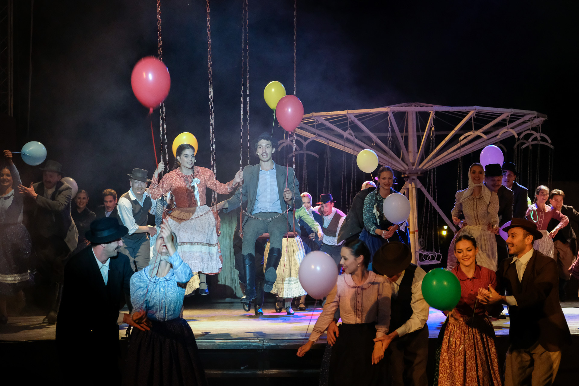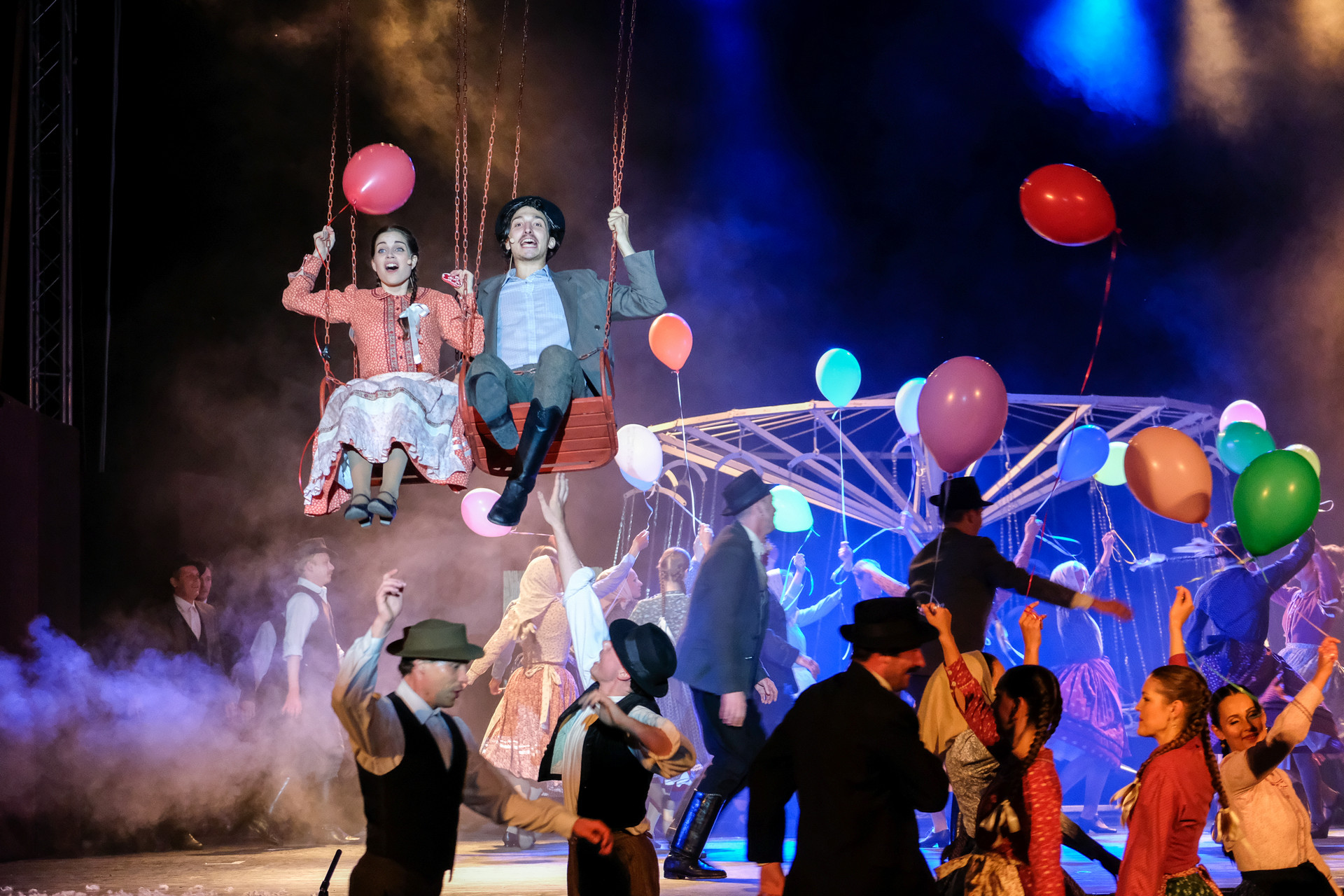A megnyitót követően a Körhinta című előadást tekinthettük meg Vidnyánszky Attila rendezésében, a Nemzeti Színház és a Magyar Nemzeti Táncegyüttes és Zenekara közös produkciójaként. Nyilvánvaló, hogy az eredeti történet megfilmesített változatához kapcsolt elvárásainkkal ültünk be a színházba és kerestük a klasszikus mondatokat, jeleneteket, helyzeteket. Nem csalódtunk. A Körhinta 1955-ben készült, 1956-ban bemutatott fekete-fehér, magyar filmdráma. Fábri Zoltán alkotását az 1956-os cannes-i filmfesztiválon Arany Pálmára jelölték. A forgatókönyvet Sarkadi Imre A kútban című, 1954-ben megjelent novellája alapján Fábri Zoltán és Nádasy László írták.