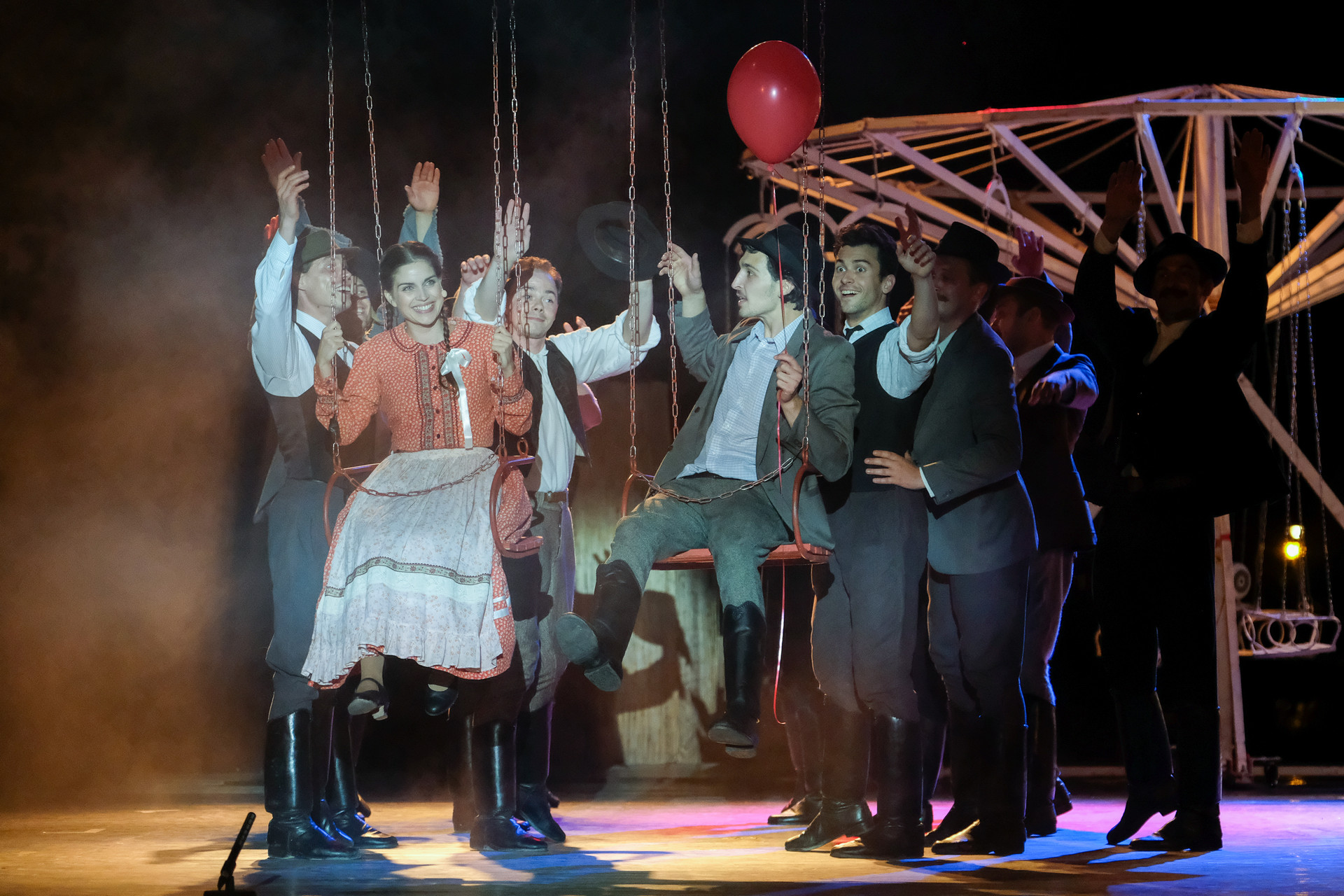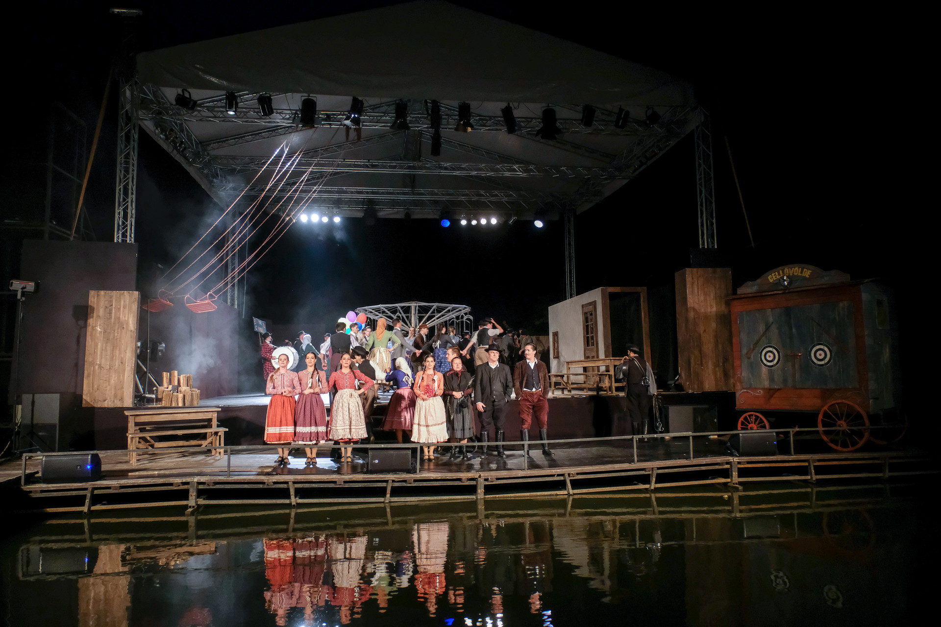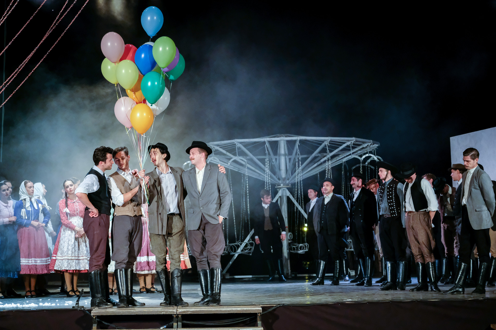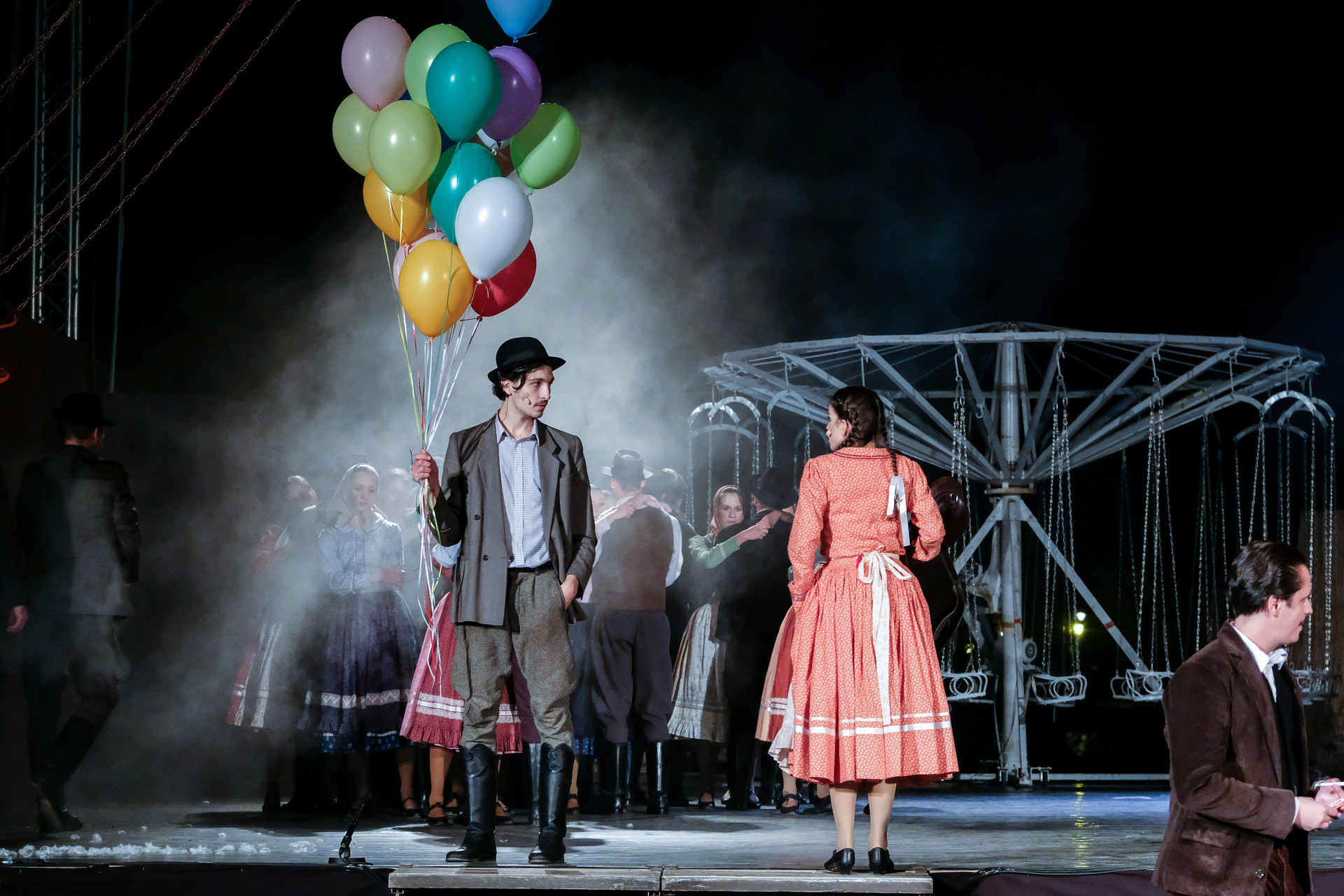 A megnyitót követően a Körhinta című előadást tekinthettük meg Vidnyánszky Attila rendezésében, a Nemzeti Színház és a Magyar Nemzeti Táncegyüttes és Zenekara közös produkciójaként. Nyilvánvaló, hogy az eredeti történet megfilmesített változatához kapcsolt elvárásainkkal ültünk be a színházba és kerestük a klasszikus mondatokat, jeleneteket, helyzeteket. Nem csalódtunk. A Körhinta 1955-ben készült, 1956-ban bemutatott fekete-fehér, magyar filmdráma. Fábri Zoltán alkotását az 1956-os cannes-i filmfesztiválon Arany Pálmára jelölték. A forgatókönyvet Sarkadi Imre A kútban című, 1954-ben megjelent novellája alapján Fábri Zoltán és Nádasy László írták.