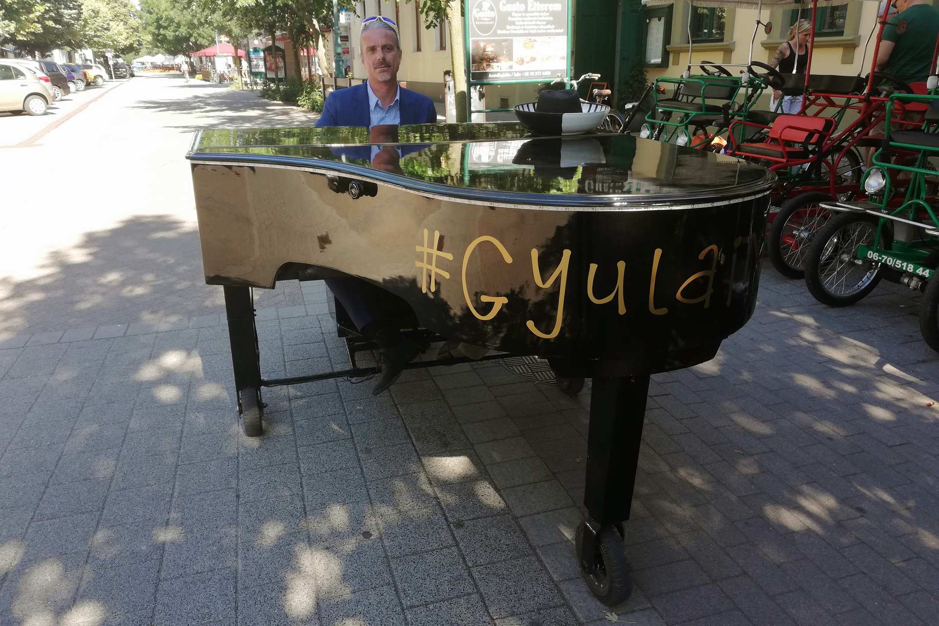 A gyulaiak csak úgy ismerik a város mozgó zongoristáját, hogy Mr. Piano, aki idén nyáron is járja a fürdőváros utcáit. A zenész a #GyulaiNyár programsorozatot népszerűsíti, a szerkesztőségünk előtt gurulva pedig a tavalyi nyár legnagyobb slágerét játszotta a zongoráján, mi pedig lencsevégre kaptuk.