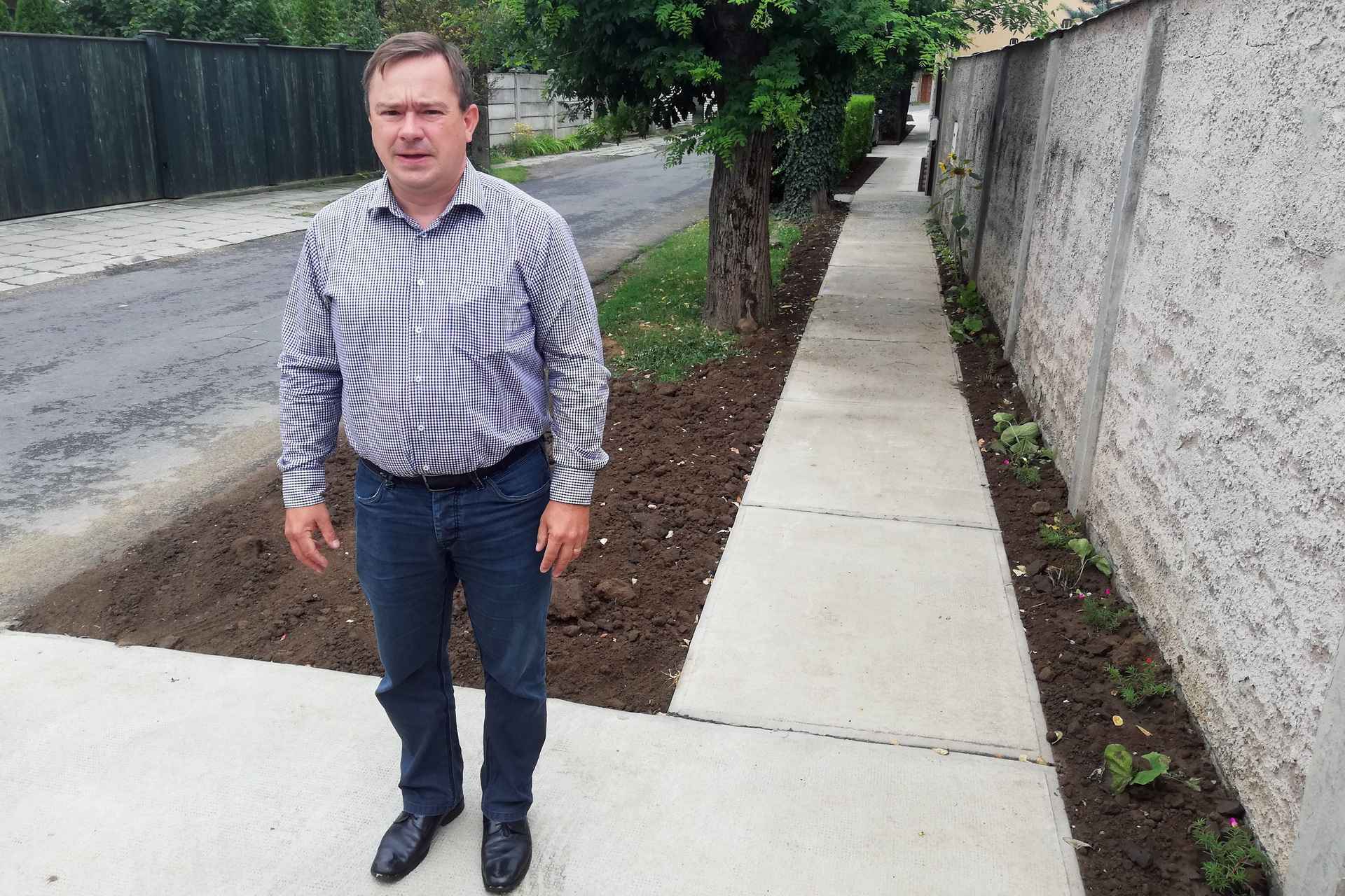 Az Erdélyi Sándor utcában a betonjárda kiépítése a tavalyi évben kezdődött el, akkor a Mikes Kelemen utcától a Réthy Lipót utcáig tartó szakasz készült el – kezdte Kónya István. A felújítás első üteme 1,6 millió forintba került. Az alpolgármester már akkor megígérte az utcában lakóknak, hogy folytatja a programot.