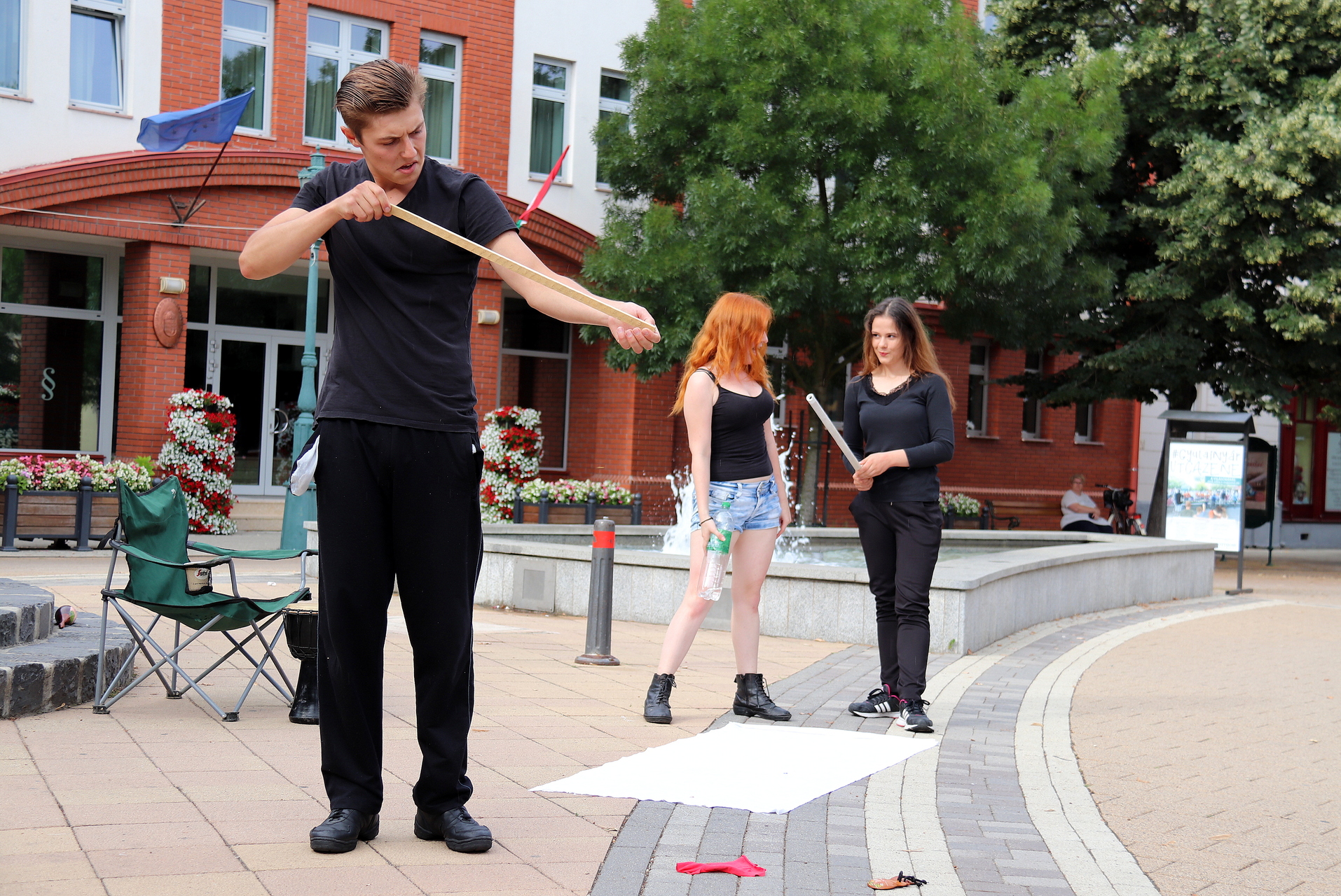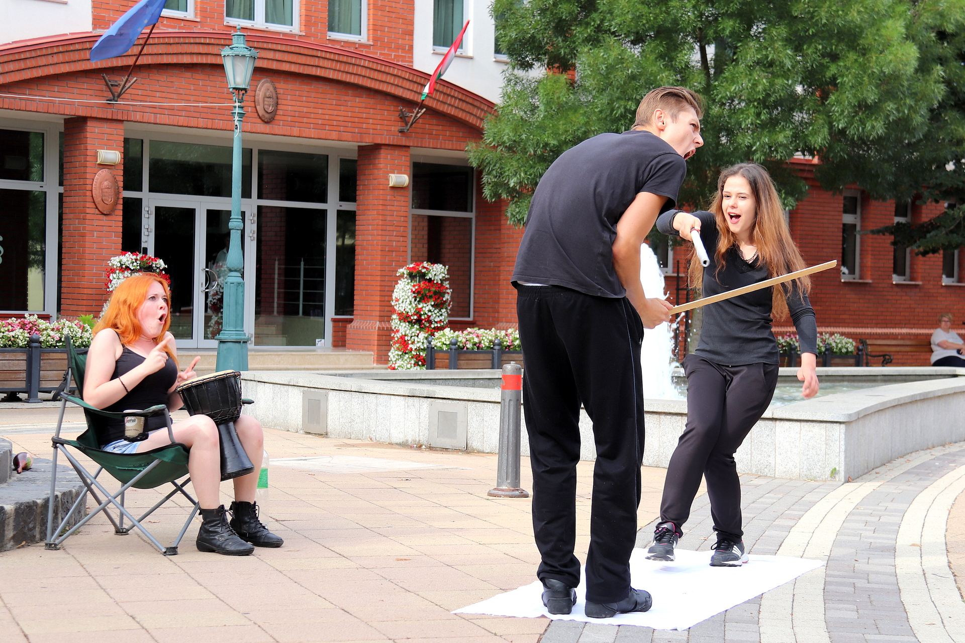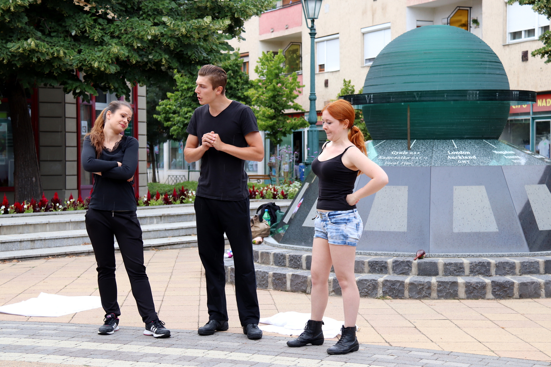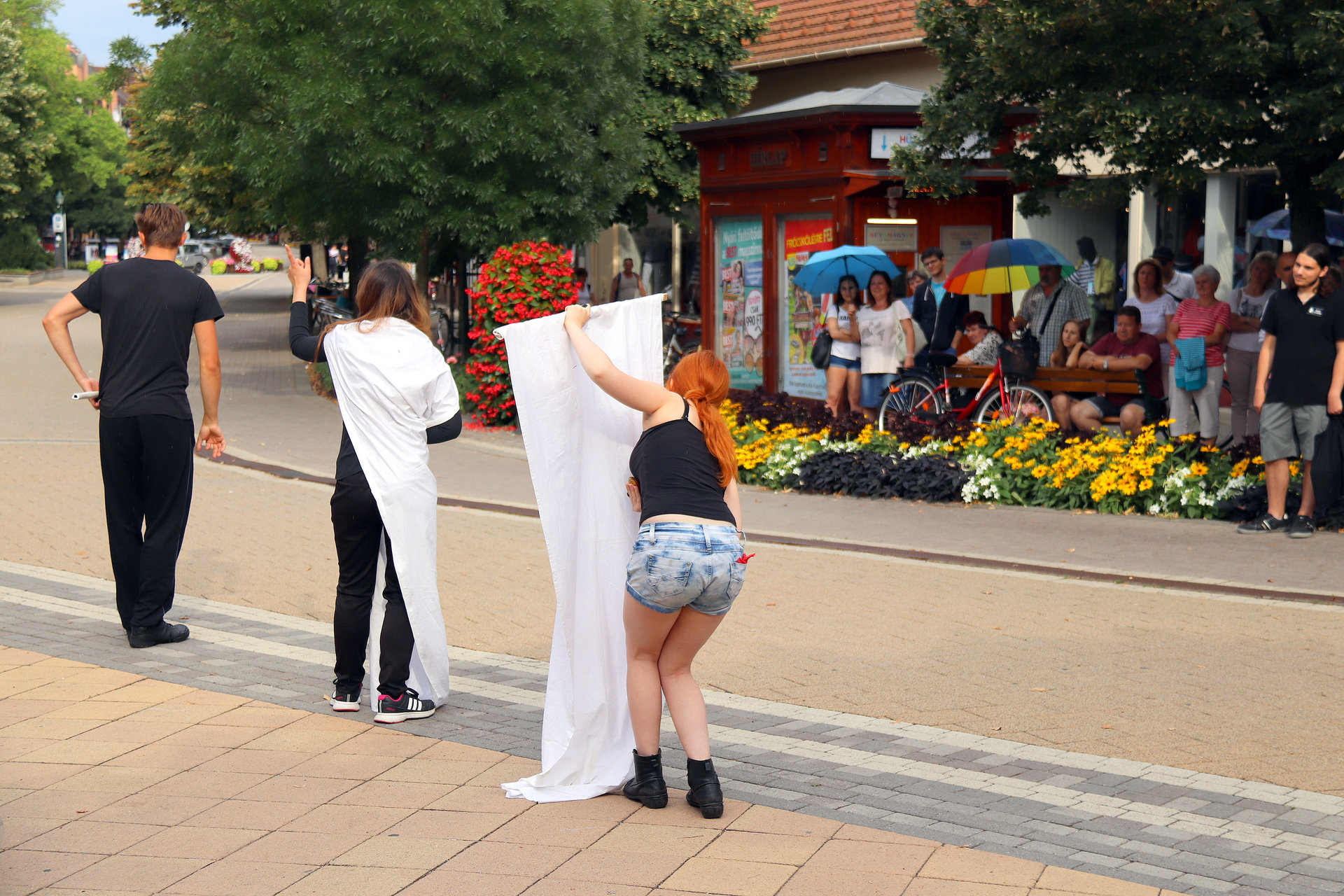 Hogy mi a darab poénja, nem lőjük le, mert kétszer is megismétlik még a fürdőváros belvárosában. Aki a keddiről lemaradt, július 12-én délután 5 órától a Harruckern téren, július 14-én, szintén délután 5 órától pedig a Kossuth téren nézheti meg.
