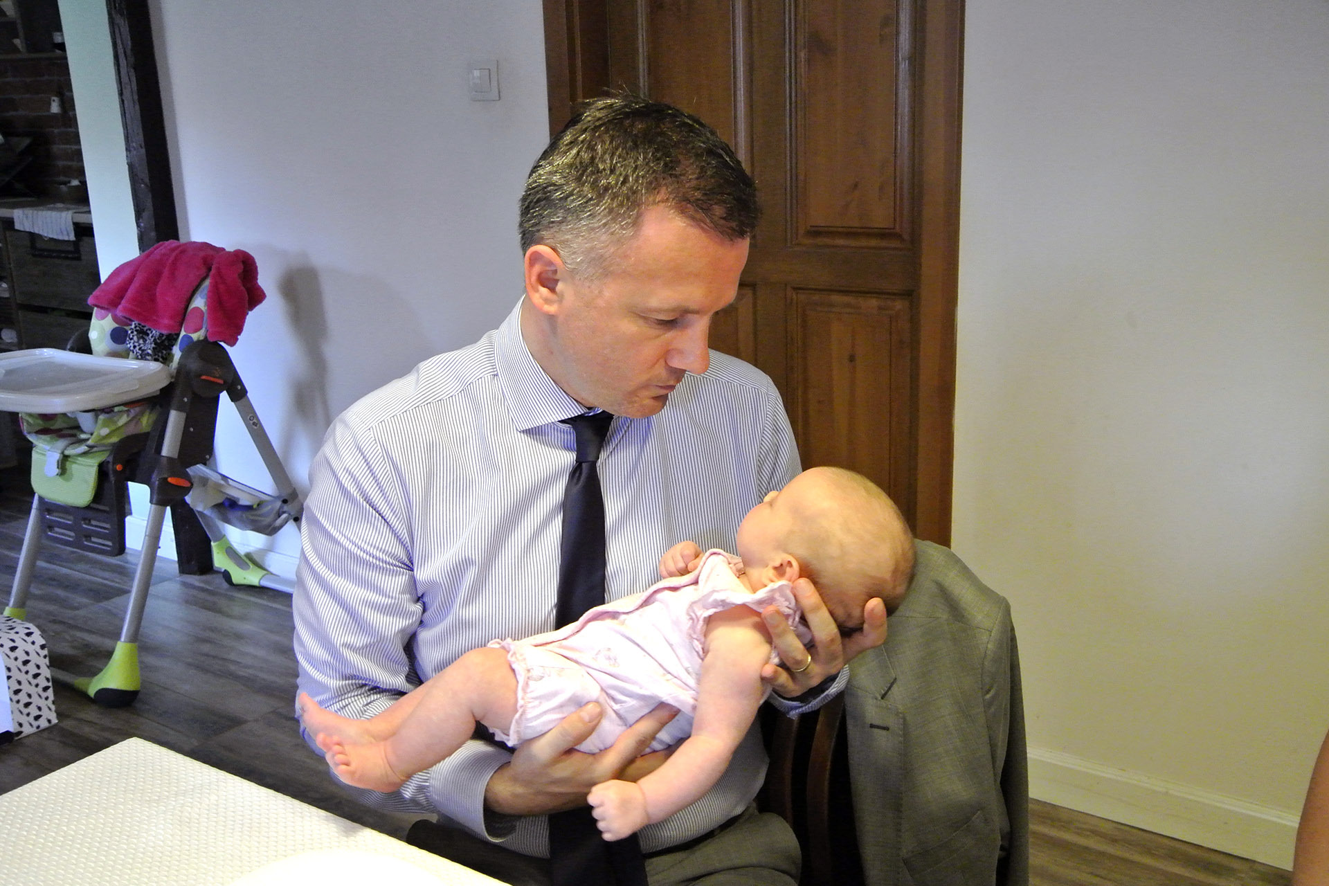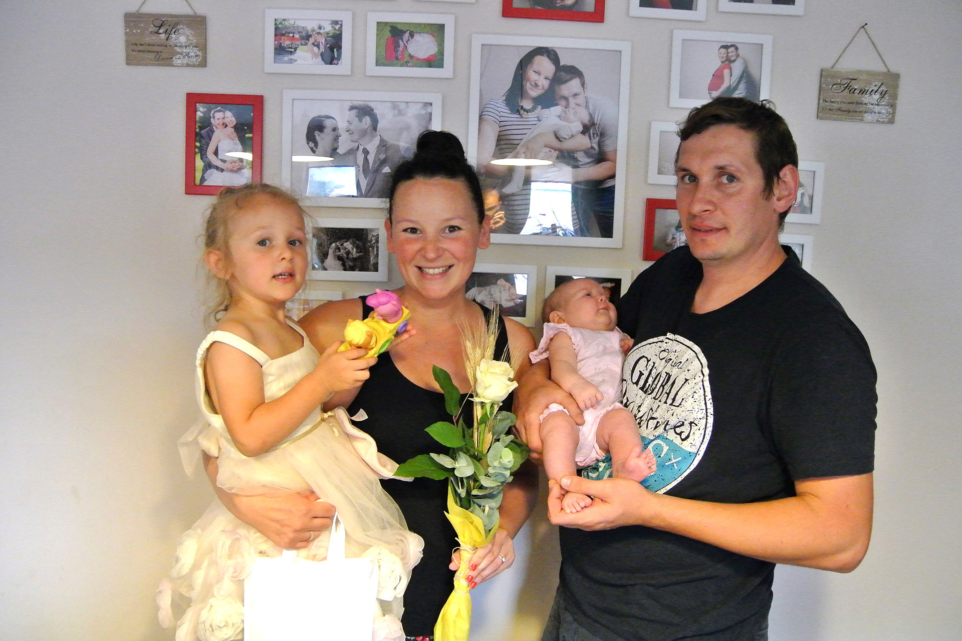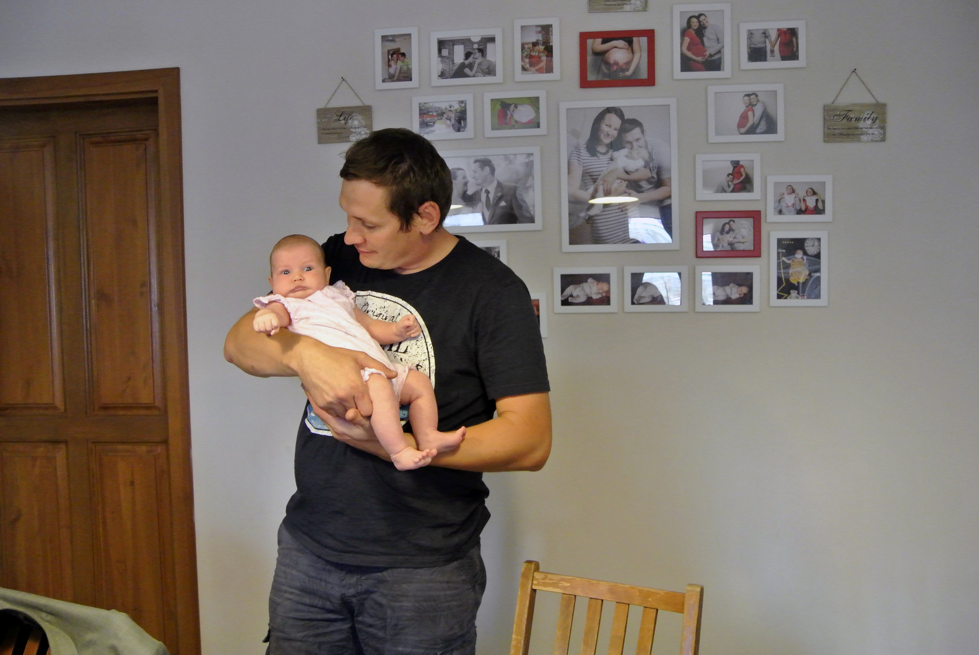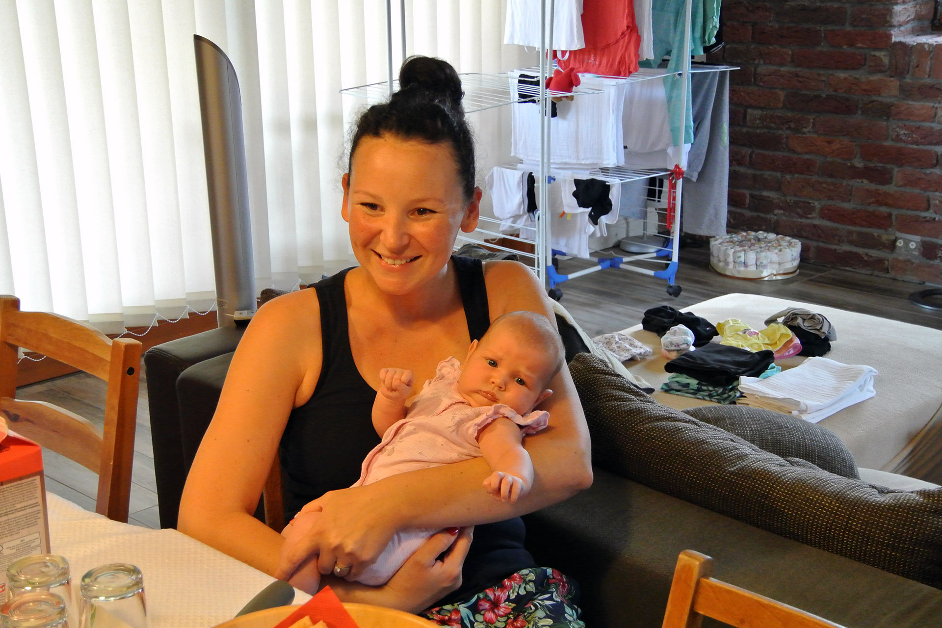 Az apróságról megtudtuk, hogy kifejezetten nyugodt baba, aki végigalussza az éjszakákat. A csöppséget lassan oviba készülő, örökmozgó nővére várta haza.