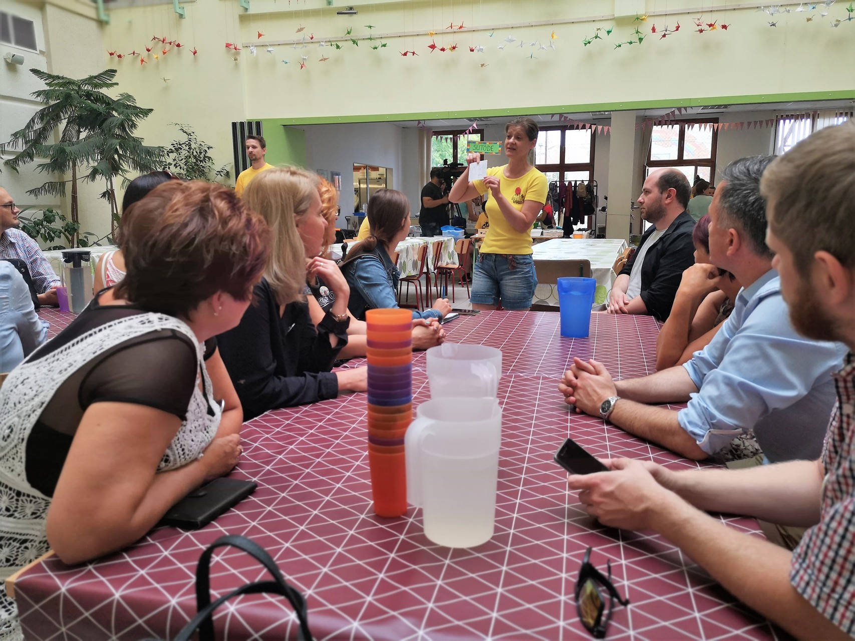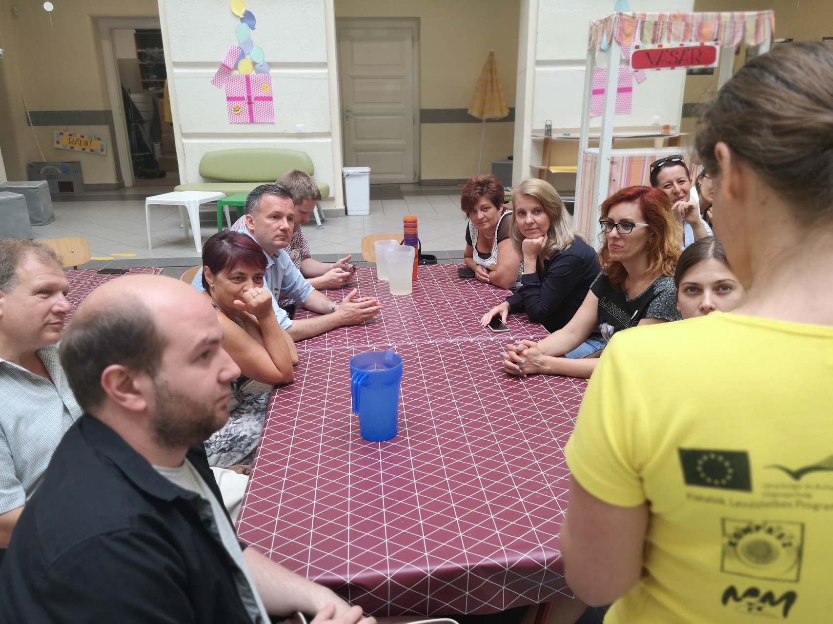 A bejárás során először a városi munkaügyi központot látogattuk meg, ahol a gyerekek minden reggel bejelentkeznek a munkáért. A folytatásban a mini önkormányzat dolgozóival találkoztunk, éppen szavazás zajlott, hiszen a Játékvárosnak is szüksége van egy polgármesterre, akit maguk a lakók választanak ki.