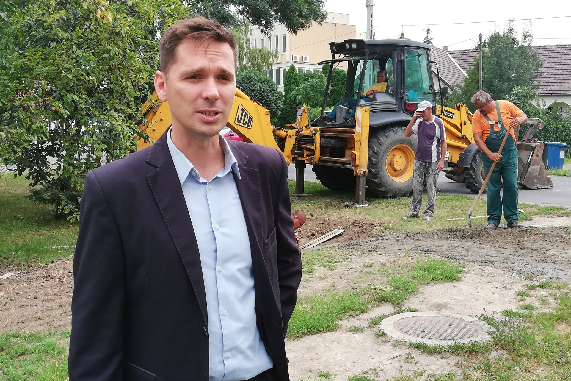 A Nagyváradi úton folytatódik a város csapadékvíz-elvezető rendszerének felújítása – erről tartott sajtótájékoztatót a helyszínen Kiss Szabolcs, a körzet önkormányzati képviselője július 12-én.
