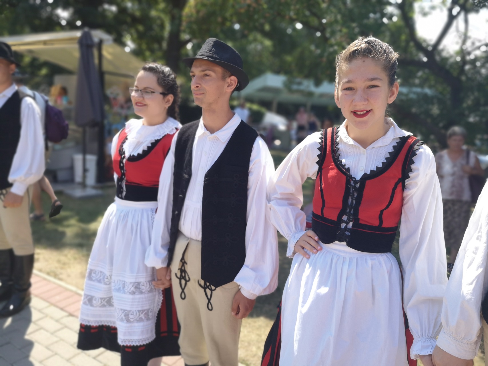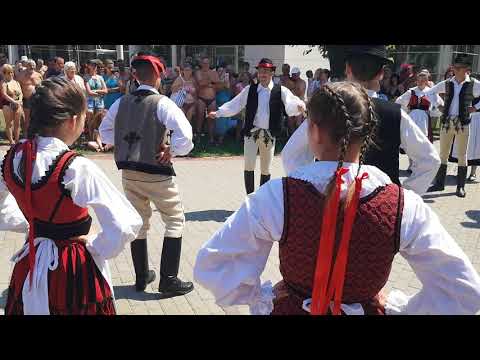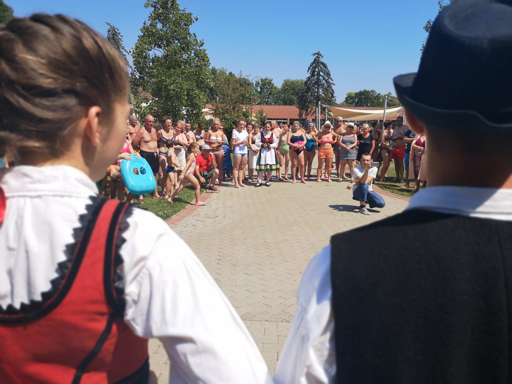 Az előadók ez alkalommal felcsíki és marosszéki táncokat hoztak a fürdőzőknek.