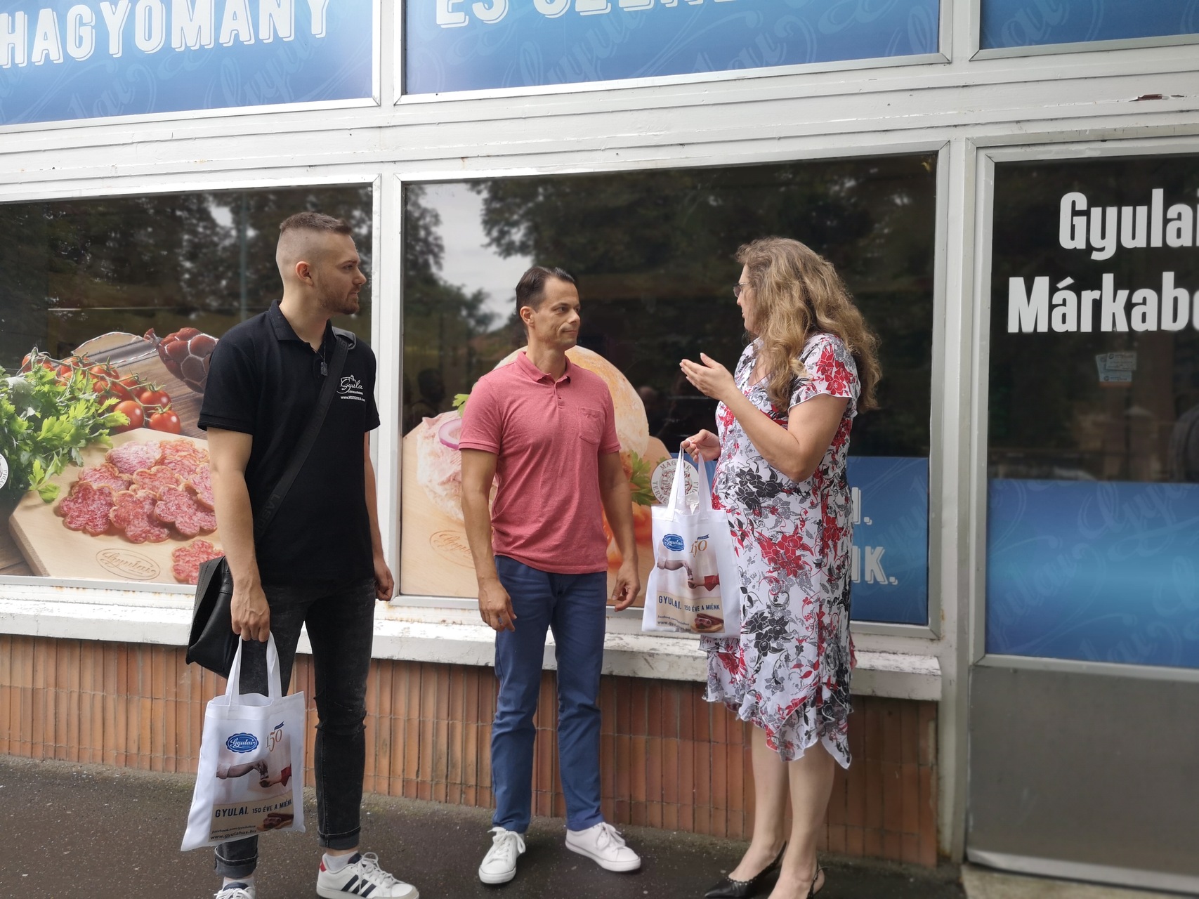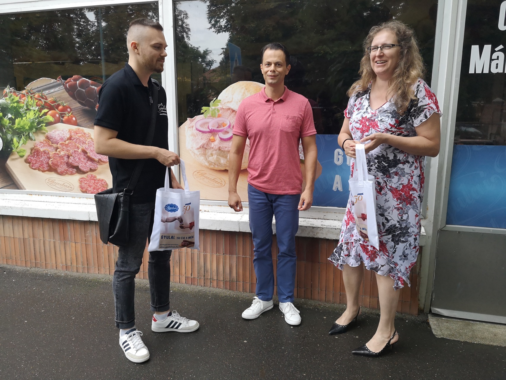 A győztest ez alkalommal is gyulai finomságokkal teli ajándékcsomaggal jutalmazta a Gyulahús Kft.