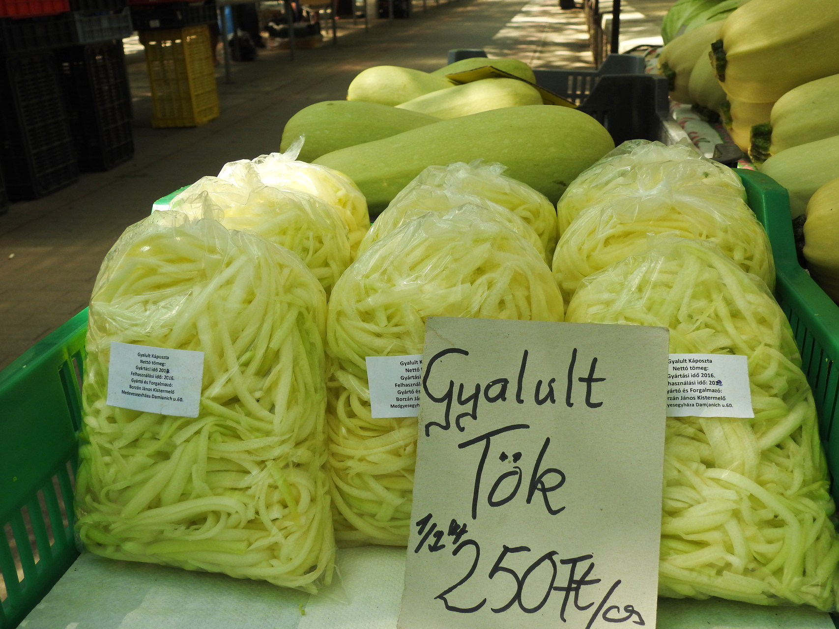Ottjártunkkor félkilós és kilós kiszerelésben is árultak gyalult tököt. Előbbi 250 forintba, utóbbi – kaporra együtt – 300 forintba került. Az egész tök kilóját 150–200 forintért kínálták.