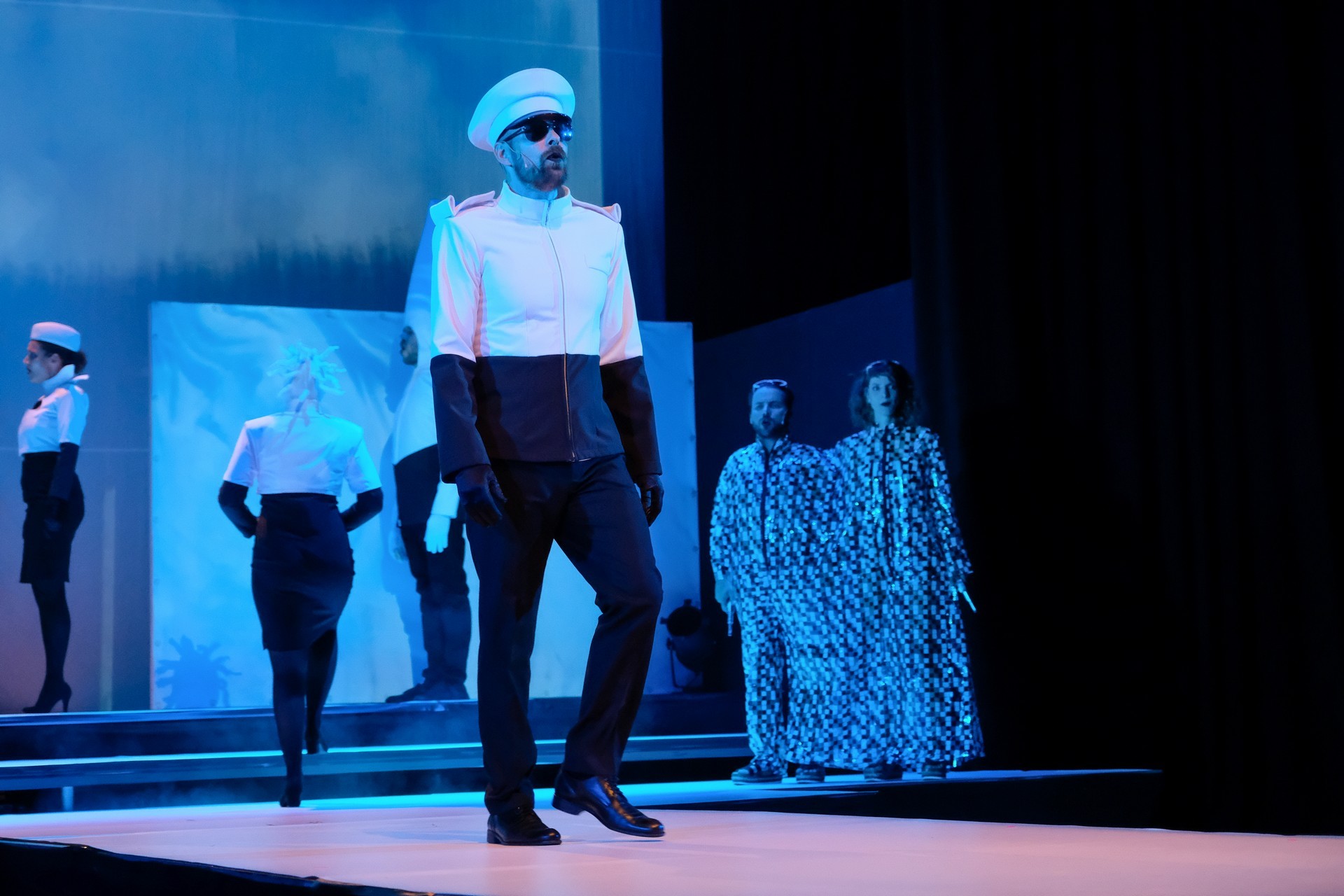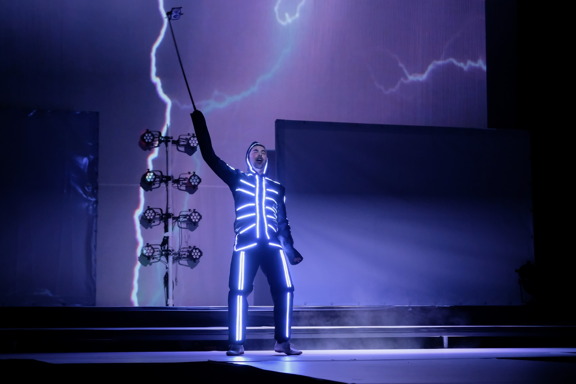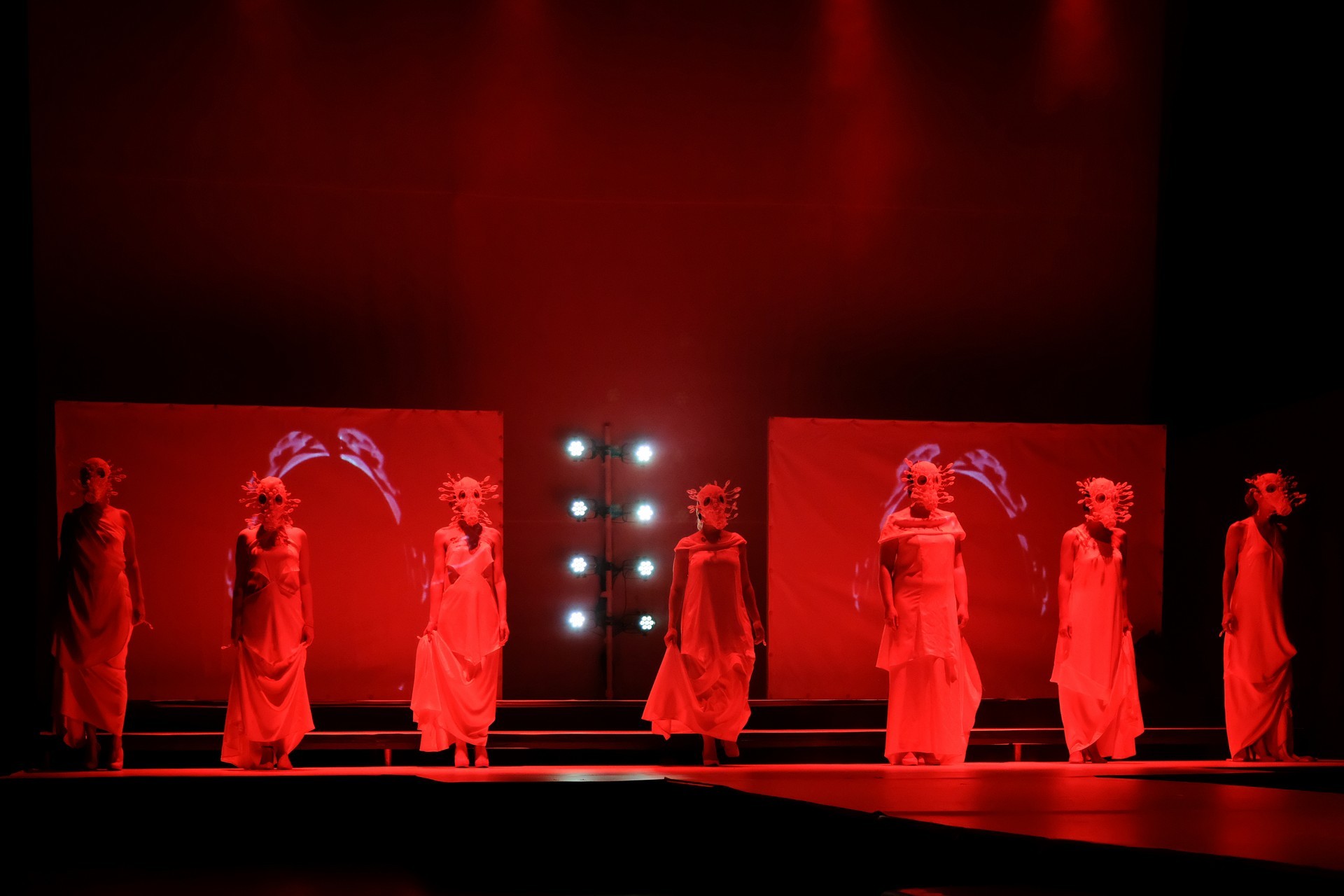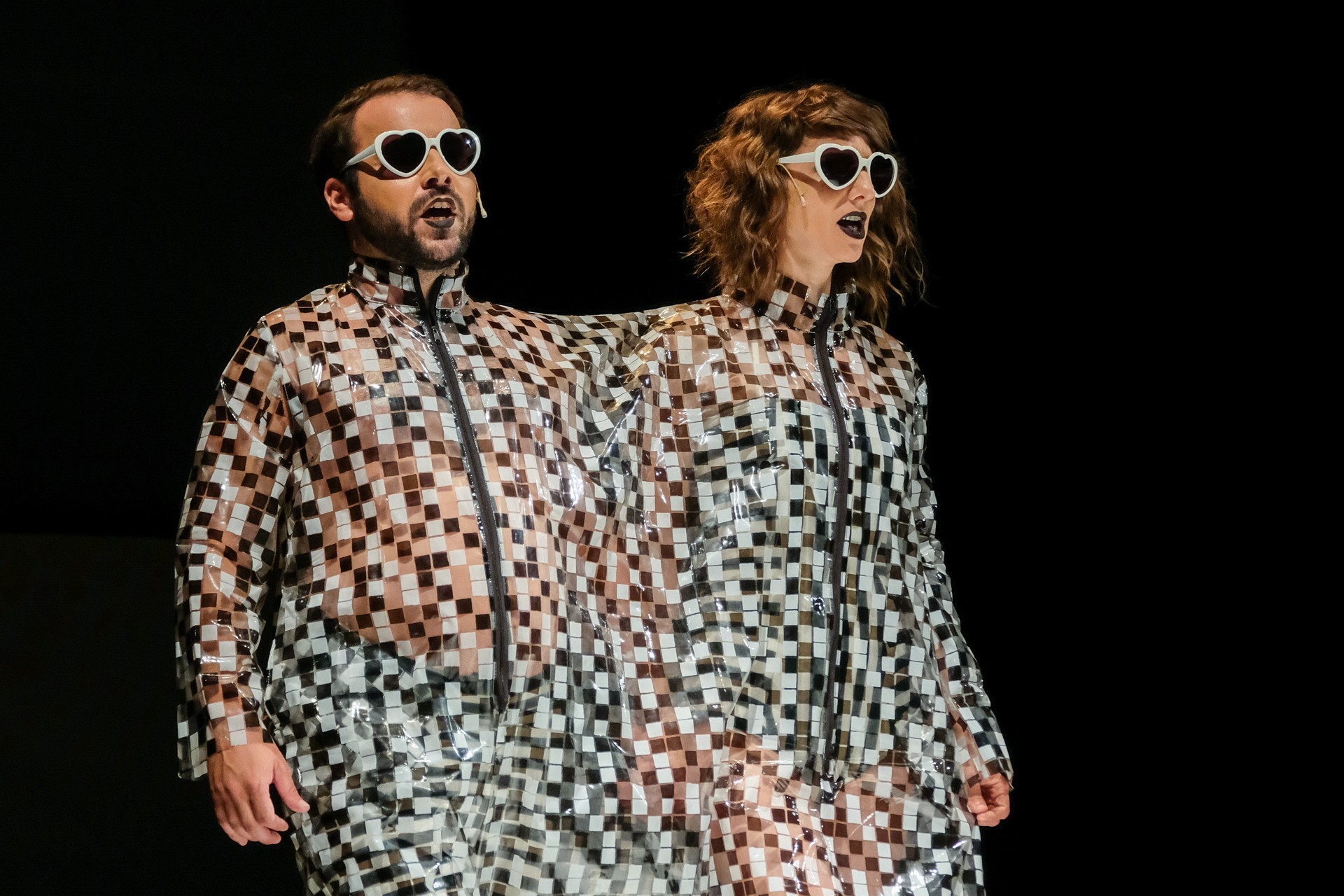 A csapatnak állítólag ez az első olyan előadása, amelyben elektronikus alapra dolgoztak rá más zenei műfajokat. És bár az ötlet hangzatos és élvezetes, picikét elvett a hatásfokából, hogy a mikroportokkal közvetített énekhangot elnyomta a gépmuzsika. Ám ennek ellenére is nyugtázható: a Lantos Rezső-díjas karnagy, Halas Dóra által irányított civilkórus hatalmasat alkotott és teljesített. Az énekesek Duda Éva koreográfiájára, alakzatból alakzatba szerveződve, jelzésszerű karaktermozgásokat végezve játszották el rendkívül hitelesen szerepeiket. Revüjükhöz Kiss Ákos médiaművész és Bartha Márk sound designer vizuális effektjeinek, az emberi testekre és a háttéroltárra vetített képeinek, valamint hanghatásainak együttes kompozíciója biztosított extravagáns atmoszférát.