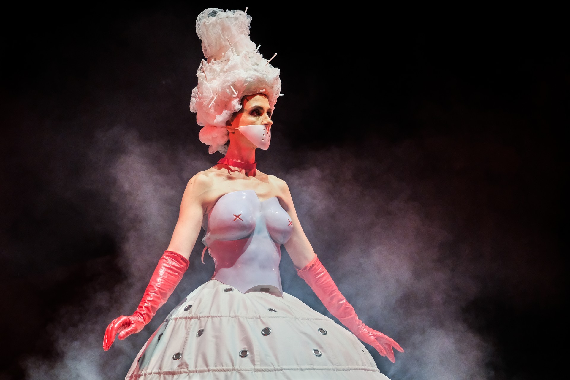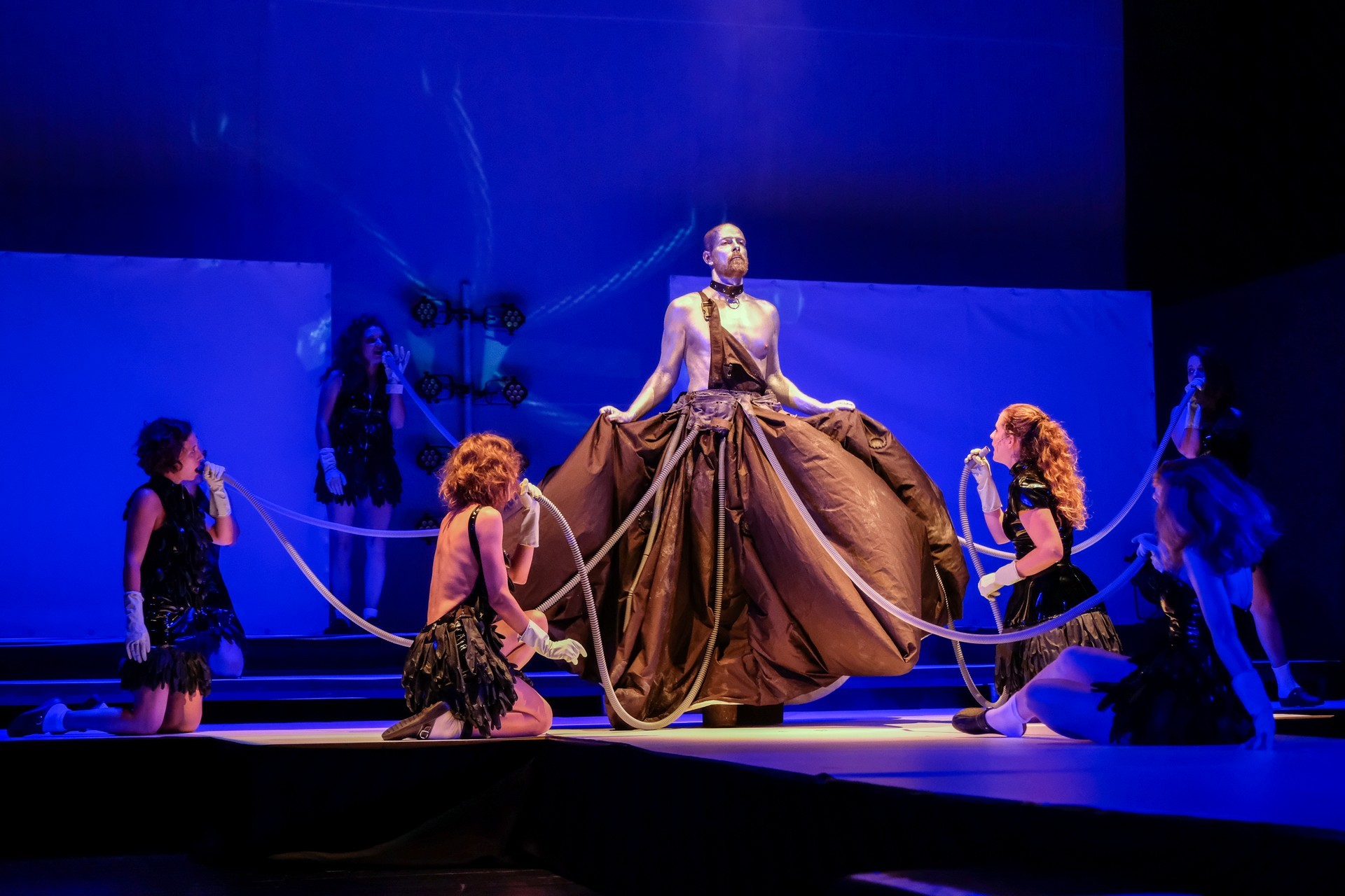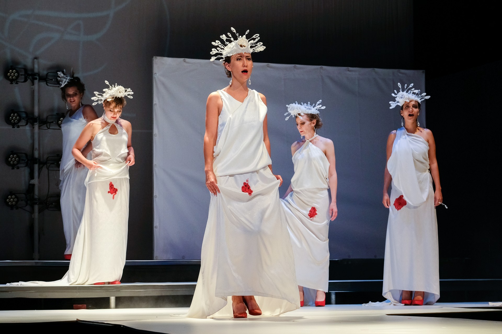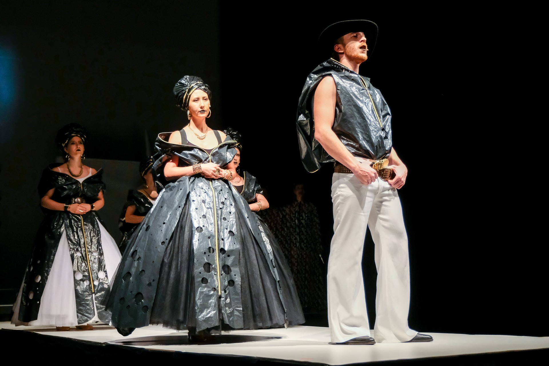 A csapatnak állítólag ez az első olyan előadása, amelyben elektronikus alapra dolgoztak rá más zenei műfajokat. És bár az ötlet hangzatos és élvezetes, picikét elvett a hatásfokából, hogy a mikroportokkal közvetített énekhangot elnyomta a gépmuzsika. Ám ennek ellenére is nyugtázható: a Lantos Rezső-díjas karnagy, Halas Dóra által irányított civilkórus hatalmasat alkotott és teljesített. Az énekesek Duda Éva koreográfiájára, alakzatból alakzatba szerveződve, jelzésszerű karaktermozgásokat végezve játszották el rendkívül hitelesen szerepeiket. Revüjükhöz Kiss Ákos médiaművész és Bartha Márk sound designer vizuális effektjeinek, az emberi testekre és a háttéroltárra vetített képeinek, valamint hanghatásainak együttes kompozíciója biztosított extravagáns atmoszférát.