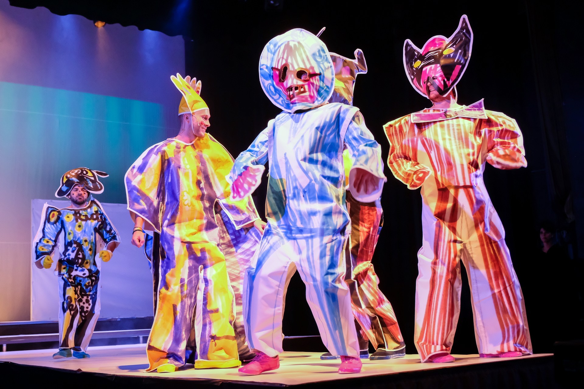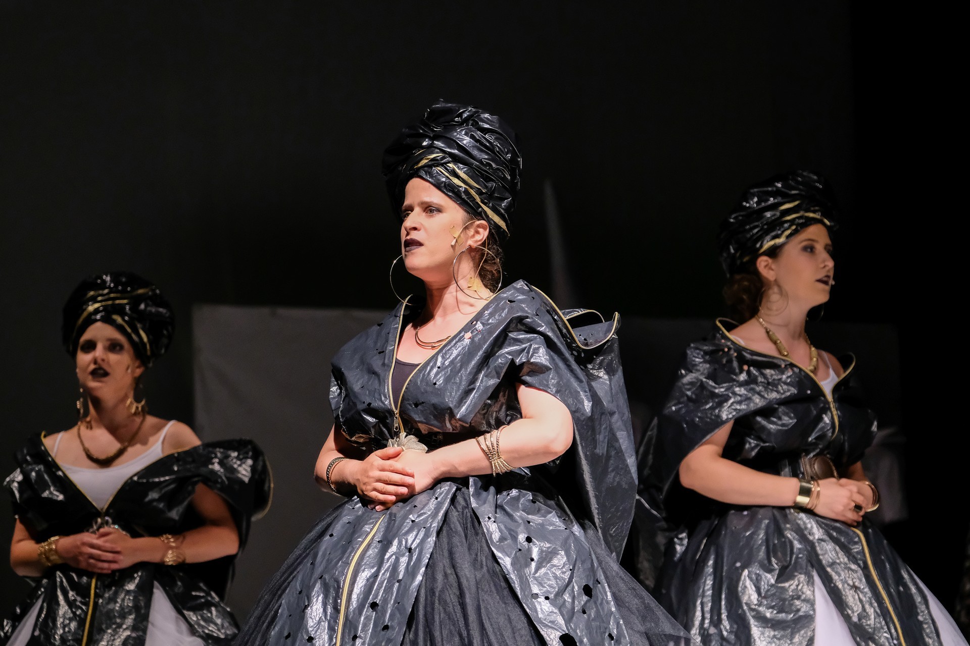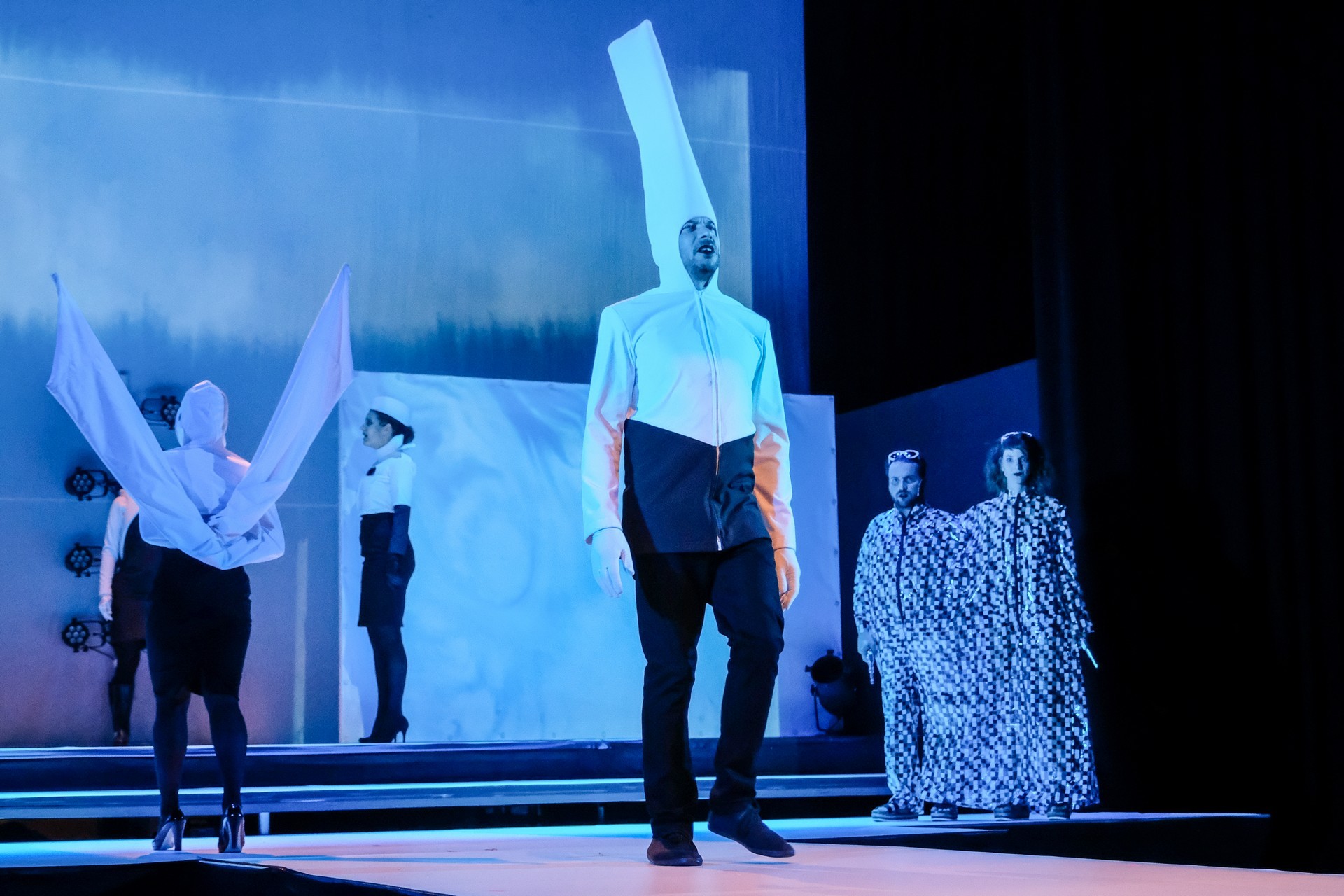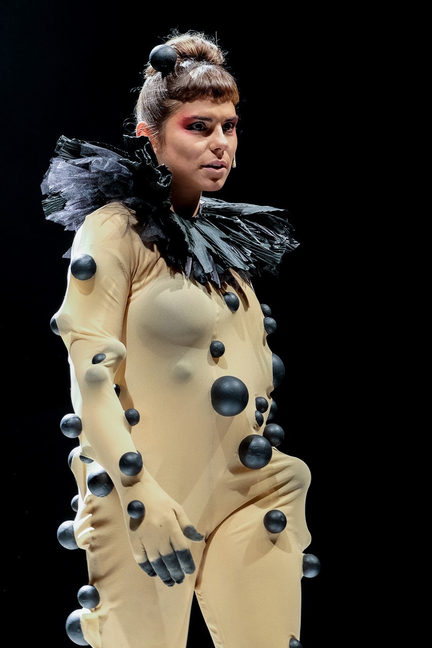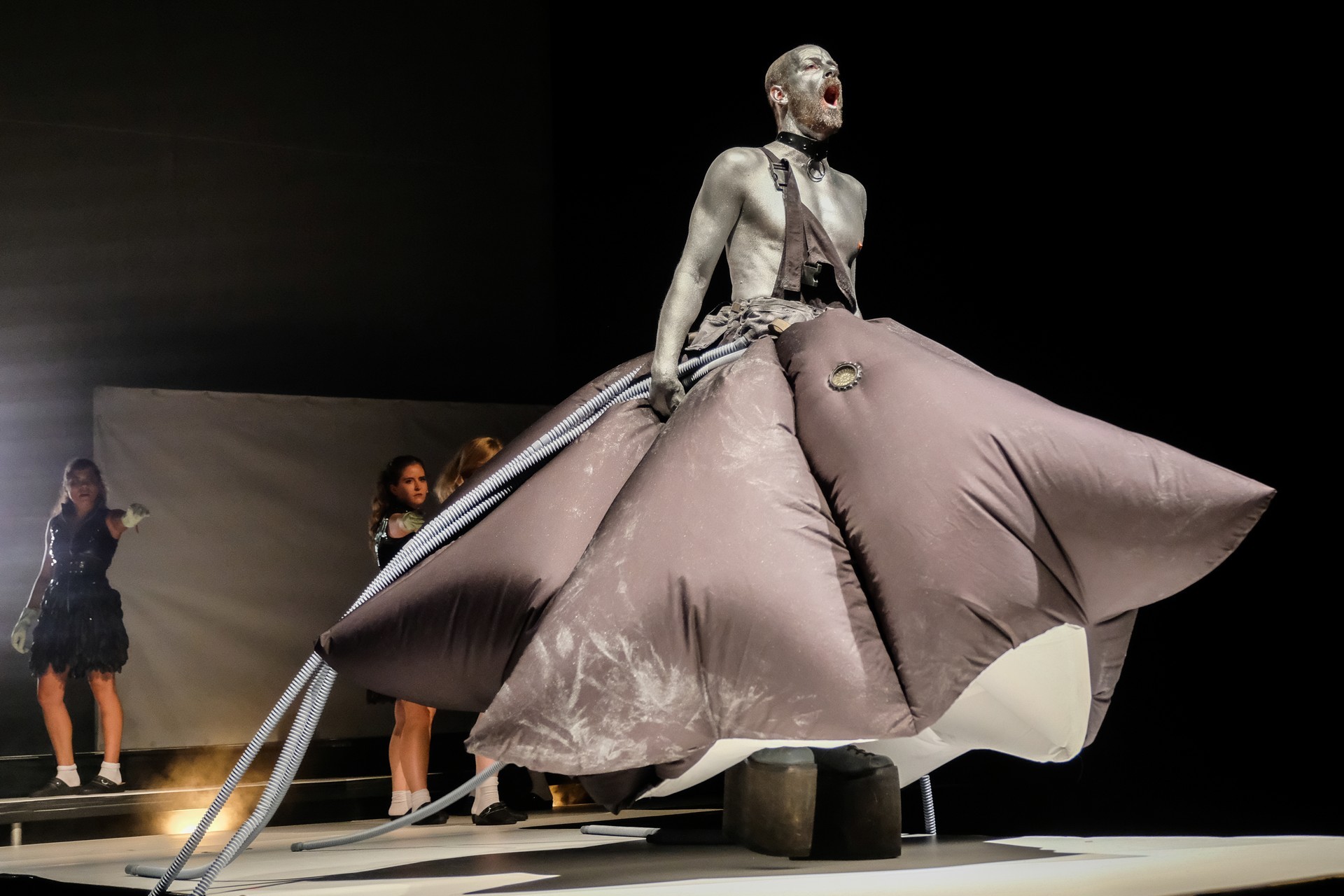 A ledvilágításos és a 3D-technikával nyomtatott kosztümök, a hullazsák- és apácamaszkok a produkció végére nagyon is jelképesen kerülnek le az előadókról, akik ezt követően hozzánk hasonlóan, hétköznapi viseletükben, hétköznapi arcukkal, sokszínűen cáfolják meg a fekete-fehér ellenpólus elvét.