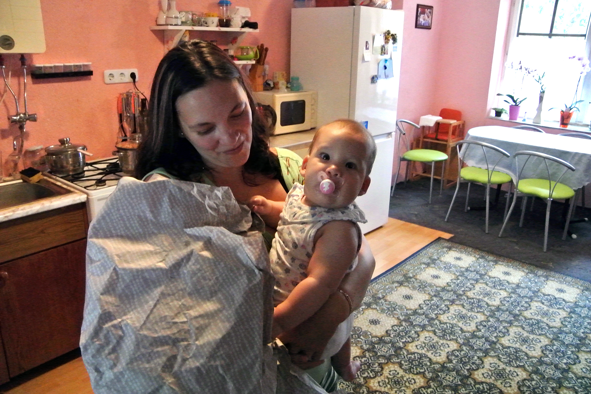 A mostani látogatás érdekességét az adta, hogy az édesanya évekkel ezelőtt a Gyulai Kreatív Varrónők Szociális Szövetkezetének varrónőjeként maga is segédkezett a babaruhák elkészítésében és átadásában.