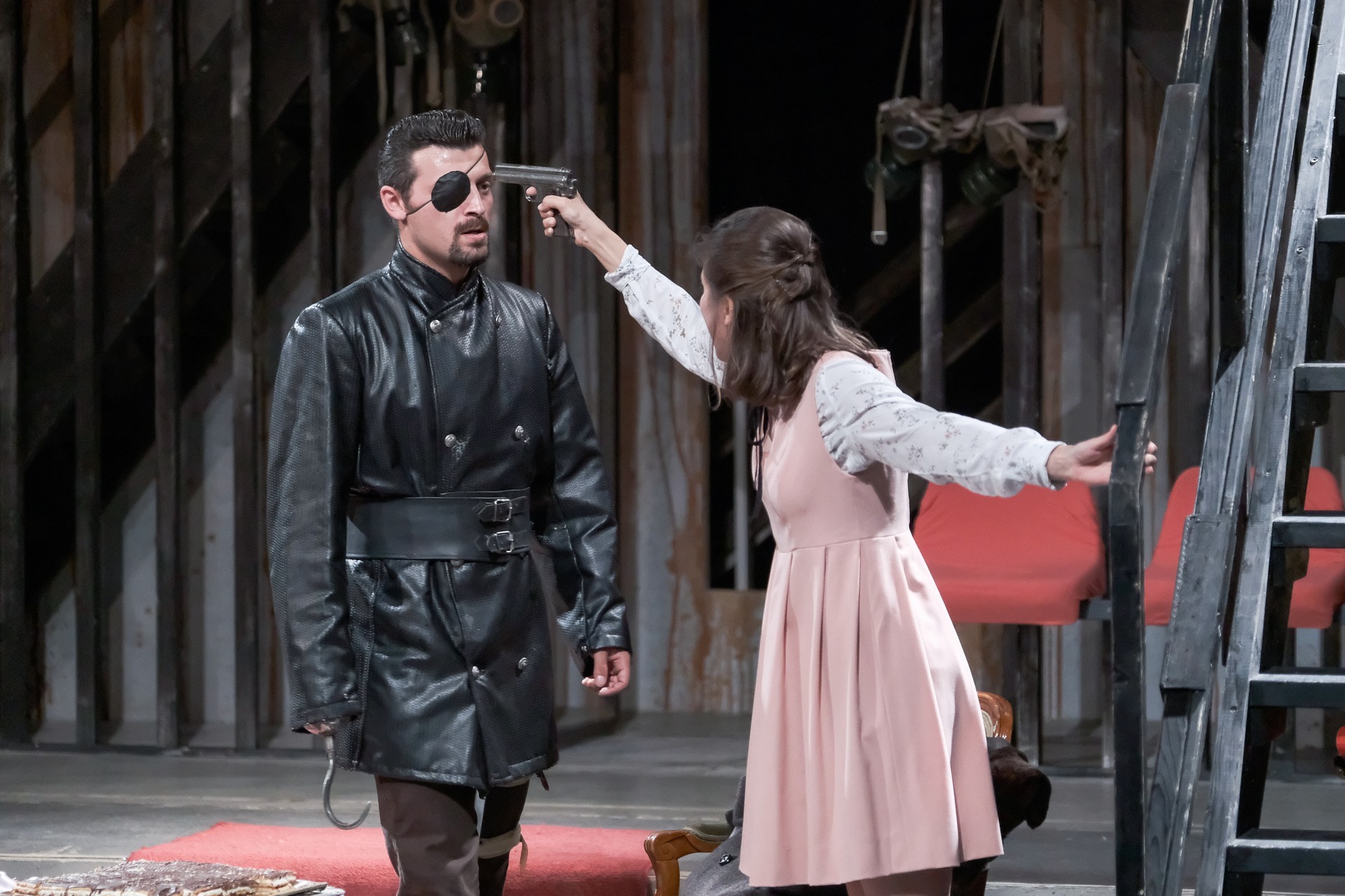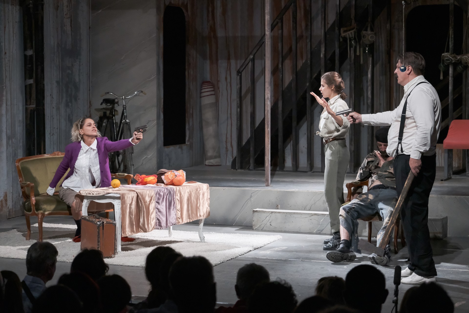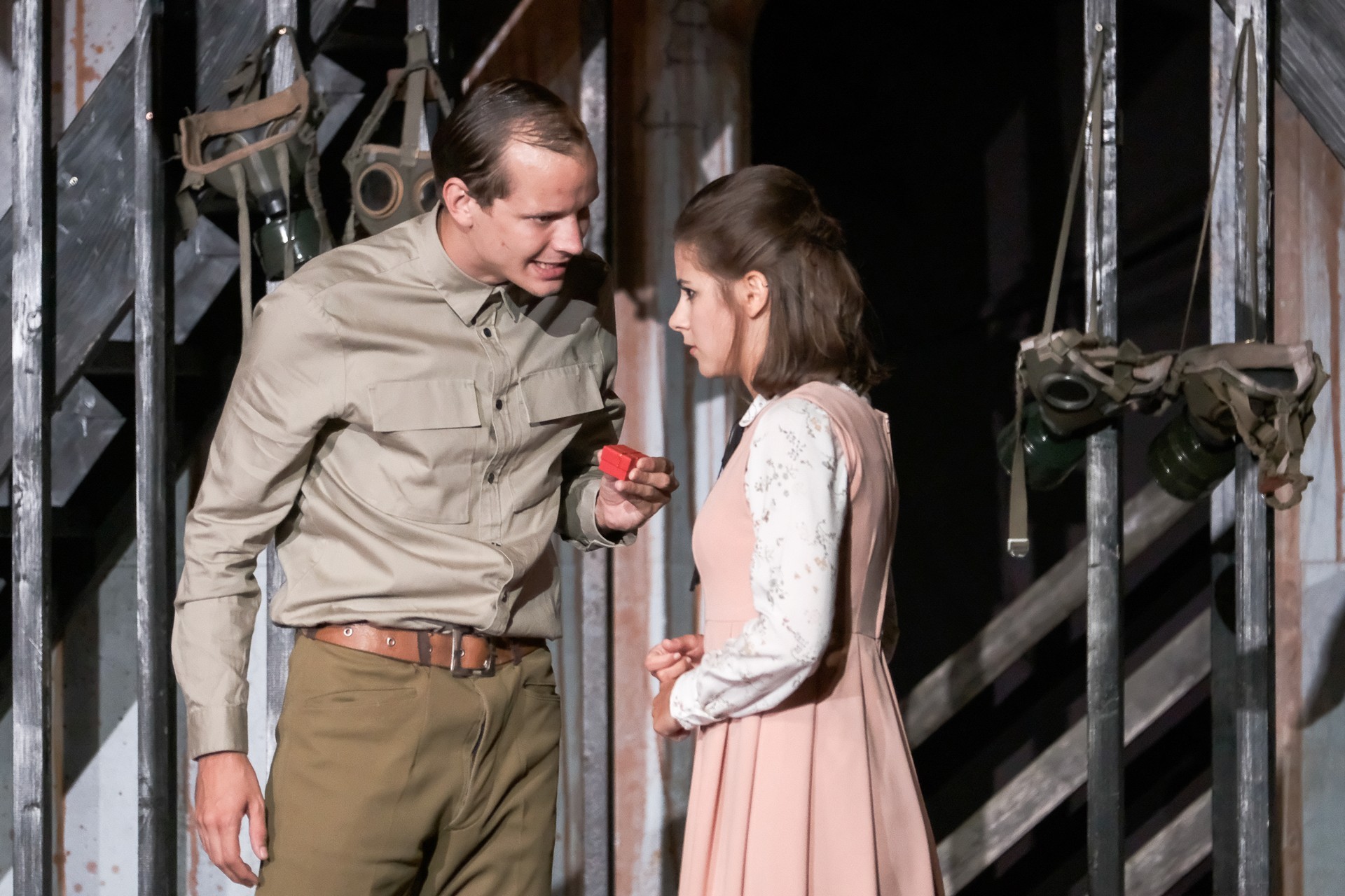 Egy ilyen világban mindenkinek kell lennie fegyverének. De nem mindegy, mire használja. Elza is pisztolyt kap ajándékba Radostyán Tihamértól (Rózsa Krisztián), a félszemű, kampókezű, műlábú hadfitól, akihez a szülők hozzá akarják adni feleségül, mert hát övé a bunker, a további létük tőle függ. De Elza mást szeret, Arnóti Dezsőt (Feczesin Kristóf), aki a fronton harcol, a háborúban, s ahonnan haza is tér, a lány nagy örömére. Jelen világunkban nem lehetnek egymáséi, de talán egyikben sem. A szerelem, barátság, bizalom, család, lojalitás mind eltűnni látszanak a legeslegutolsó emberiség órákban. Minden egész eltörött!