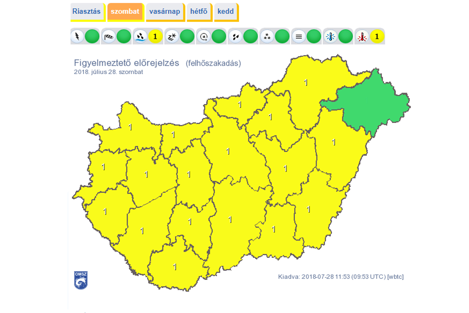 Ma napközben az ország nagy részén kedvezőek lesznek a feltételek zivatarok kialakulásához. Nagyobb számban főként az Alföldön és a Dunántúl délkeleti részén fordulhatnak elő – írja a met.hu. Az éjszaka folyamán fokozatosan csökken a zivatarhajlam, de az éjszaka első felében az Alföldön még nagyobb területen lehet csapadék. Holnap napközben a Dunától keletre, elsősorban az Alföldön fordulhat elő helyenként zivatar. Az intenzívebb zivatargócokat elsősorban felhőszakadás (lokálisan 20–40 mm csapadék) kísérheti, de helyenként 60-70 km/h-t meghaladó széllökés és jégeső is előfordulhat.