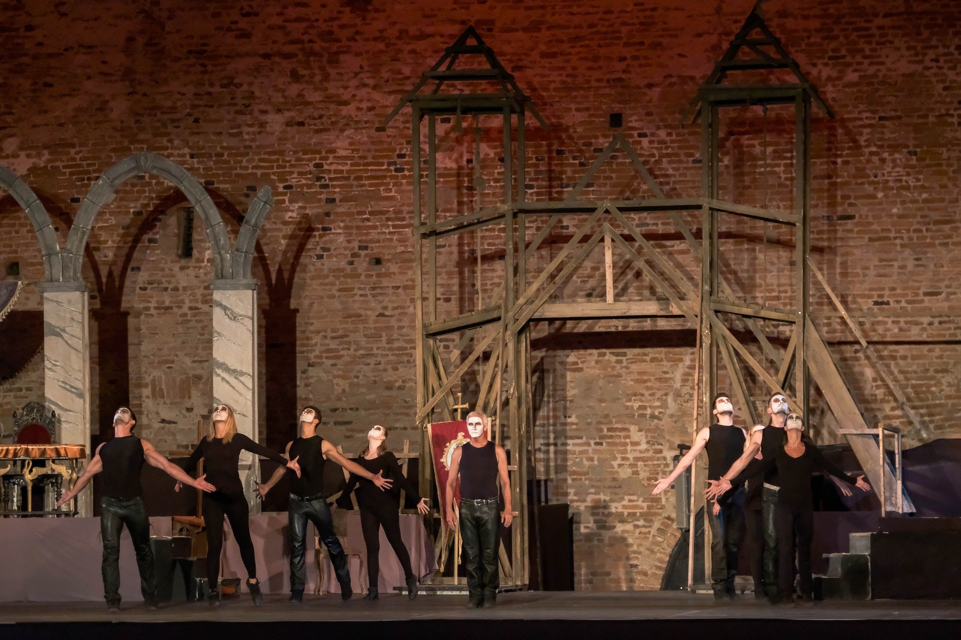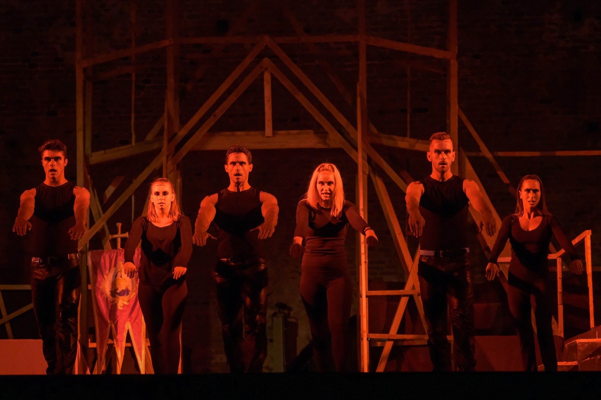 A várfalak jelenetekbe való bevonása, más-más színekkel megvilágítása különleges aurát teremt. A haláltáncosok lassú mozdulataikkal mintegy árnyakként vonulnak végig az előadáson, mintha keselyűk vagy fúriák lennének, mindig várják a halált, ólálkodnak, elragadnak. Zrínyi szemét is eltakarják az elején, majd a fejére fókuszál a fejgép a végén, keretet adnak a történetnek. Valóban így volt: noha Mehmed nagy pompában temette el Zrínyit, a fejét levágták, és elküldték Miksa császárnak egy futárral a győri táborba egy levél kíséretében. Ez a levél arról tesz tanúbizonyságot, hogy a törökök elismerték Zrínyi nagyságát, hősiességét, és tudták, hogy milyen nagy veszteséget okoztak a magyarságnak. Soraikból Miksa és az udvar megvetését is kiolvashatjuk. A levél így szól: „Legbátrabb emberetek fejét küldjük, amelyre a jövőben is nagy szükségetek lenne…”. Az aktualitás tagadhatatlan.
