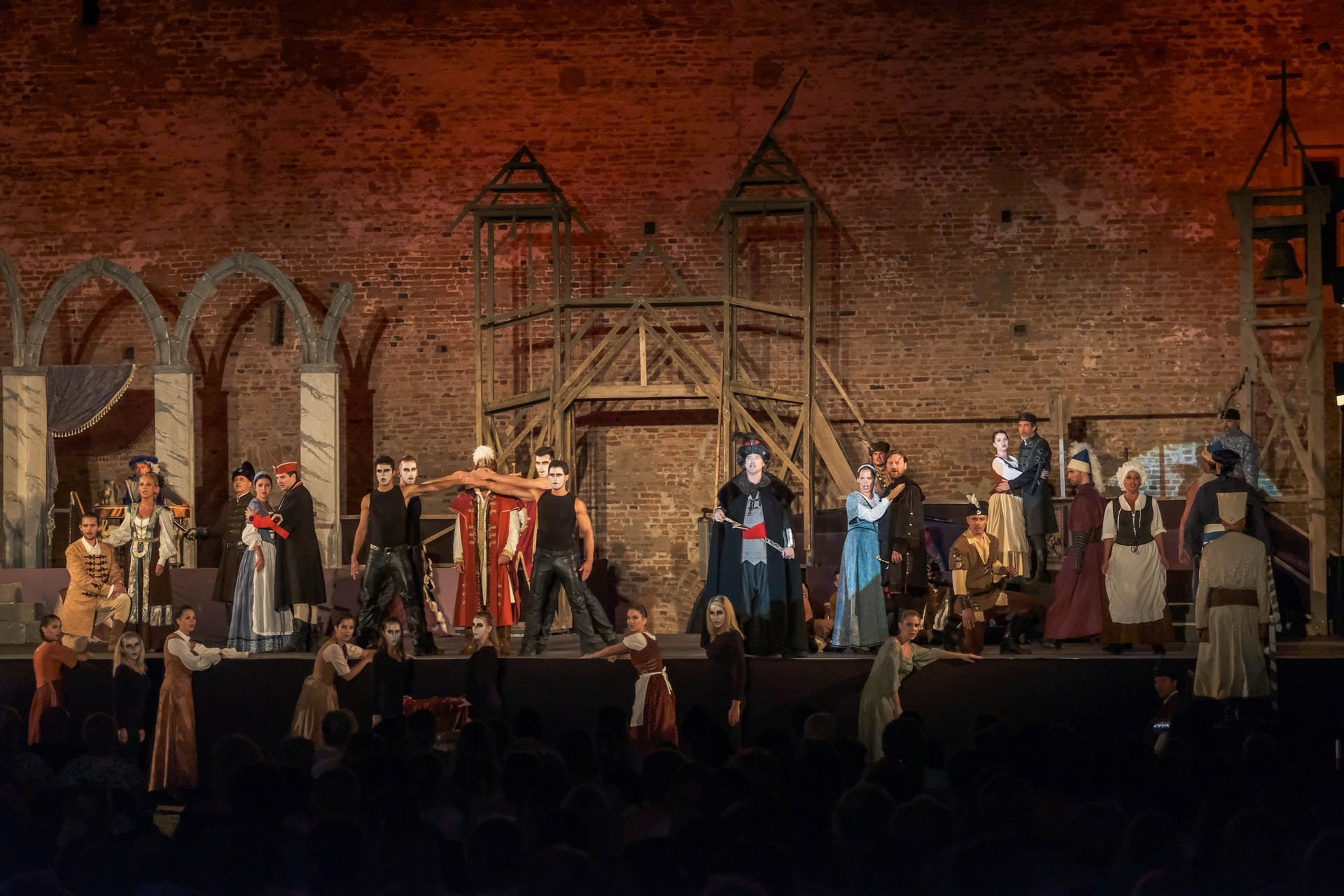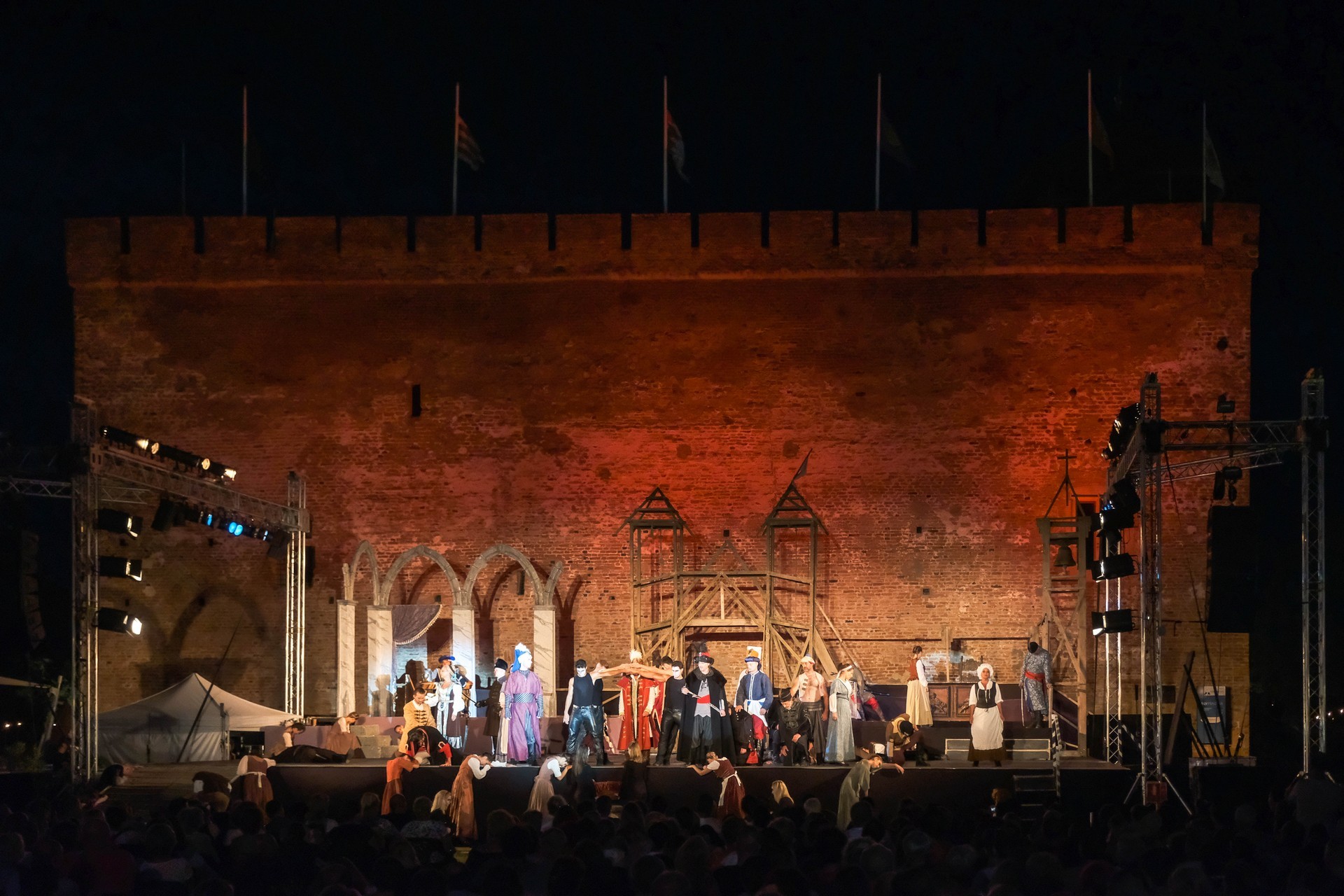 Hatalmas tömeg és török zene fogadta a Rondellához kiérkezőket péntek este, a Gyulai Végvári Napok rendezvénysorozat keretében ugyanis ingyenesen tekinthette meg Gyula lakossága és vendégei a Zrínyi 1566 rockmusicalt. Az előadást Moravetz Levente köszöntője nyitotta meg. Hitelesebb környezetet nem is találhattak volna Szigetvár mellett, mint az ugyancsak 1566-ban elesett gyulai vár előtti teret. Ilyen színtérben lehet minimális a díszlet. Nem is a látvány volt a lényeg, hanem a koreográfia. Eredetileg 2009-ben Szigetvárott mutatták be a darabot hagyományteremtő célzattal, amelyet a kirohanás napjához, szeptember 7-éhez legközelebb eső hétvégén minden évben műsorra tűznek. A szöveget Moravetz Levente, Balásy Szabolcs, Horváth Krisztián és Papp Zoltán írták. A történet Cserenkó Ferenc (Török Tamás) kamarás, életben maradt várvédő elbeszélése alapján íródott, de felfedezhetőek a dédunoka, az író-költő-hadvezér gróf Zrínyi Miklós Szigeti veszedelem című eposzának emlékőrző nyomai is. A téma évek óta hever arra várva, hogy film készüljön belőle, noha a Youtube-on megtalálható animáció már jelentős előrelépés.