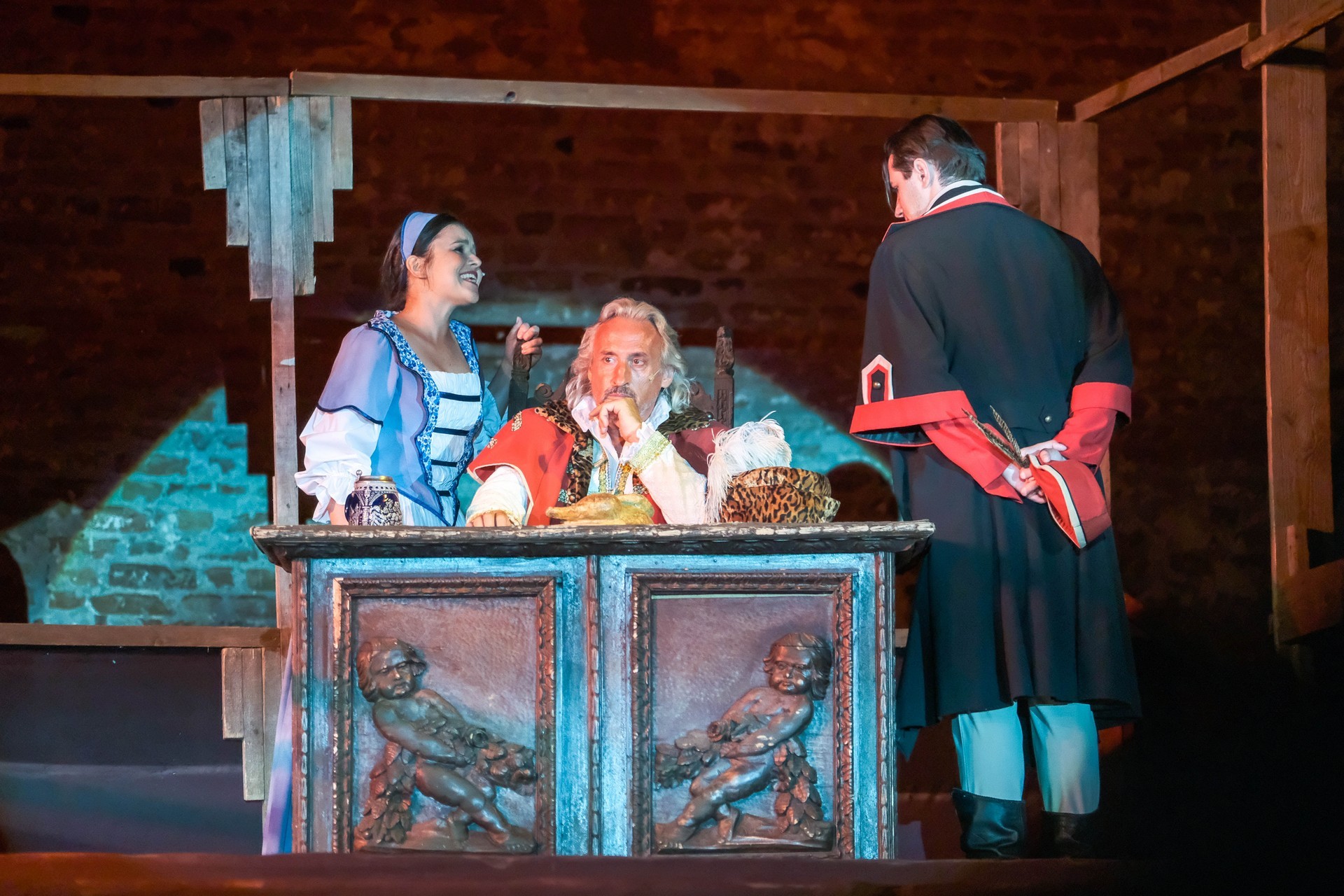 Szerkezetét tekintve a darab folyamatosan vált a prózai és zenés részek között. A visszatérő dallamok, motívumok, a török zenei világ állandó jelenléte, a dalokat a prózai részekbe átvezető háttérzenék azonban olyan egységet teremtenek, amelybe harmonikusan simulnak bele a három alkotó szerzeményei. A néző figyelme állandóan megkövetelt, több térben, több idősíkon zajlik a cselekmény. Párhuzamosan láthatjuk a vár ostromának kibontakozását, valamint Cserenko kamarás visszaemlékezéseit.