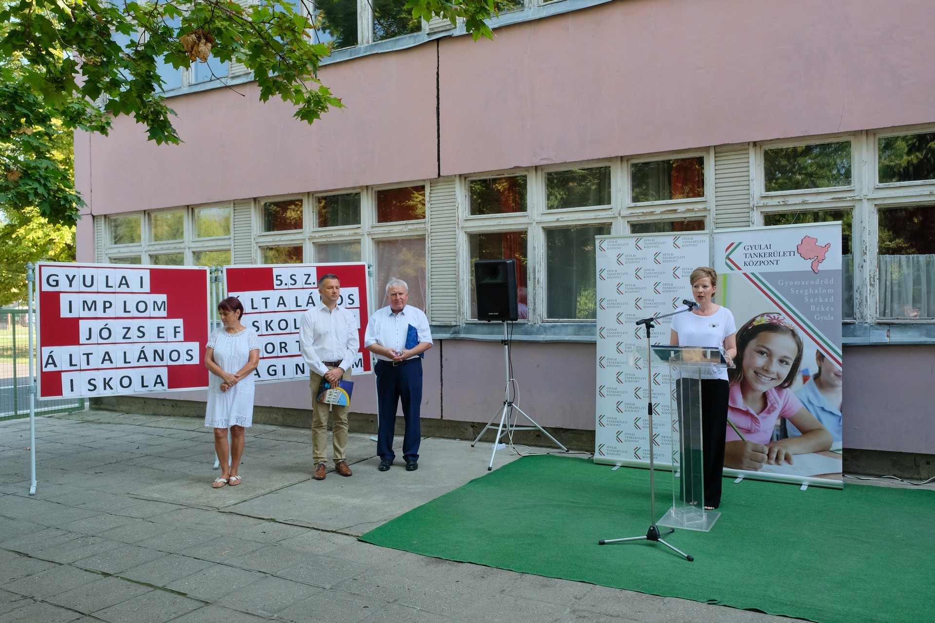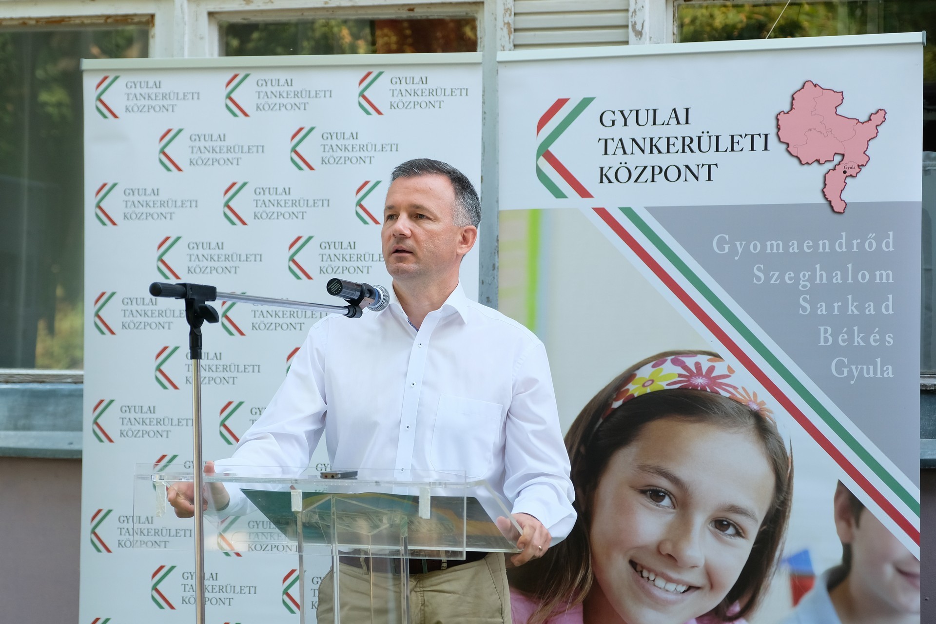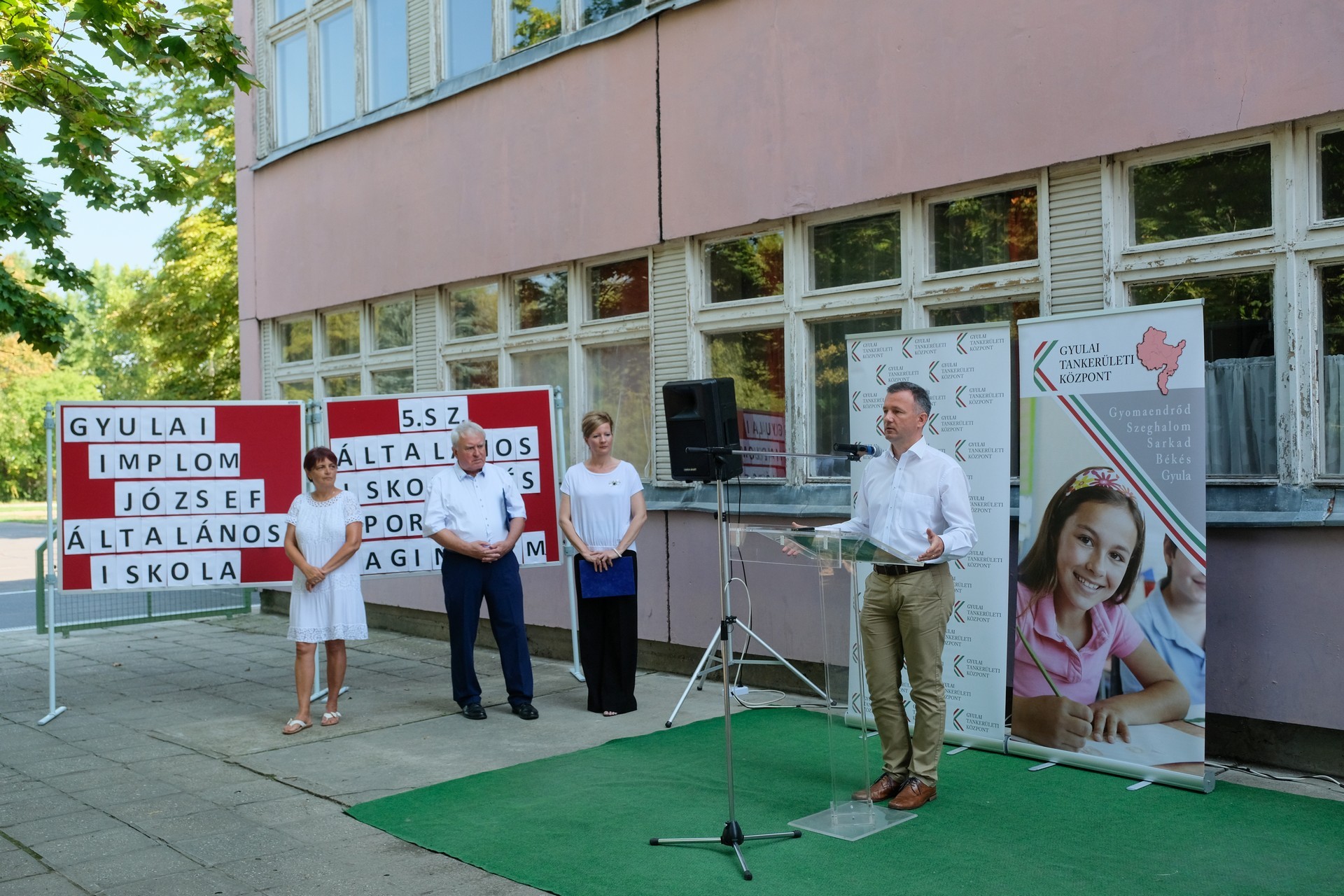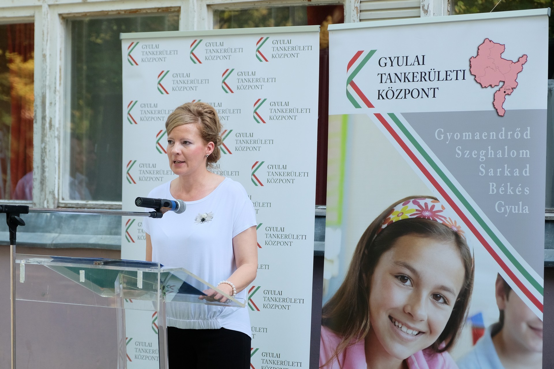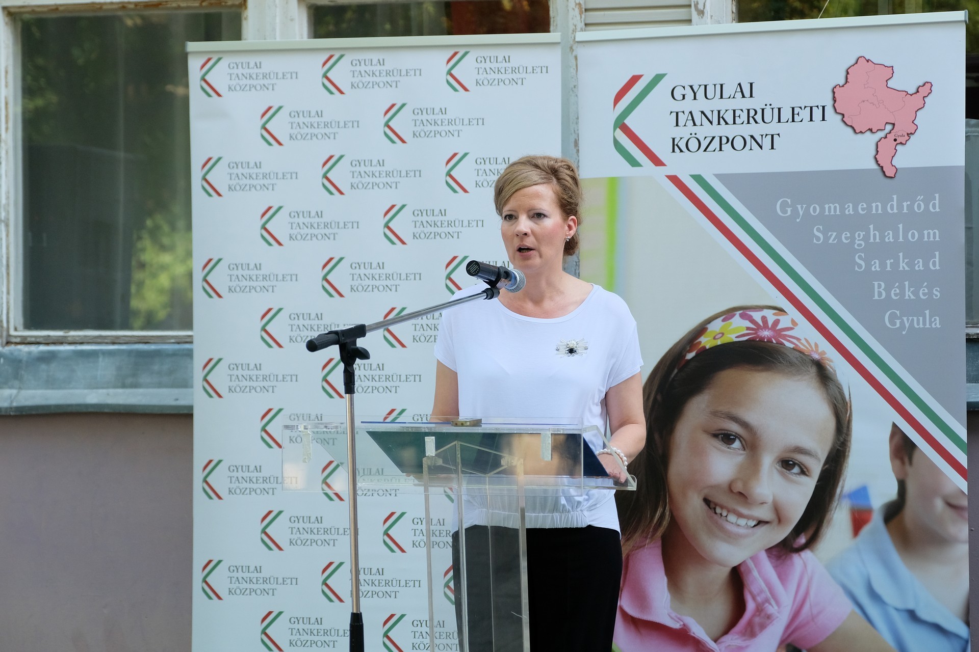 Teleki-Szávai Krisztina emlékeztetett: a Gyulai Tankerületi Központ 3 milliárd forintból megvalósuló iskolafejlesztési programjának meghatározó területe „Az állami fenntartású köznevelési intézmények tanulást segítő tereinek infrastrukturális fejlesztése” felhívás, amelynek keretében tizenhárom köznevelési intézmény újul meg ezekben a hónapokban, összesen 750 millió forintból.
