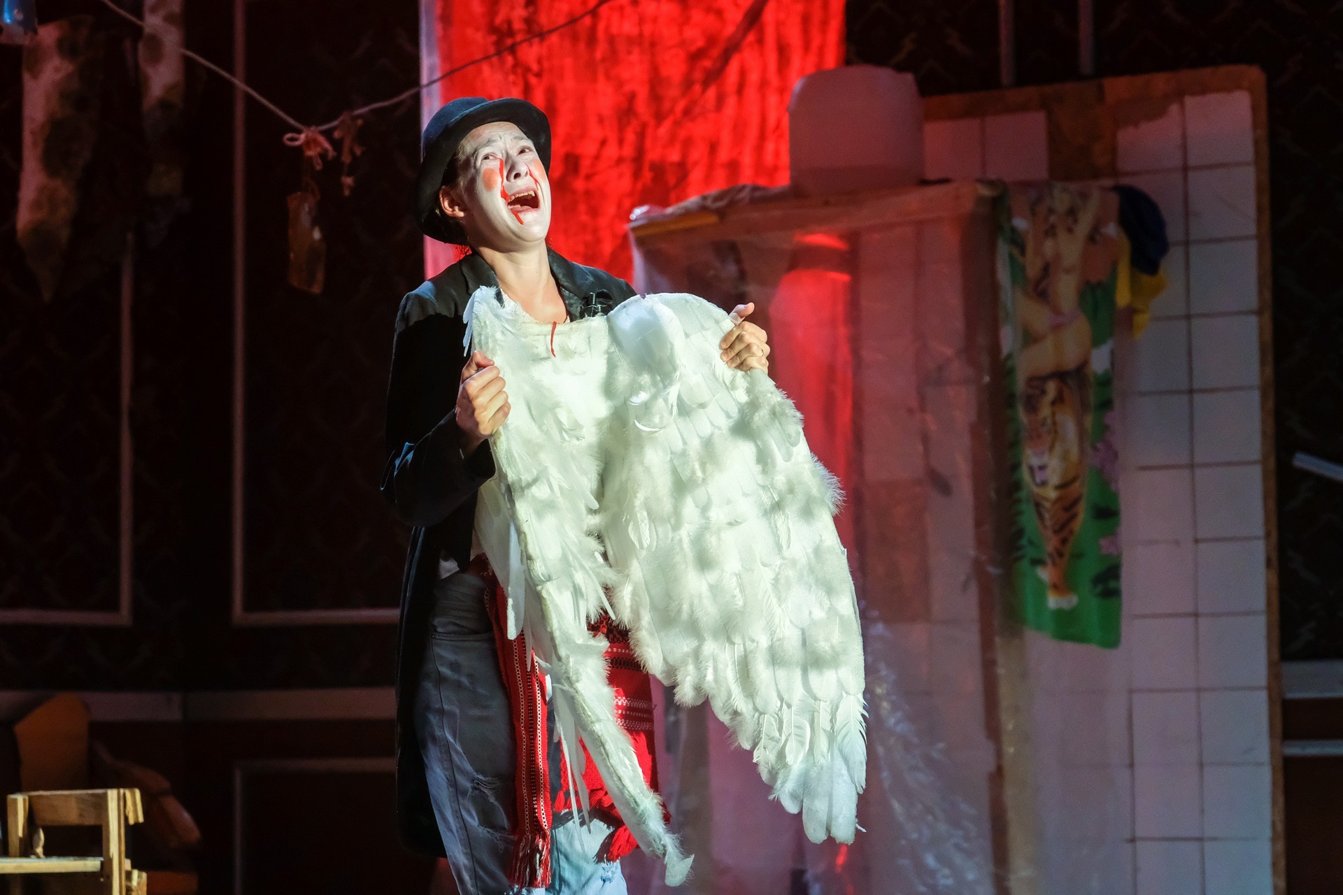 A gyergyóiak korrajza jól összeállt, sziporkáztak benne a zseniális ötletek, a kortárs megoldások, izgalmas volt, amint légtornászként felmásztak a csilláron, majd visszaereszkedtek rajta, az élő közvetítés is megtalálta a helyét az érthető összevisszaságban és a megrendezett rendetlenségben, a román szöveg üzenetszerűen helyettesítette a franciát, és mindezt profin zárta le a balkáni hejehuja és tánc, a románul bemondott magyar színésznevek (ezt is csak egy romániai magyar érti meg igazán). Az időtlenségével háttere előtt ily módon tombolt az emberi hiúság karneválja.
