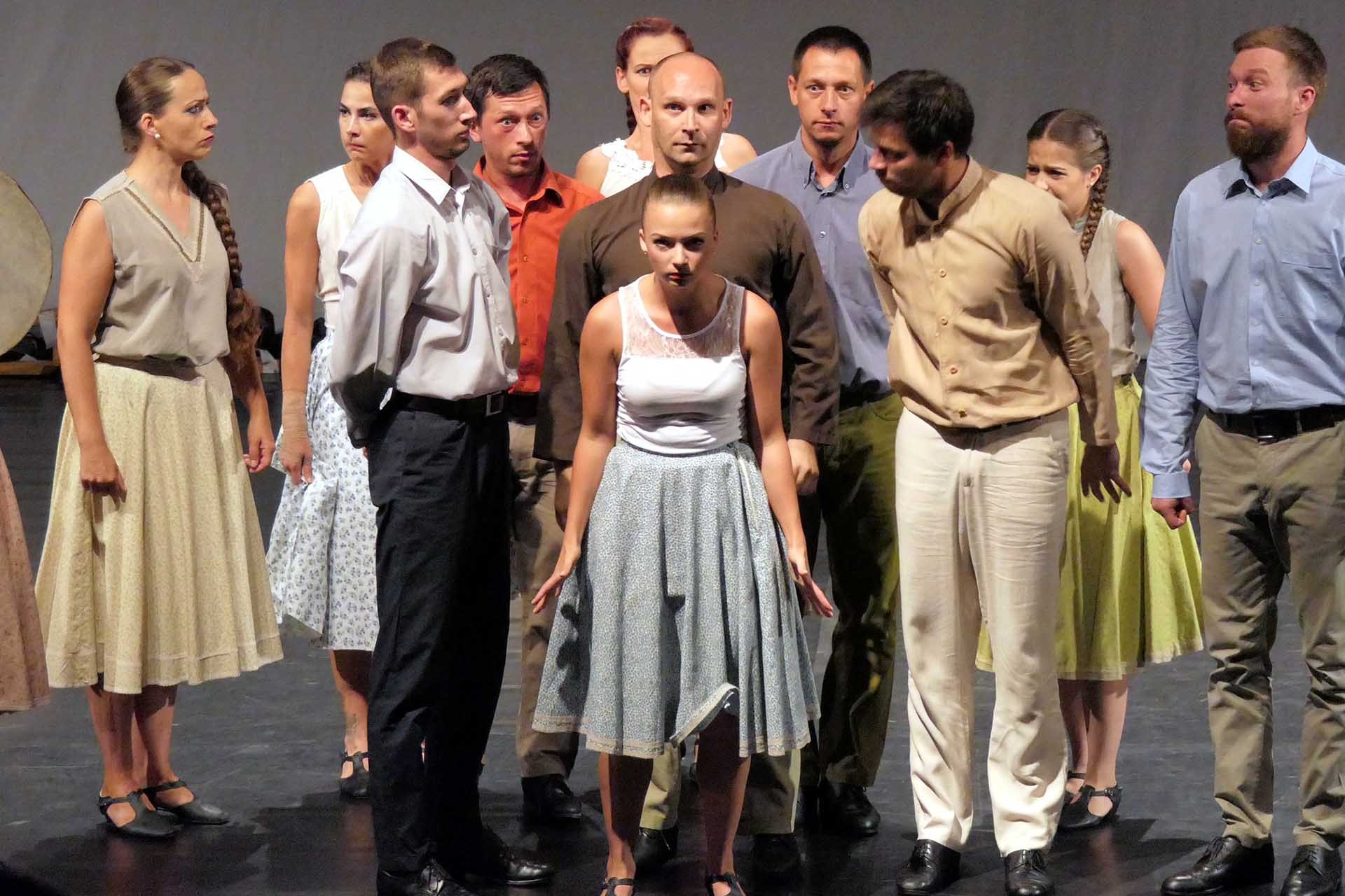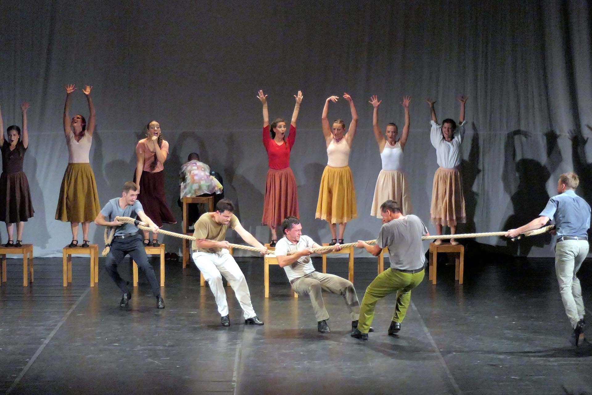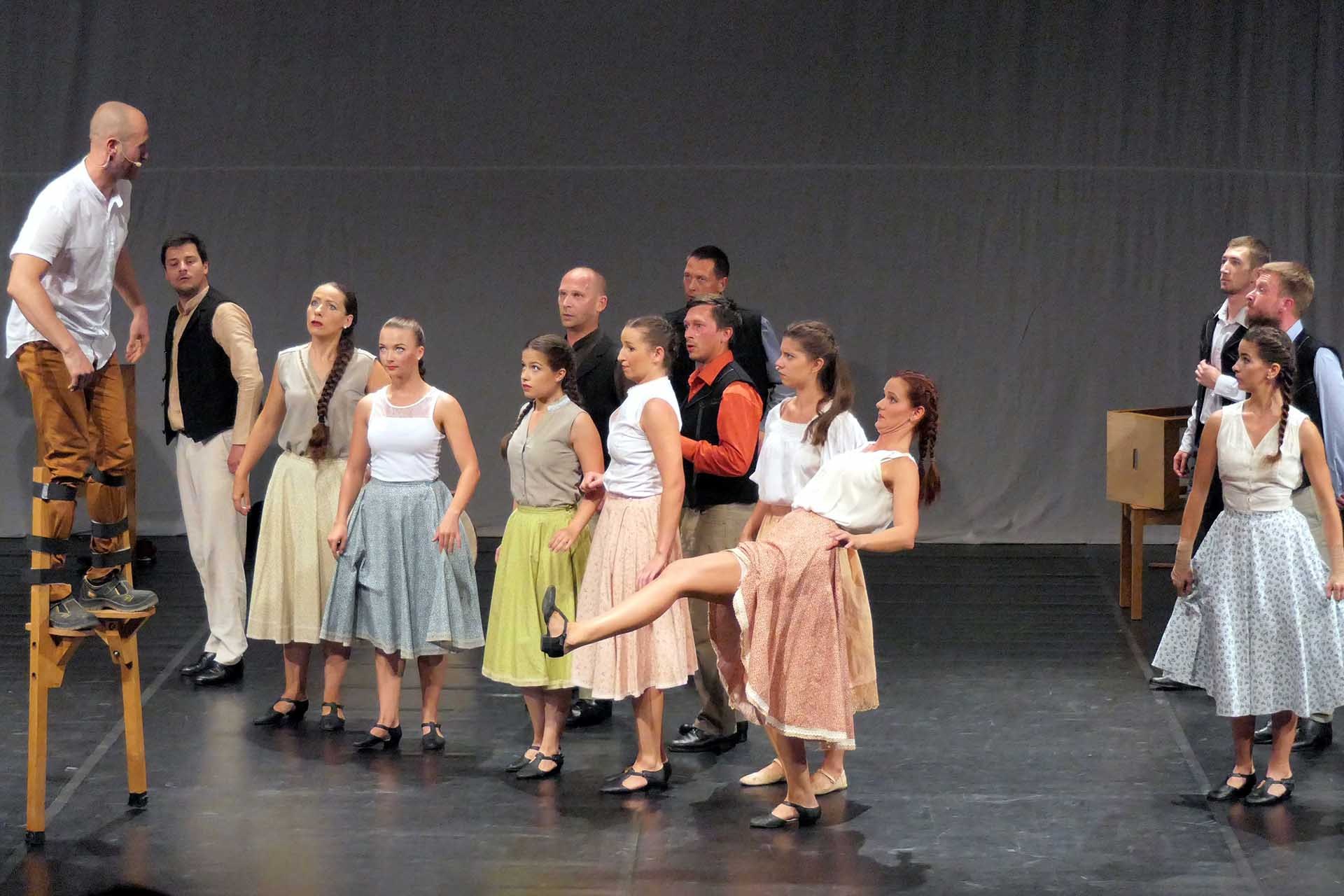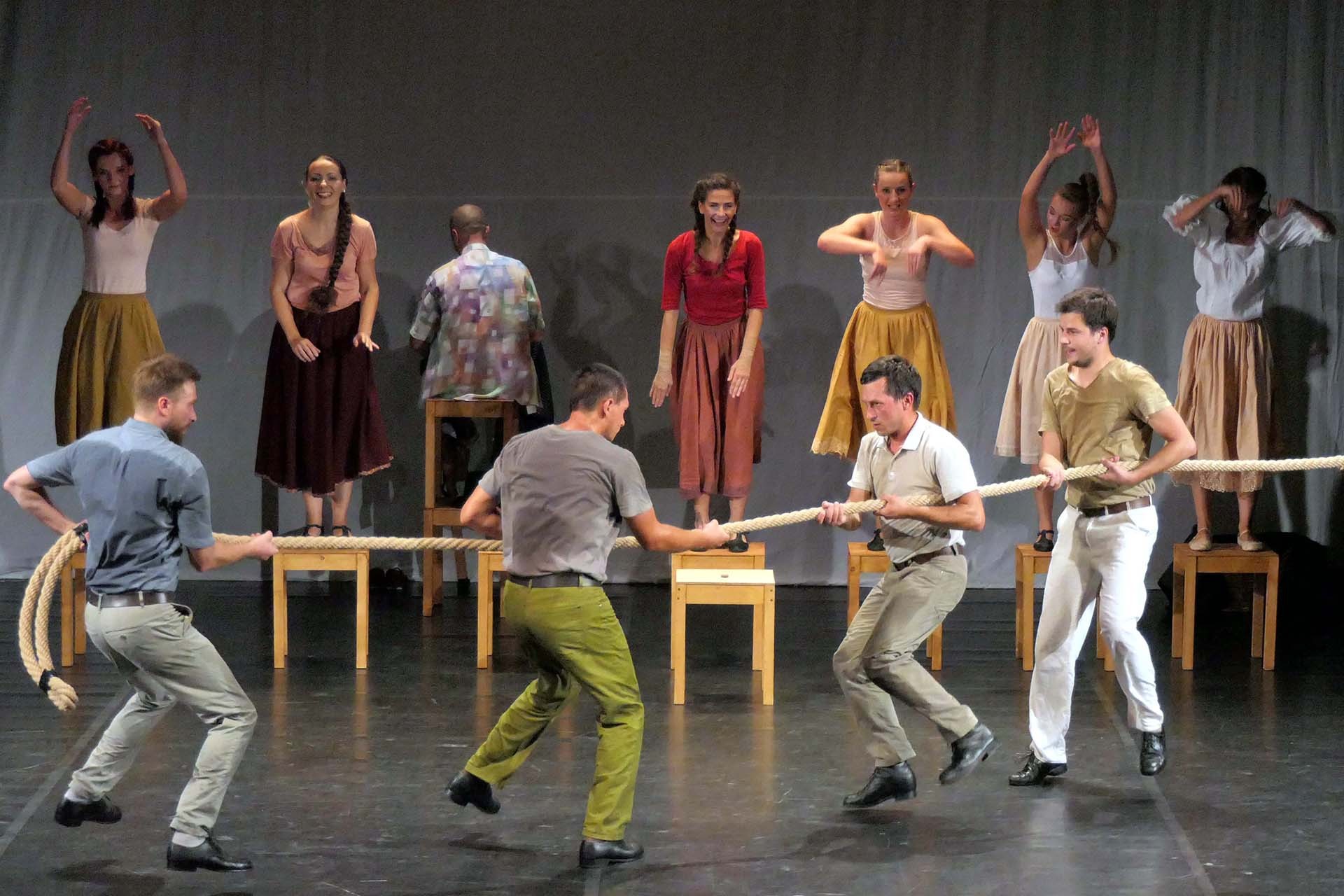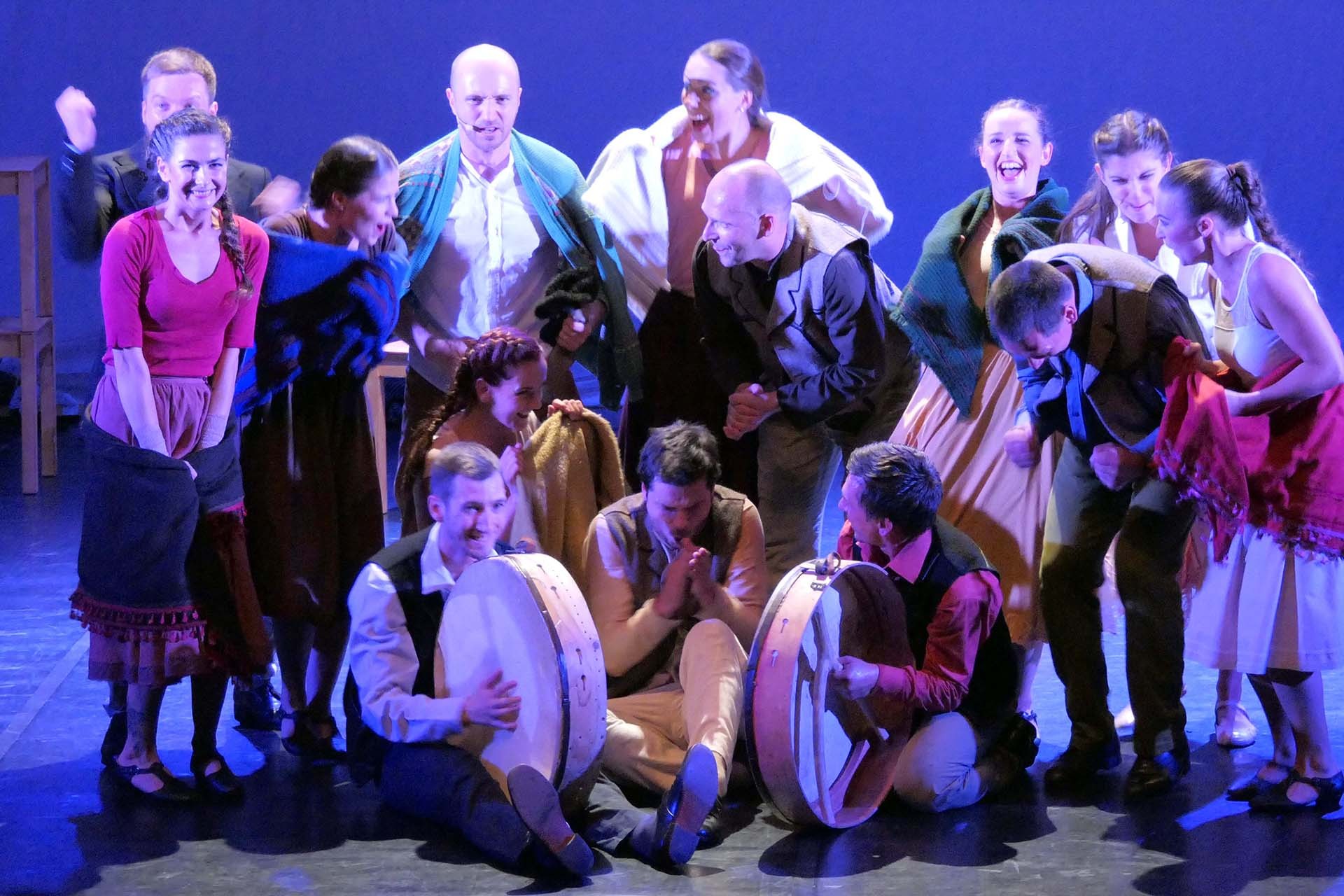 A Kárpát-medence gazdag folklórkincséből táplálkozó előadás bártan alkalmazta a mai költők verseit is (túlnyomó részt Szabó T. Anna és Kukorelly Endre gyermekeknek szánt költeményeire alapoz, amelyeket Kiss Ferenc és Lázár Zsigmond zenésítettek meg). Évszakokra bontották a produkciót. Az egyes fejezetek évszakaiban találtunk egy-egy ismert népszokást (pl. Luca széke, kiszebábú, téltemetés). Az összhangot vers, ritmus, zene és tánc kapcsolatában találtuk meg. A koreográfusi feladatokra a Harangozó Gyula-díjas táncospárt, Appelshoffer Jánost és Rémi Tündét kérte fel a rendezőnő. A narrátor két felnőtt volt, akik egy kislány és egy kisfiú lelkületével beszéltek. Újra gyermekké lettünk egy bő órára. A vidám hangulatot az interakció okozta, átjött az a szeretetteljes munkafolyamat, amely a próbákat jellemezhette. A táncosok, színészek ki-kiszöktek a színpadról, és hol a feloldódó kisgyermekeket, hol a mosolyogva szorongó felnőtteket csikizték meg, dobálták léghógolyóval, ráolvastak nyírfakéregvesszővel vagy altatódallal próbálták megnyugtatni. Elmerültünk valóban az összhatásban. Rá kellett döbbennem, hogy az igazi jó pedagógusok nem veszik el az időt a művészetek gyakorlásától, hanem inkább támogatják azt. Egészen biztos vagyok benne, hogy még a matematika is jobban menne, ha hagynánk a gyerekek lelkét kibontakozni a különböző művészeti ágakban, legyen az képzőművészet, zene vagy tánc.