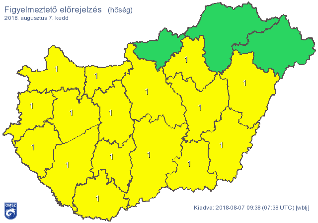 Az MTI-hez kedden reggel eljuttatott veszélyjelzésük szerint Nógrád, Borsod-Abaúj-Zemplén és Szabolcs-Szatmár-Bereg megye kivételével az egész országban elsőfokú figyelmeztetés van érvényben.