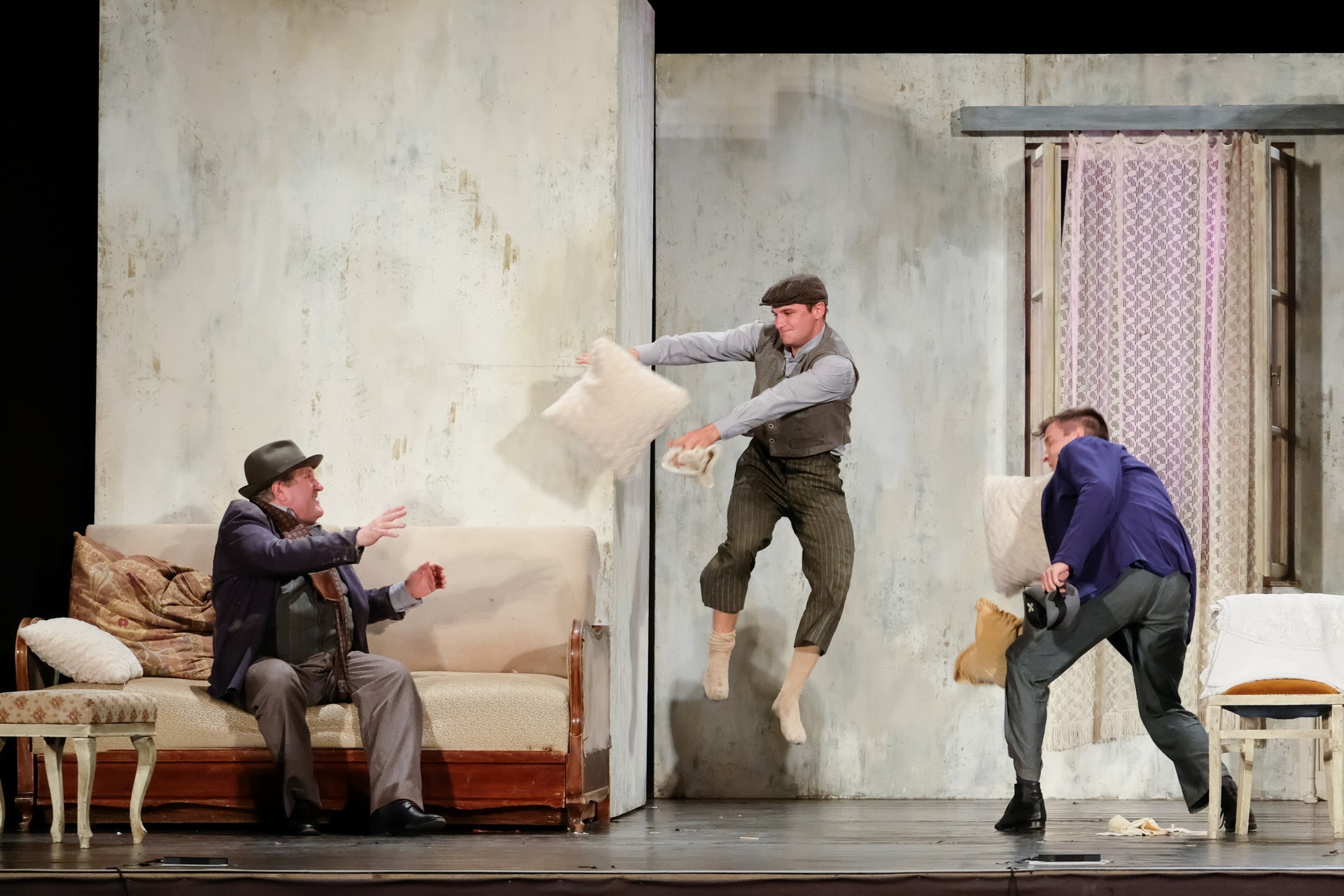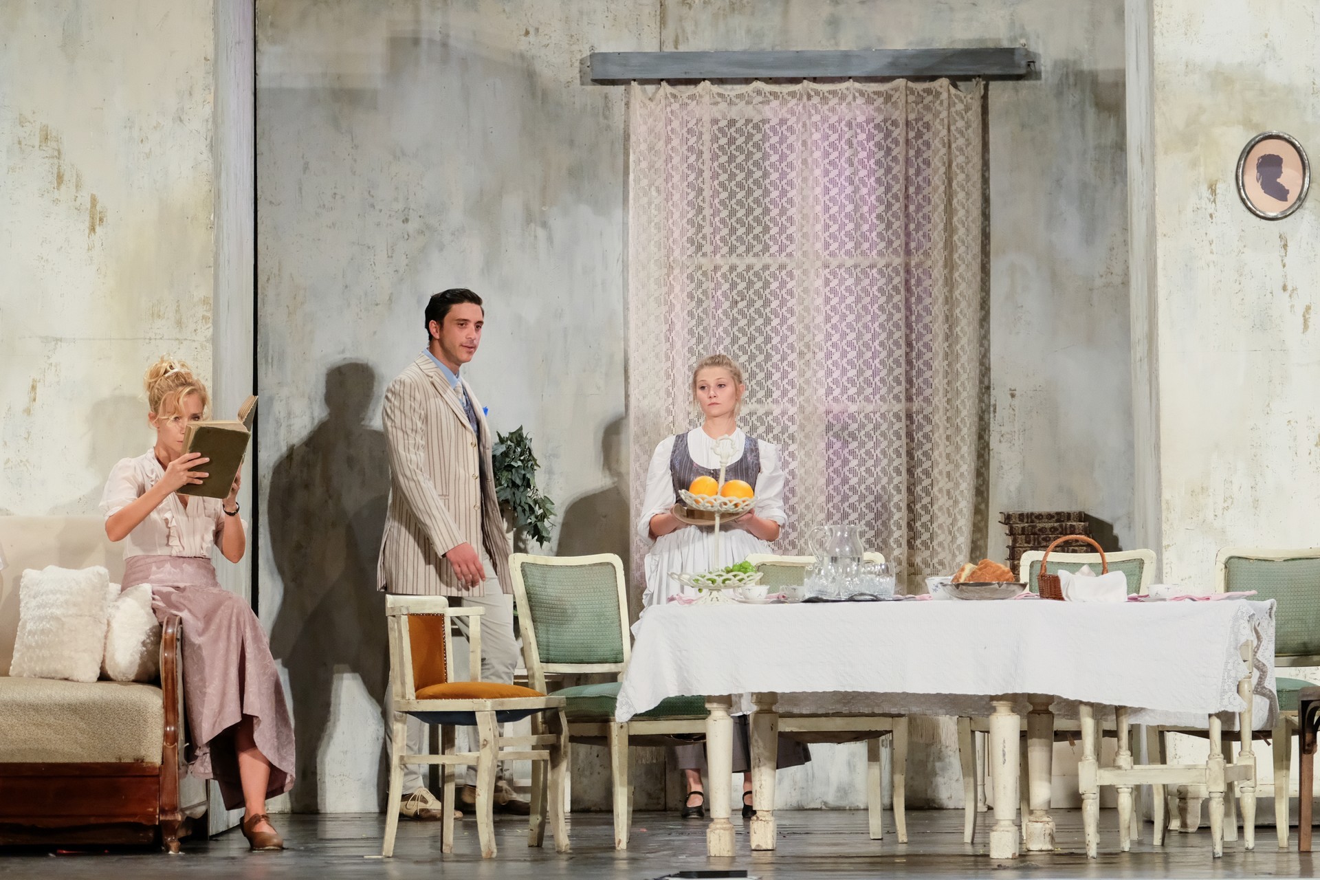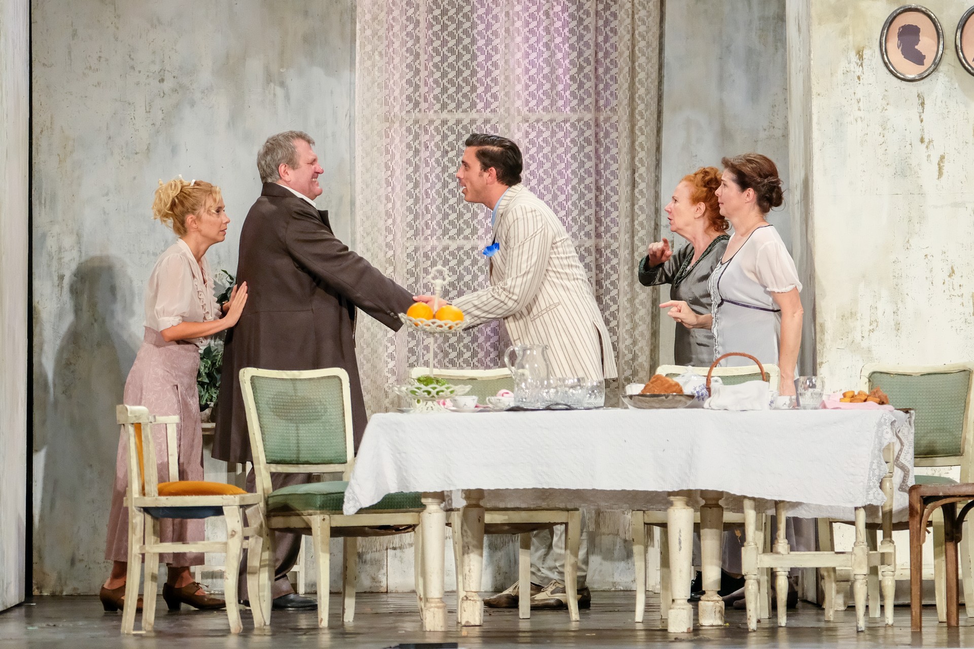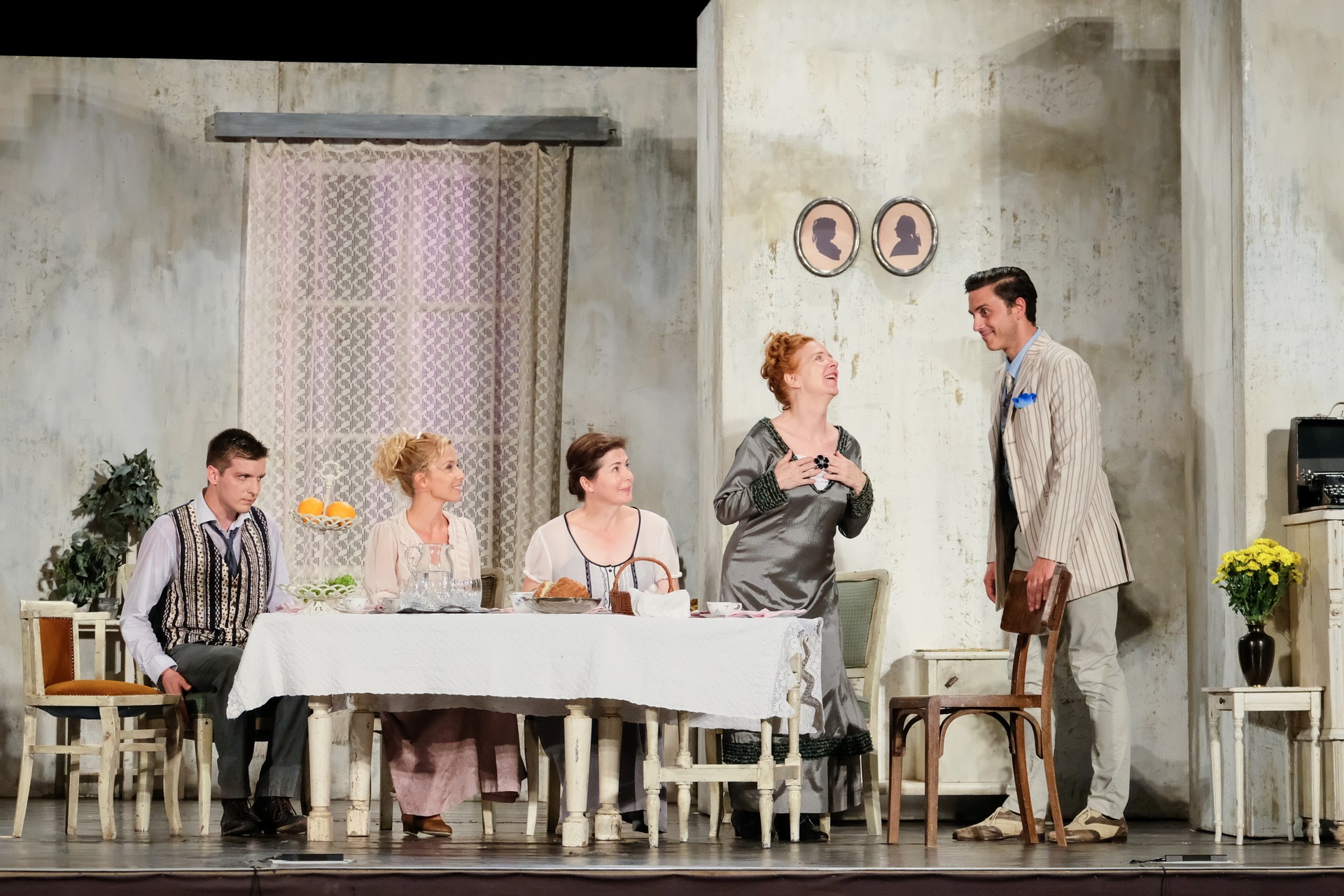 A némafilmek korszakában biztosan menő lett volna ez a rendezői koncepció, ma viszont már egészen avíttnak tűnt. Vagy pont ezt akarták nekünk sugallni? Mármint azt, hogy az 1900-as évek elején ilyen volt a menő színház, s hogy az első világháború után még nagyon jót szórakoztak egyesek a felszínes poénokon. Bizonyára így volt. Ilyen megközelítésben Novák Eszter történelmi hűséggel csinálta meg az első felvonás burleszkjét, meg ennek a folytatását, amiben a dolgokat valamennyire azért sikerült a helyükre tennie. Ám a komédia ennek ellenére is szétesett. Mélyen elgondolkodtató, vajon melyik rétegről gondolták azt, hogy igényt tart ma még az ilyen jellegű színjátékra? És elhiszi, hogy százhúsz év alatt az emberiség semmit sem változott, csak külsőleg.