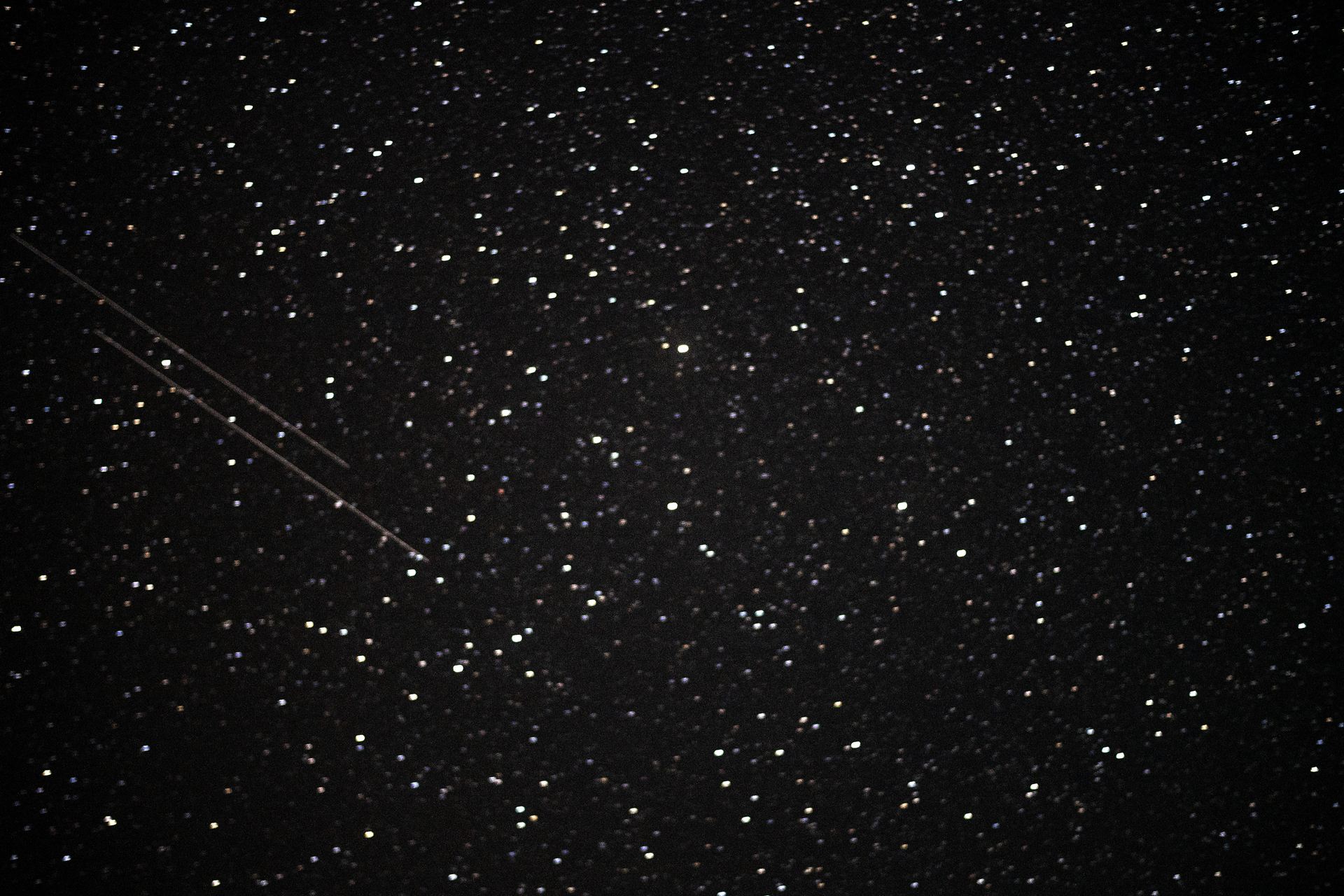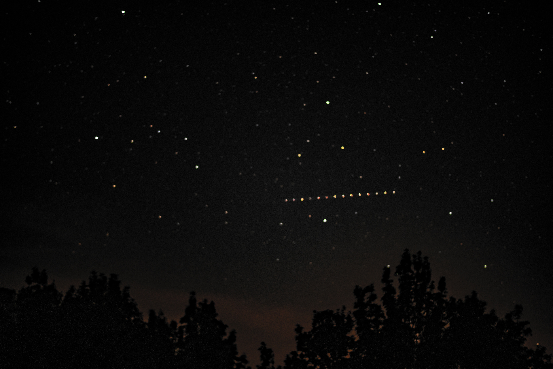 ez a sok pont vonalba rendezve csak egy repülőgép volt az esti égbolton