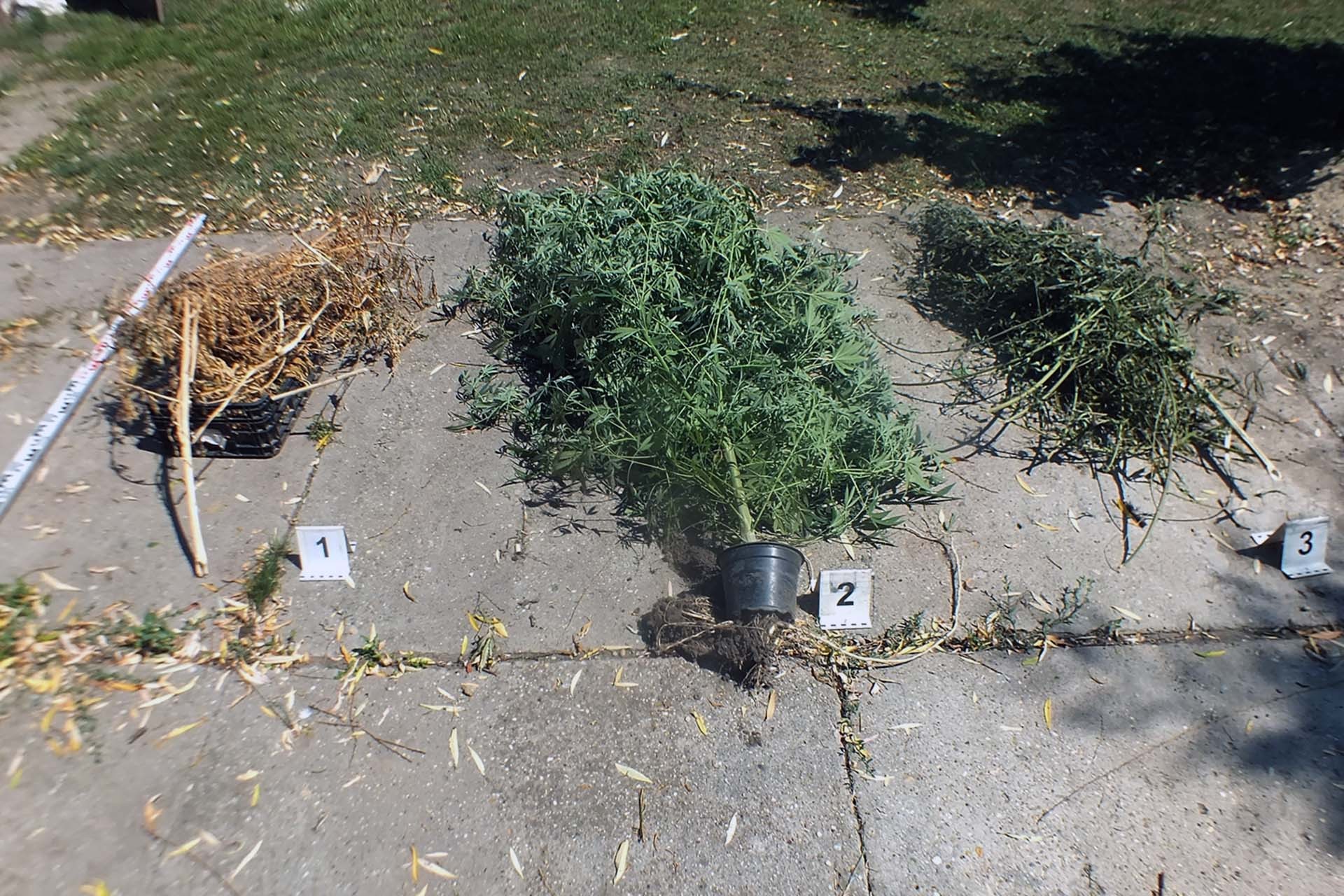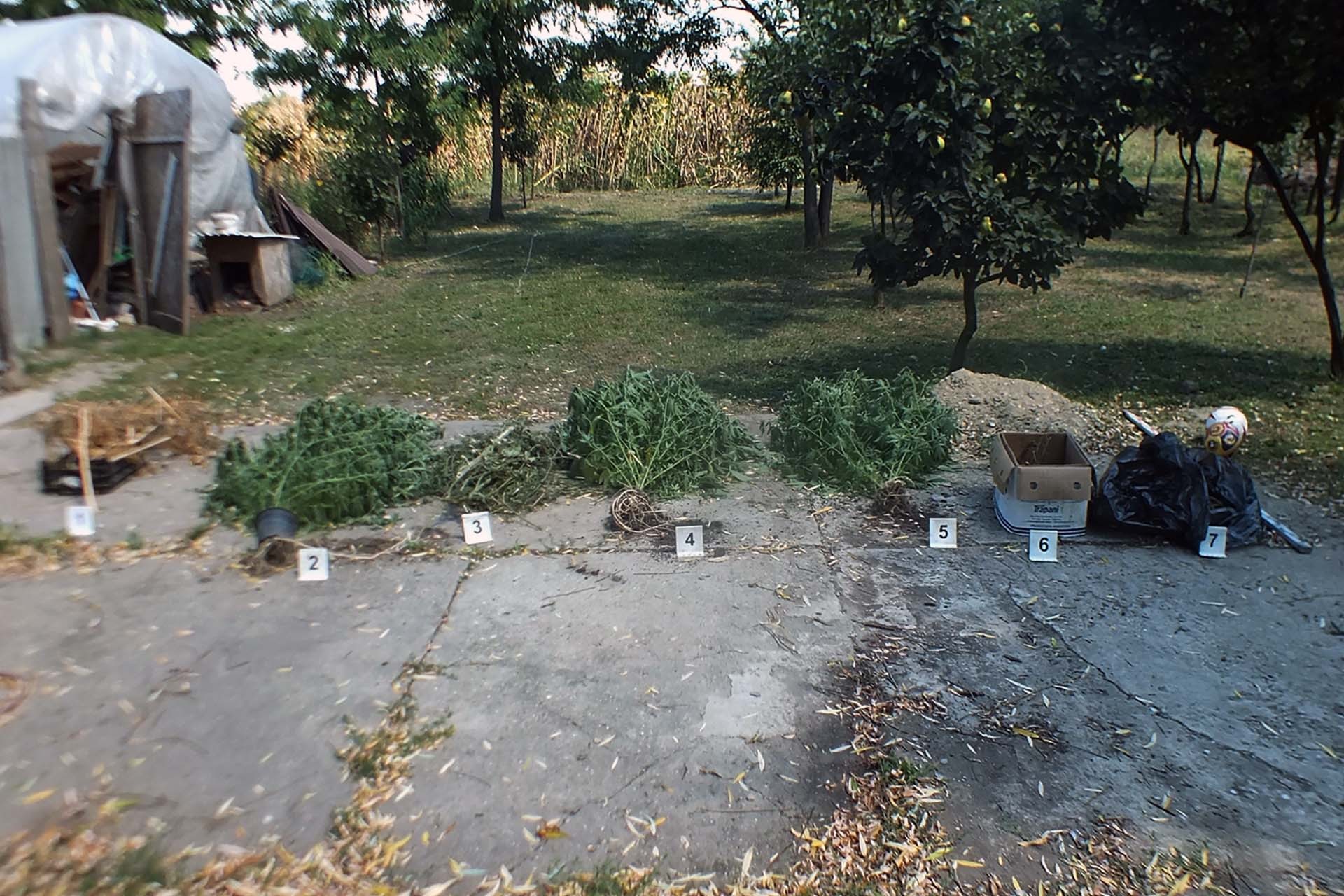 Az egyenruhások a házhoz tartozó, fóliából kialakított tárolóban és a kertben, a kukoricák között is találtak élő kendert. Emellett a rendőrök szárított növényeket, növényi törmeléket is találtak, azokat a férfi műanyag rekeszekben, illetve kartondobozokban tárolta.