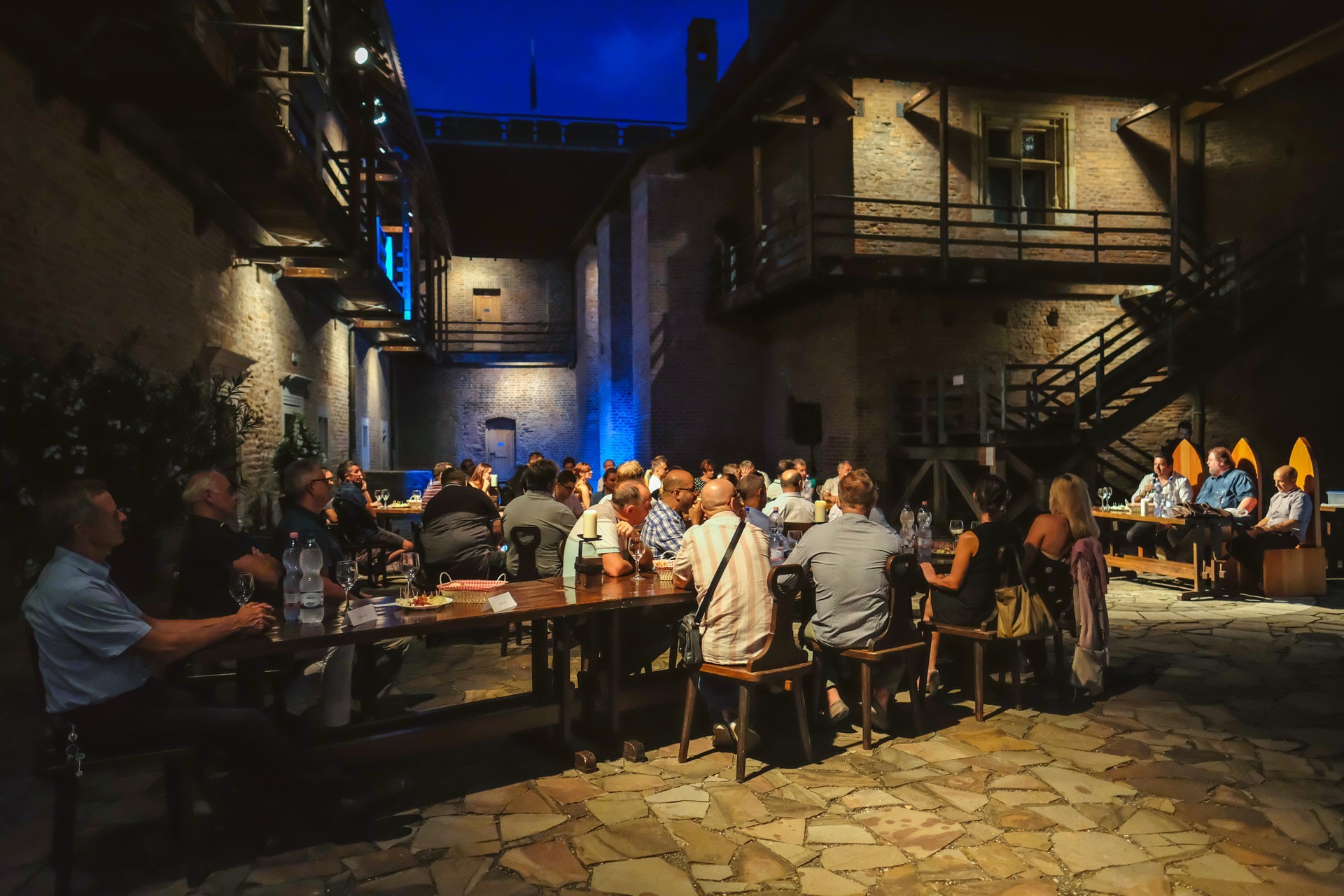 Ám nemcsak szociológiai és történelmi leckében lehetett részünk a gyulai vár udvarán: a finom borokhoz finom jelzőket is adagoltak nekünk nagy-nagy eleganciával. Kiderült, hogy nemcsak a nedűink számítottak egykoron világklasszisnak (valamikor az előkelő harmadik helyen álltunk minőségi termékeinkkel, ma a negyvenediken), hanem abban is páratlanok vagyunk, ahogyan a francia furmintot fenséges jelzőkkel futtatjuk fel. Merthogy a furmint, ami magyarul egyszerűen csak szigeti, nálunk a királyok bora, no meg a bölcsességé is.