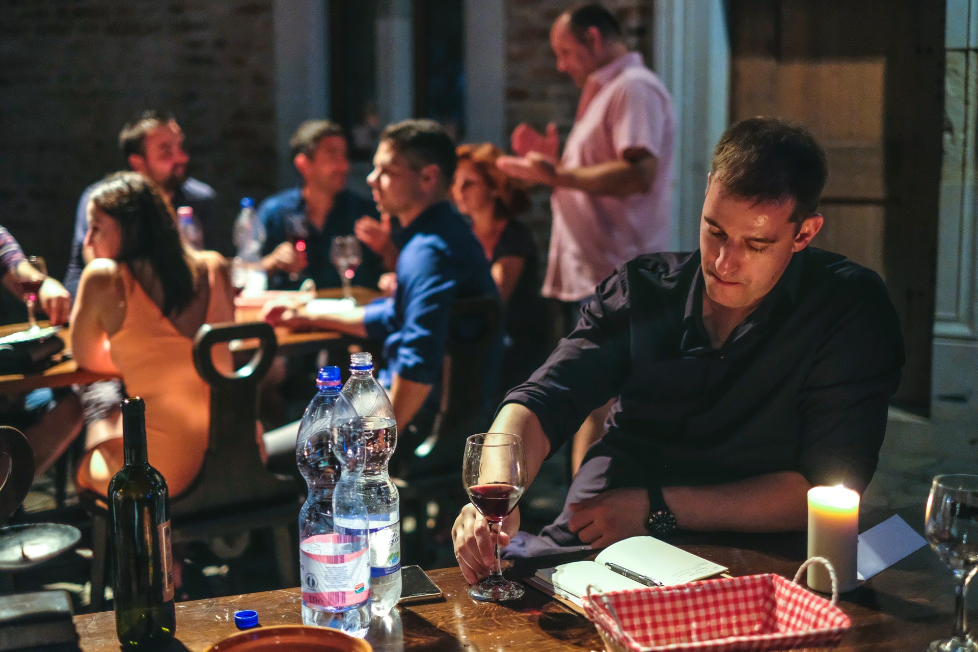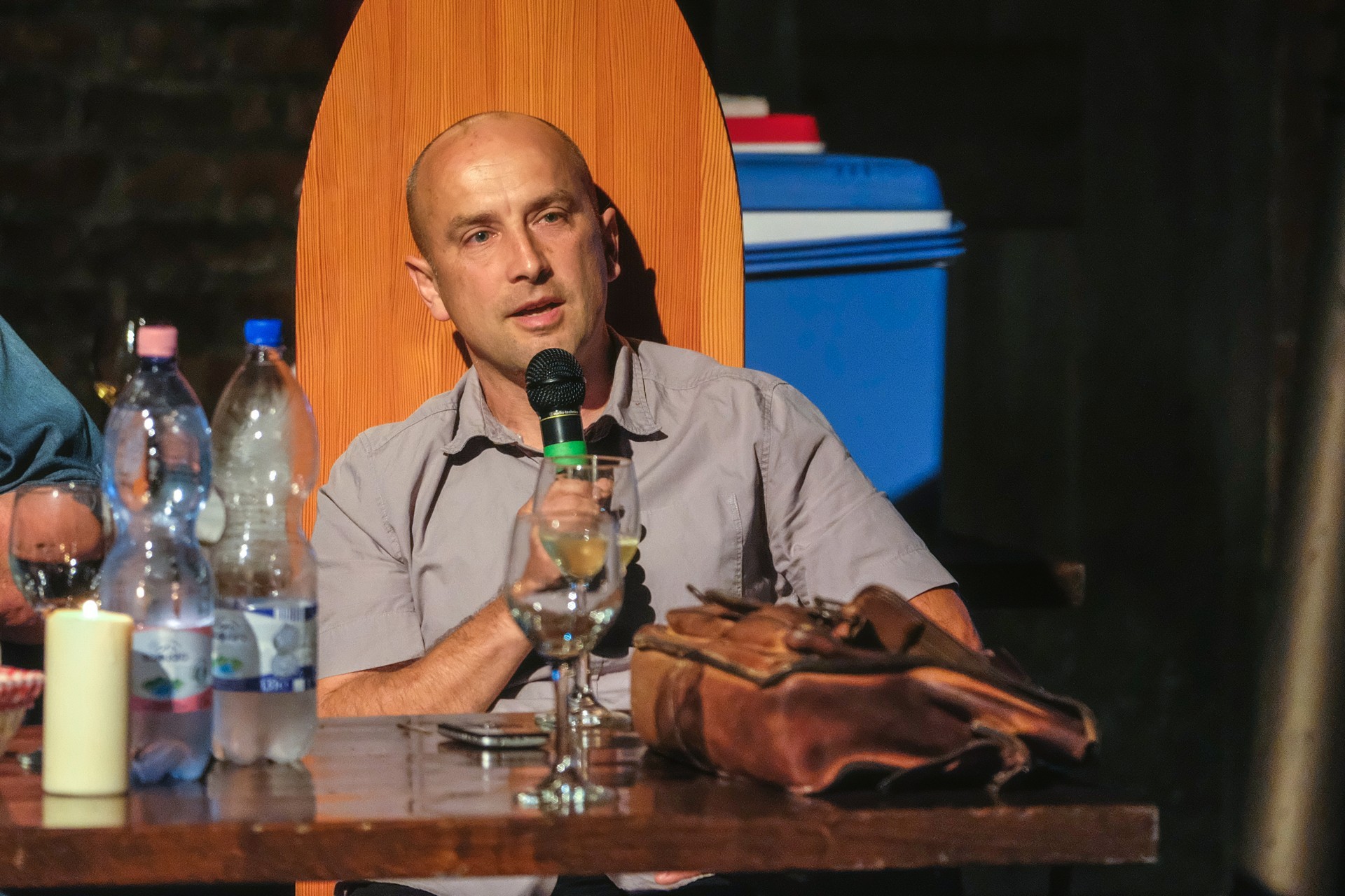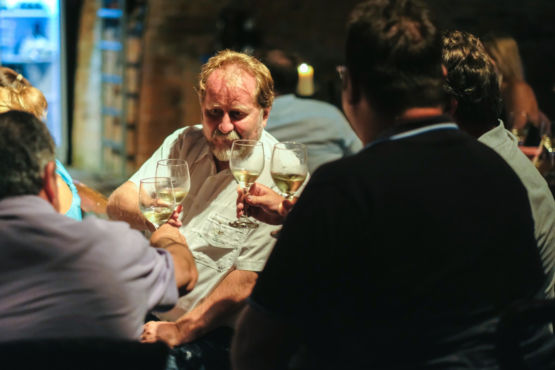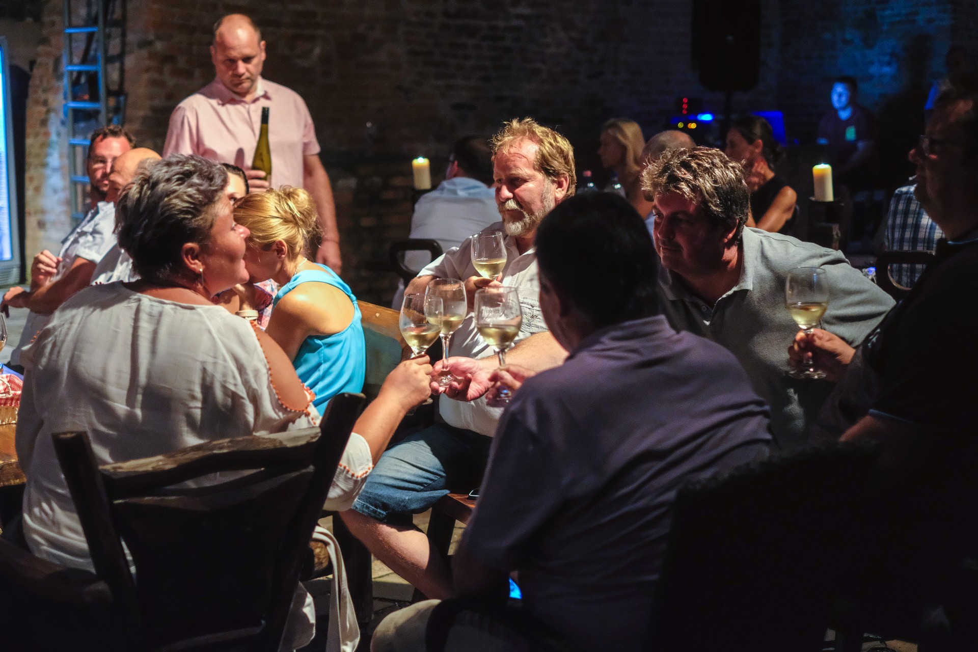 Ez lehetett az oka annak, hogy indulásból három szigetit hasonlíthatott össze az egybegyűlt sereg, persze nem egyszerre, hanem szépen egymás után, pohárról pohárra, hogy aztán kapjon egy kis ízelítőt a cseresznyefavirág színű mézes-fehérből, amit igencsak nehezen tudott beazonosítani, majd egy kis légies, kecses kadarkát, amelytől kivétel nélkül odalett a teljes italozó társaság, egy vörös kékburgundit, vagyis pinot noirt, egy még vörösebb és még tüzesebb sauvignont, és a legvégén egy gyógyfüvekkel megvadított ürmöst, hogy tisztuljon is, ami után úgy döntött, előröl kezdi a kört, és haza se megy reggelig.