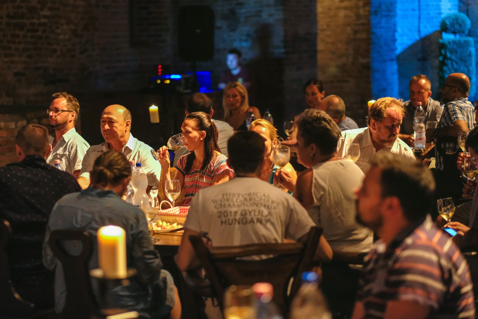 Az italokat, de főként a furmintot a gyulai végvári védők egészségére ihattuk meg, miközben Maurer Oszkárt és Sagmeister Ernőt is megismerhettük, megtudhattuk, mióta, hol, miért (hiúságból, kalandvágyból és a föld erotikus kisugárzása miatt!), mekkora területen és milyen jövőbeli tervekkel gondozzák nagy szakértelemmel szőlőföldjeiket. Elhangzott az is, hogy a felhozatalból a kadarka, vagy más szóval, ha jól emlékszem, a mosolygödröcske érte el eddig a legnagyobb nemzetközi sikert, aminek hozományaként népszerű éttermek kínálatába került be. További lehetőség a szigeti zöldben rejlik, ám ebből a gyulai borestre most nem jutott (a picit hiányoltuk, akárcsak a bakatort).