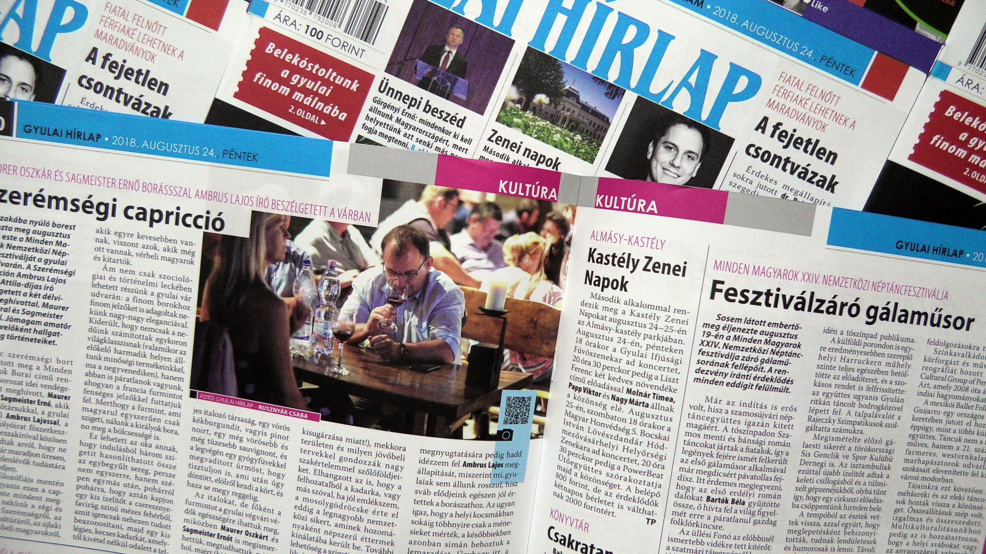A Gyulai Hírlapot saját kézbesítőink viszik el az önök által megadott lakcímre hétről hétre. Előfizetőink már szerdán este kézbe vehetik és olvashatják a friss Gyulait! Az előfizetésnek más előnye is van, arról nem is beszélve, hogy előfizetve 33 forinttal olcsóbb egy lapszám. A Gyulai Hírlapra egy kerek esztendőre csupán 3500 forintért fizethet elő. Lapunk ajándéknak sem utolsó! Ha az előfizetéssel kapcsolatosan kérdése lenne, hívja Csepregi Brigittát a 06-30-627-6889-es számon.