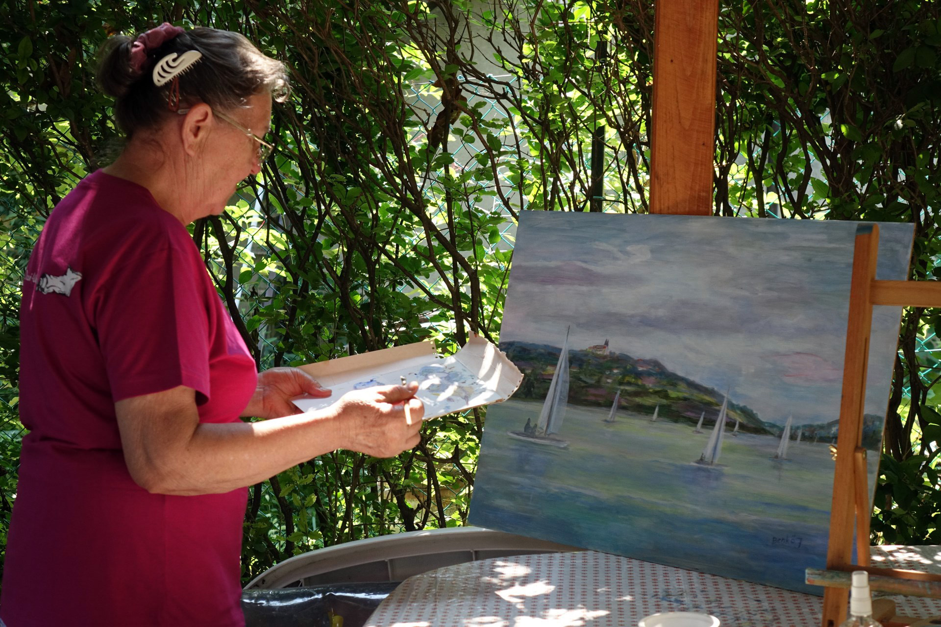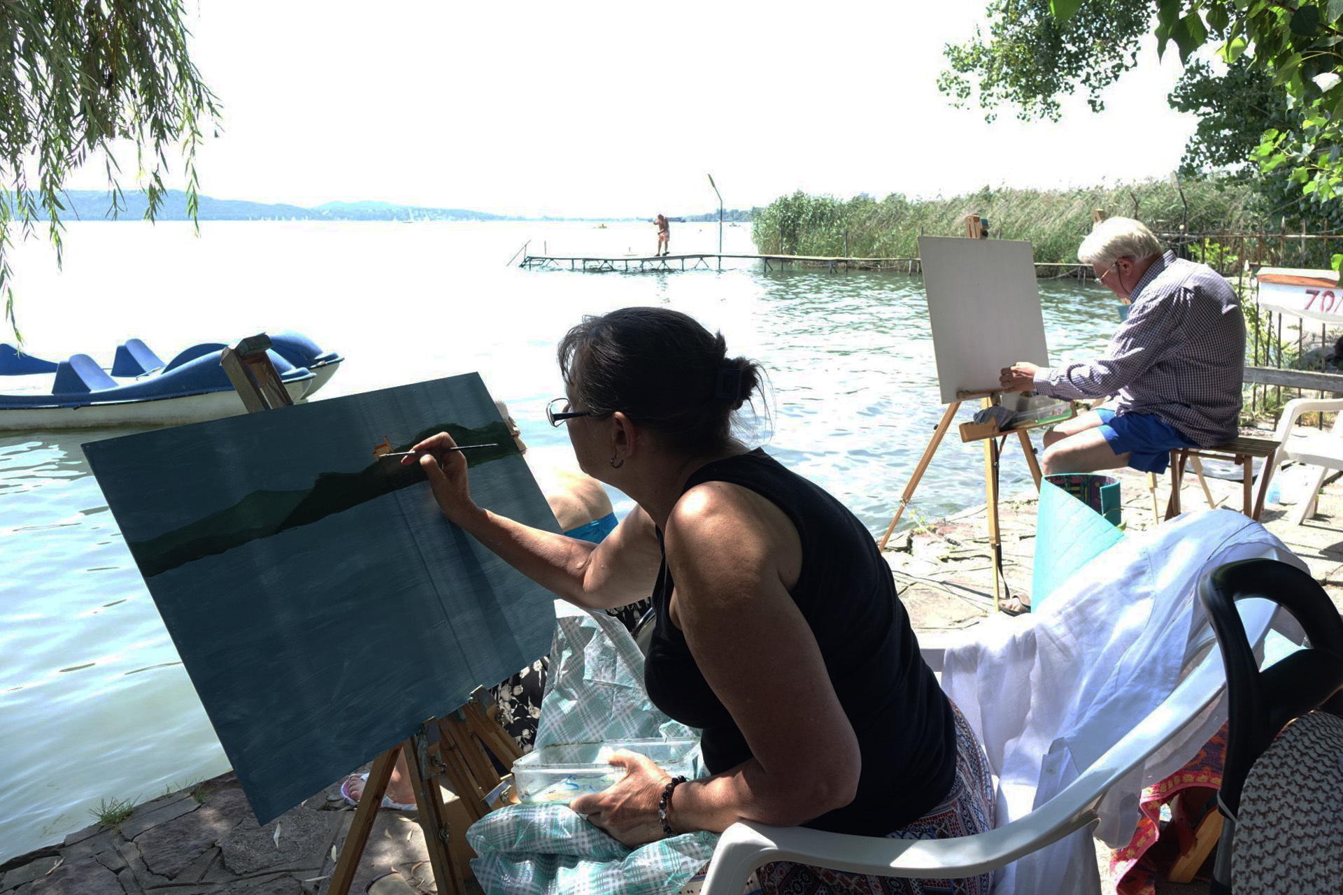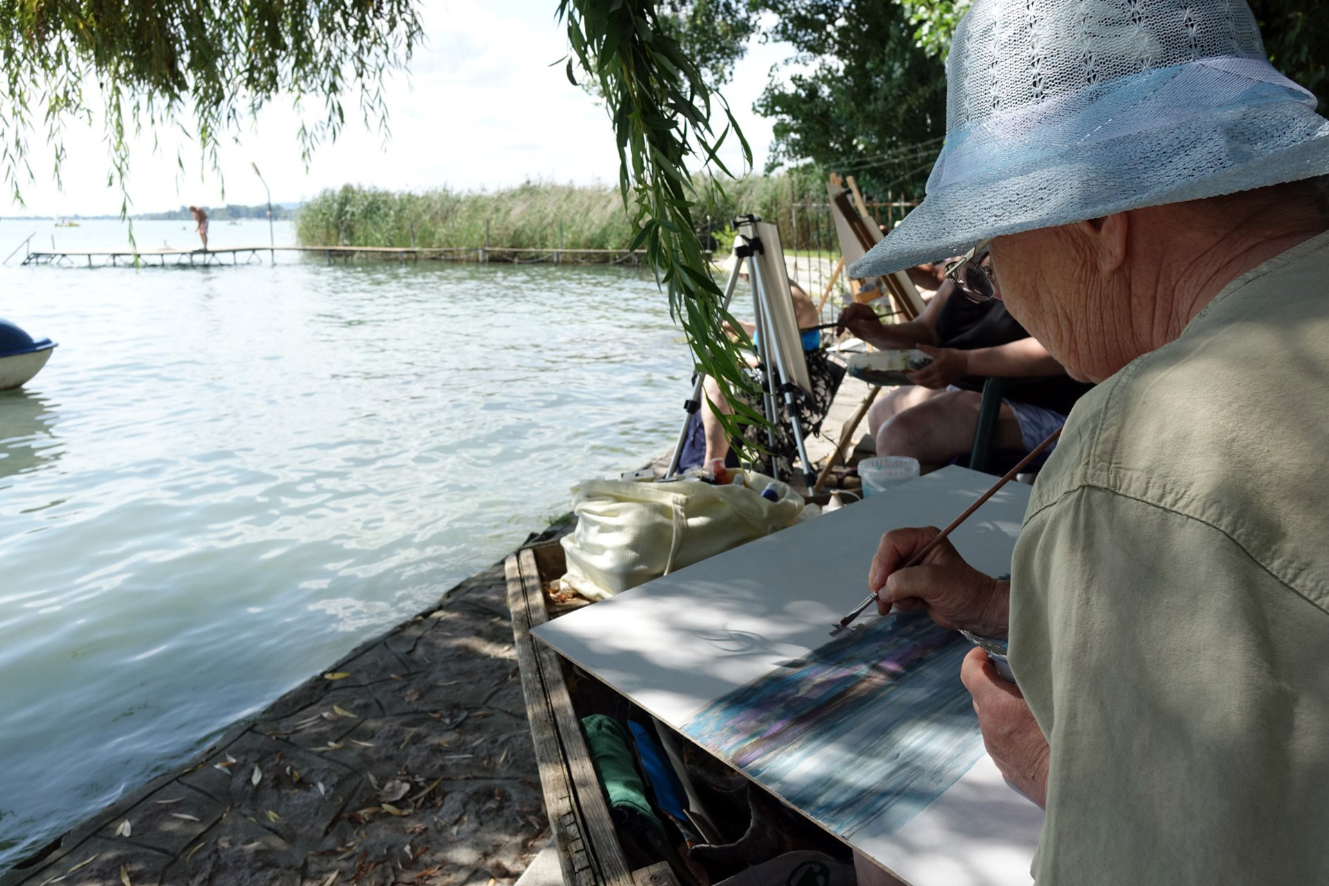 A József Dezső Amatőr Szakkör és Alkotótábor Egyesület az Emberi Erőforrások Minisztériumától nyert támogatást a balatoni útra. Az Alföldiek a nagy tó partján elnevezésű festőtáborban minden adott volt az alkotómunkához: az amatőr képzőművészek lelkesedése csakúgy, mint a festői helyszínek. Minden napra jutott vászonra vethető látvány: míg egyik nap a közeli Koloska-völgy zöld miliője, másik nap a Füredhez csatolt ősi település, Balatonarács ódon épületei jelentettek kihívást a társaságnak, és természetesen a magyar tenger azúrtól a türkizig terjedő kéksége sem maradhatott le a képekről. Béres Ildikó, Bíró Katalin, Hortobágyi Mártonné Benkő Jolán, Marosán Rózsa, Ócsai Z. László, Oláh Szabolcs, Papp Mária, Séllei-Andruska Anna, Sütő Jánosné, Szabó Anna, Tóthné Bús Anikó, Ungváriné Spiegel Julianna művészi vágyát még a tűző kánikula sem csökkenthette, legfeljebb a strandon folytatódott a képalkotás. És ha már Füreden jártak az alföldiek, látogatást tettek a Vaszary Galériában és a Jókai Mór Emlékházban is.