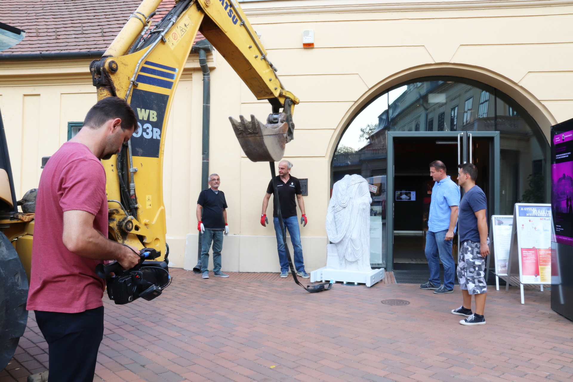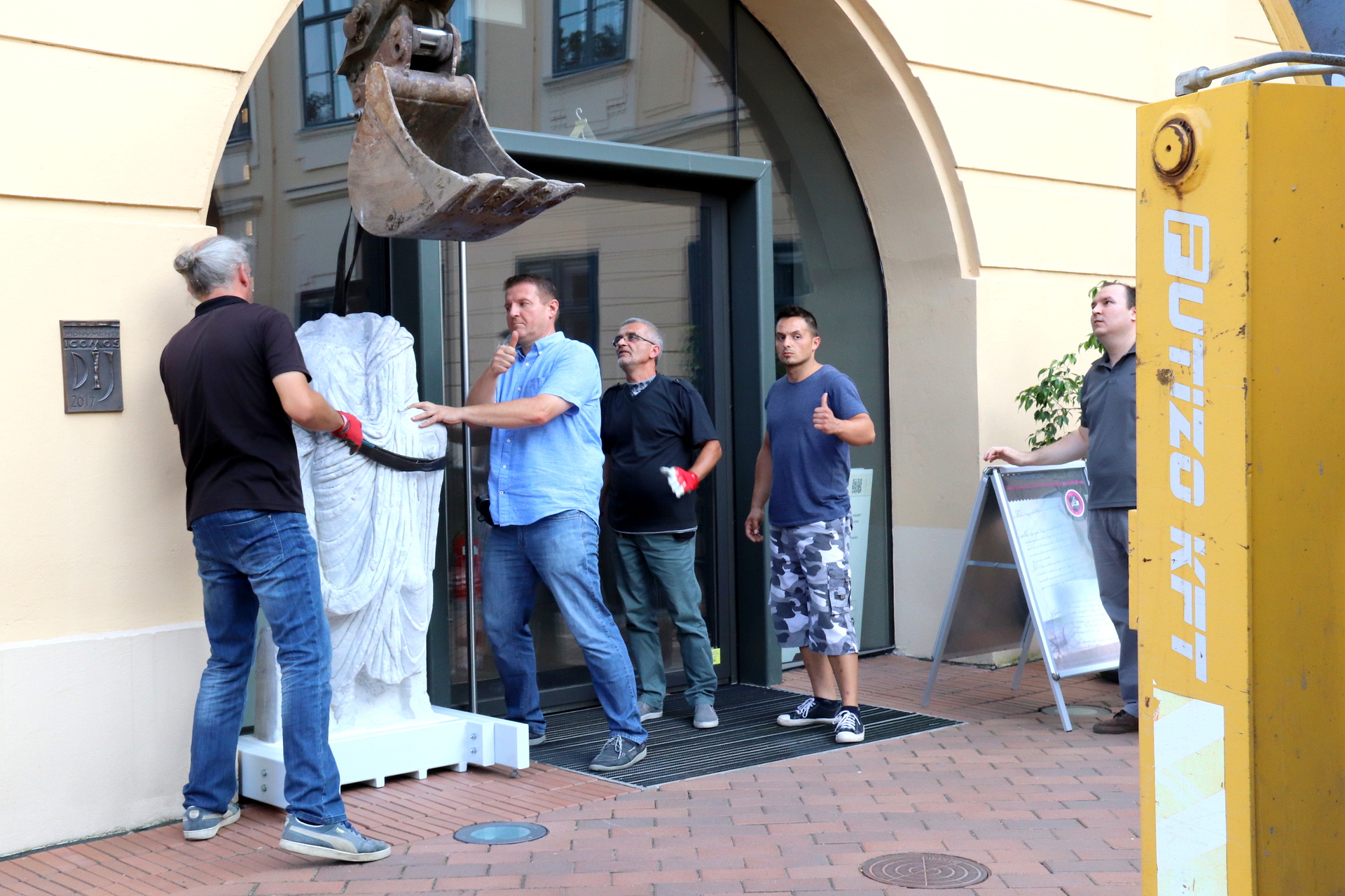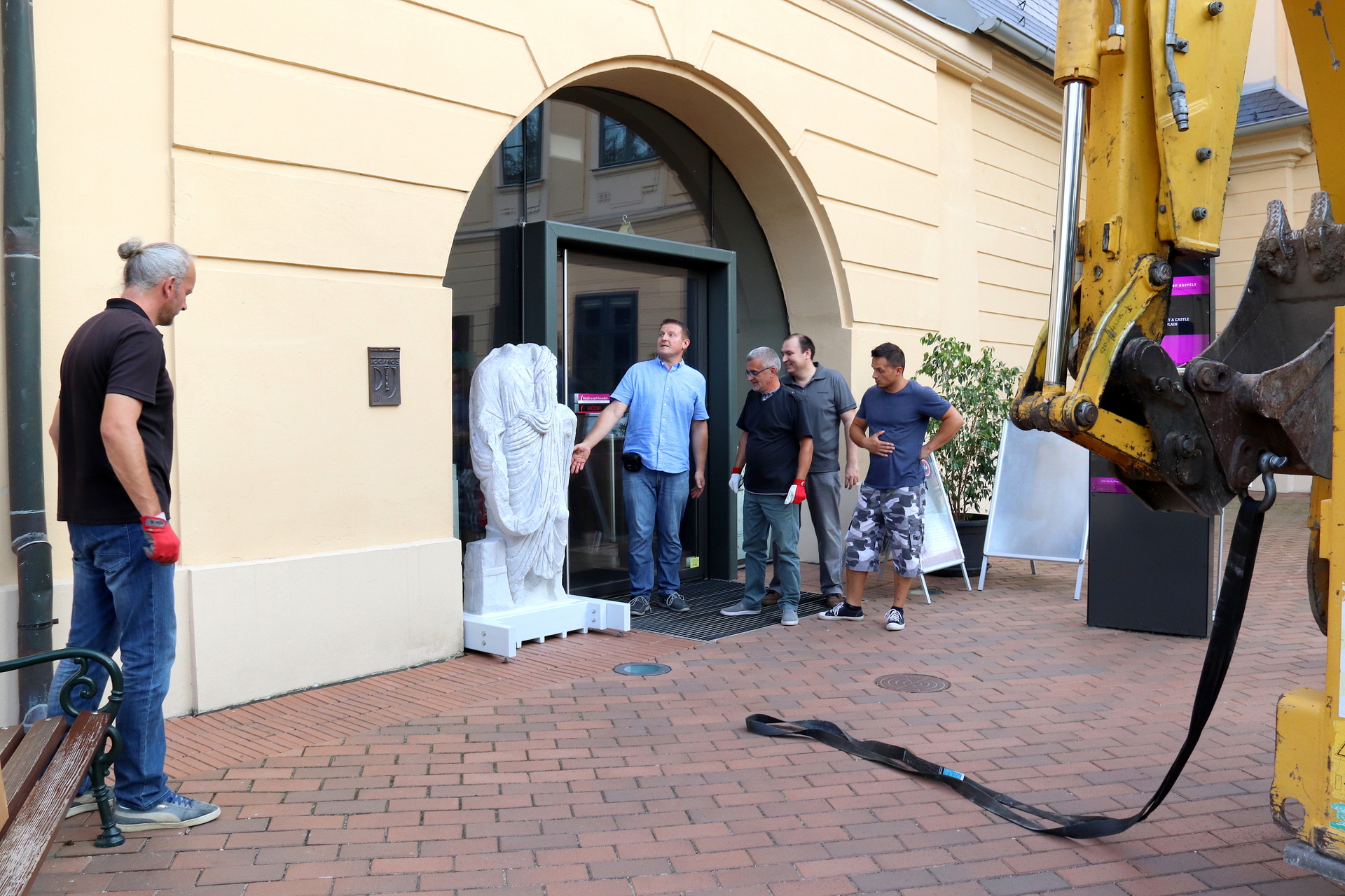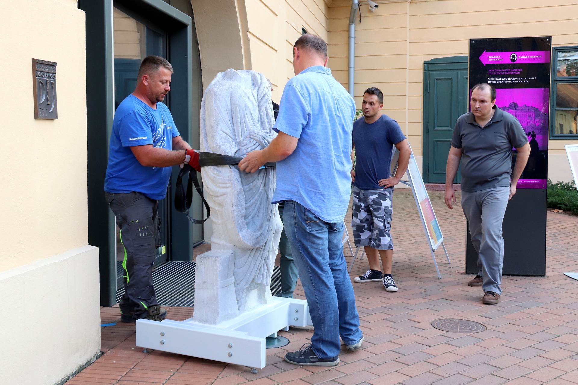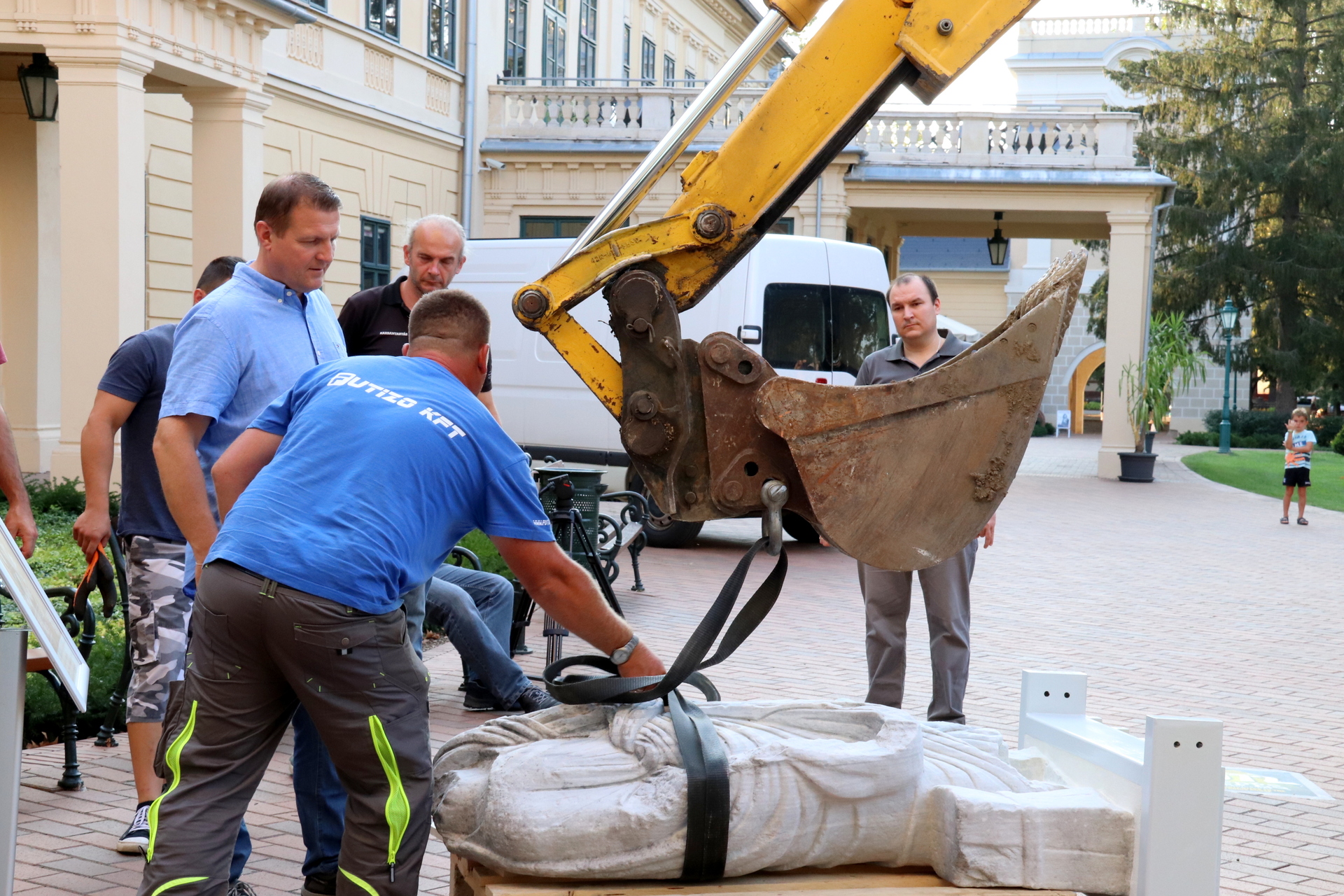Nehezen, de törés nélkül került a helyére a több száz kilós restaurált római márványszobor
