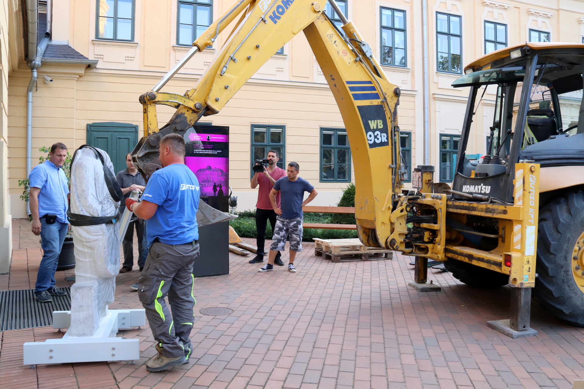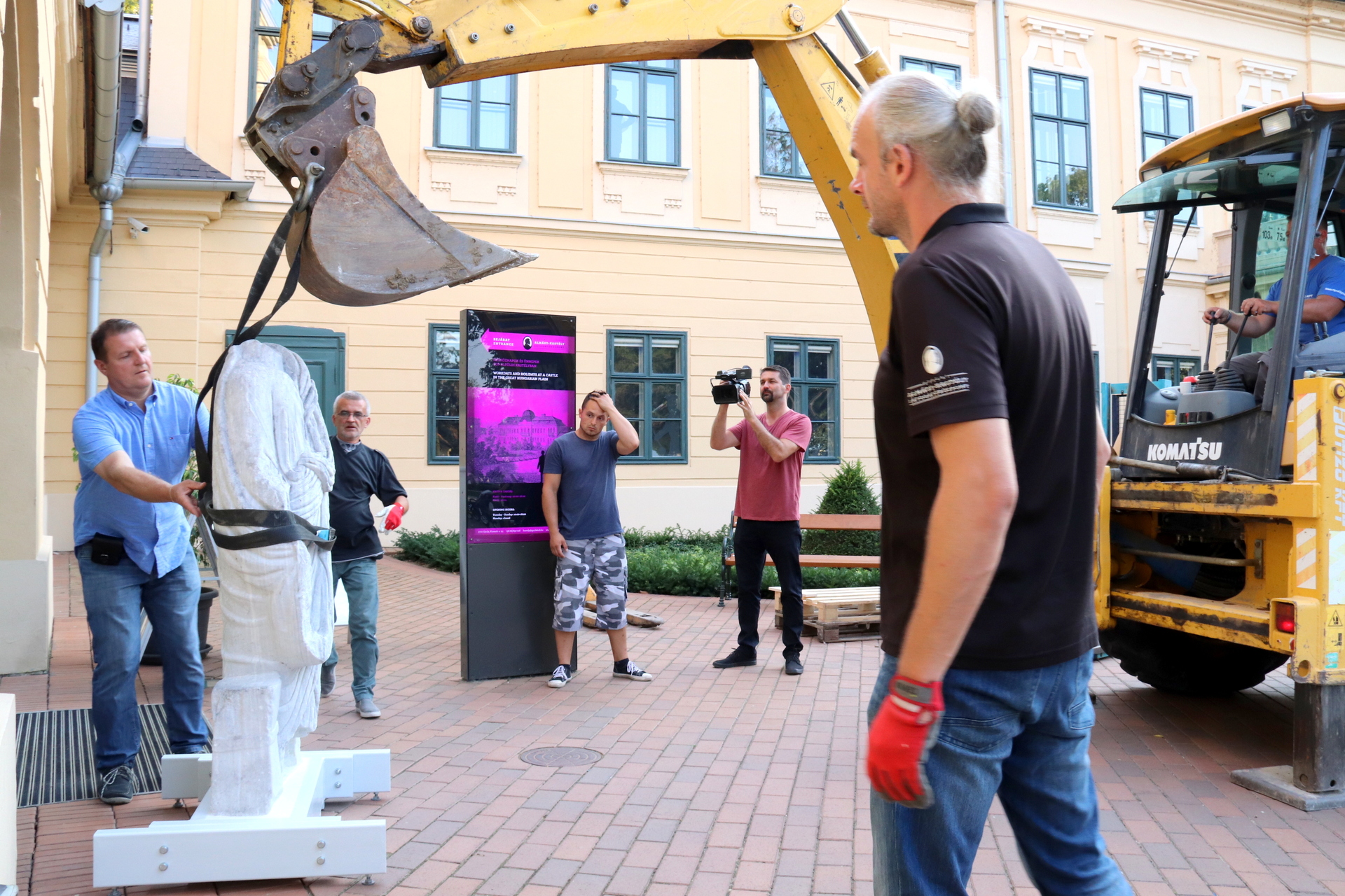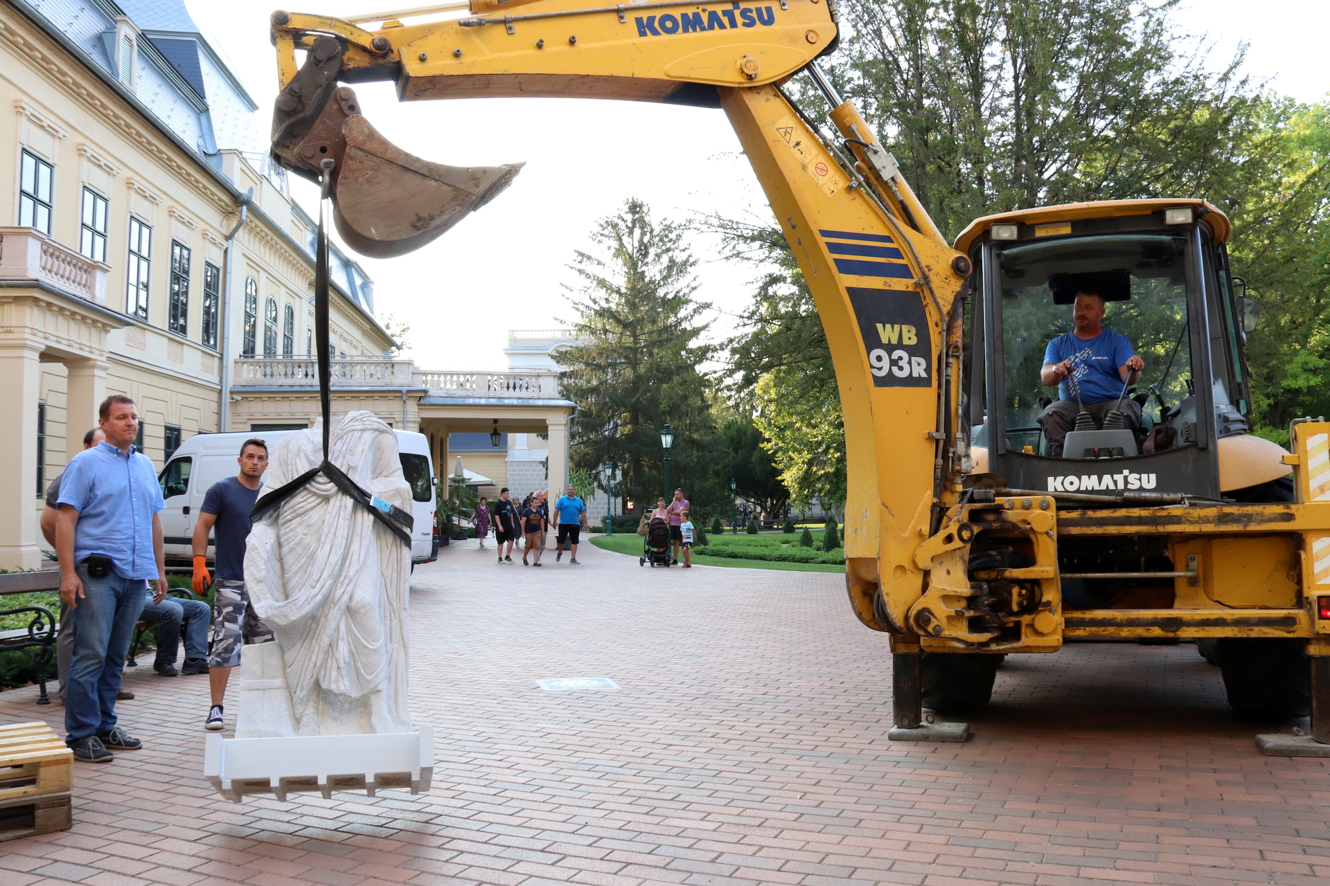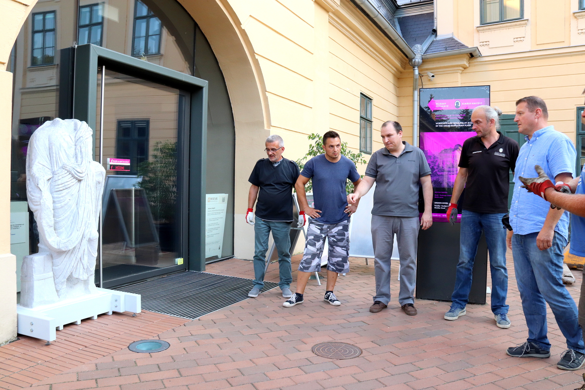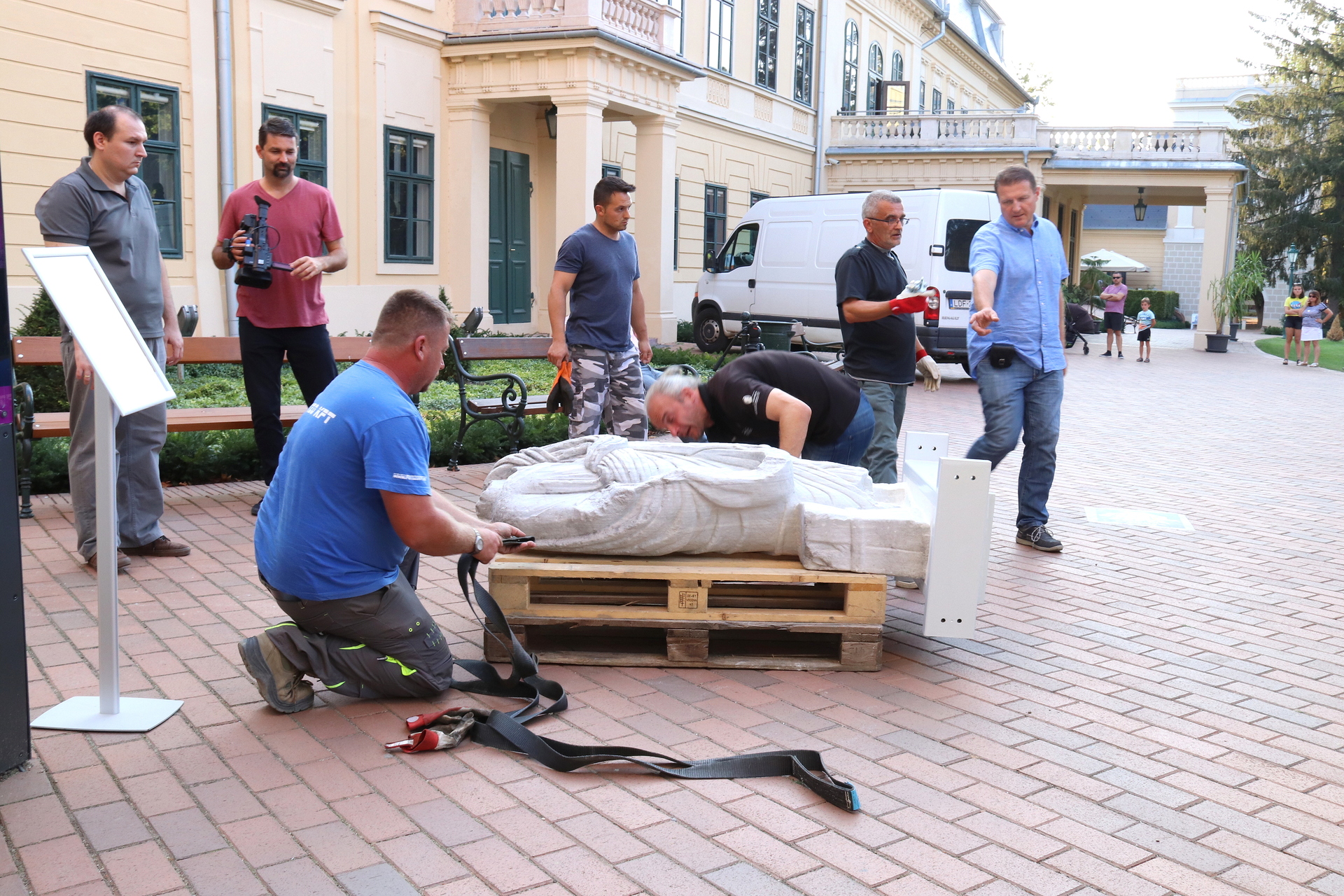 Nehezen, de törés nélkül került a helyére a több száz kilós restaurált római márványszobor