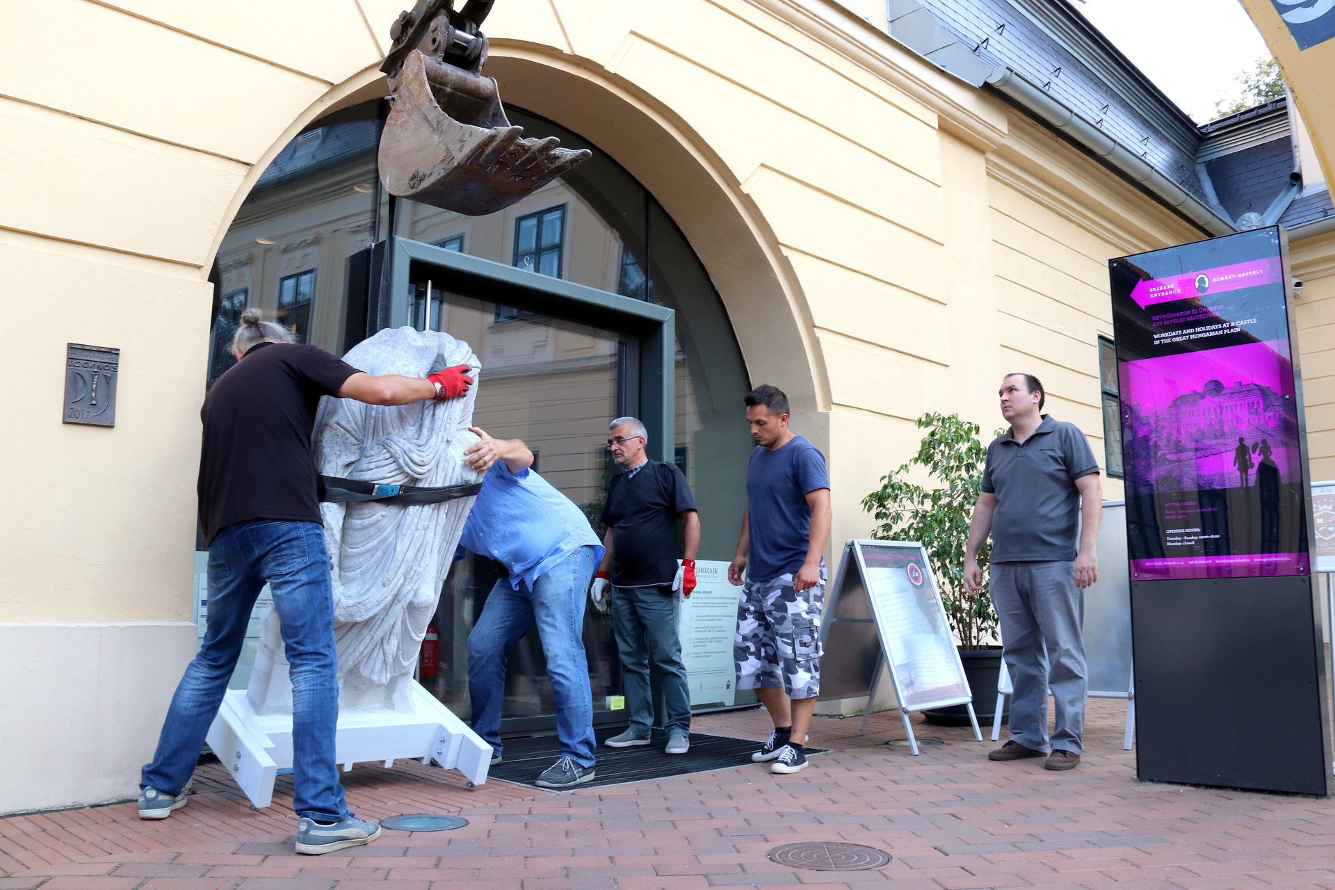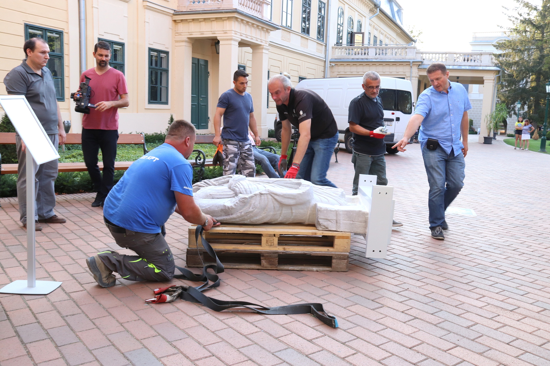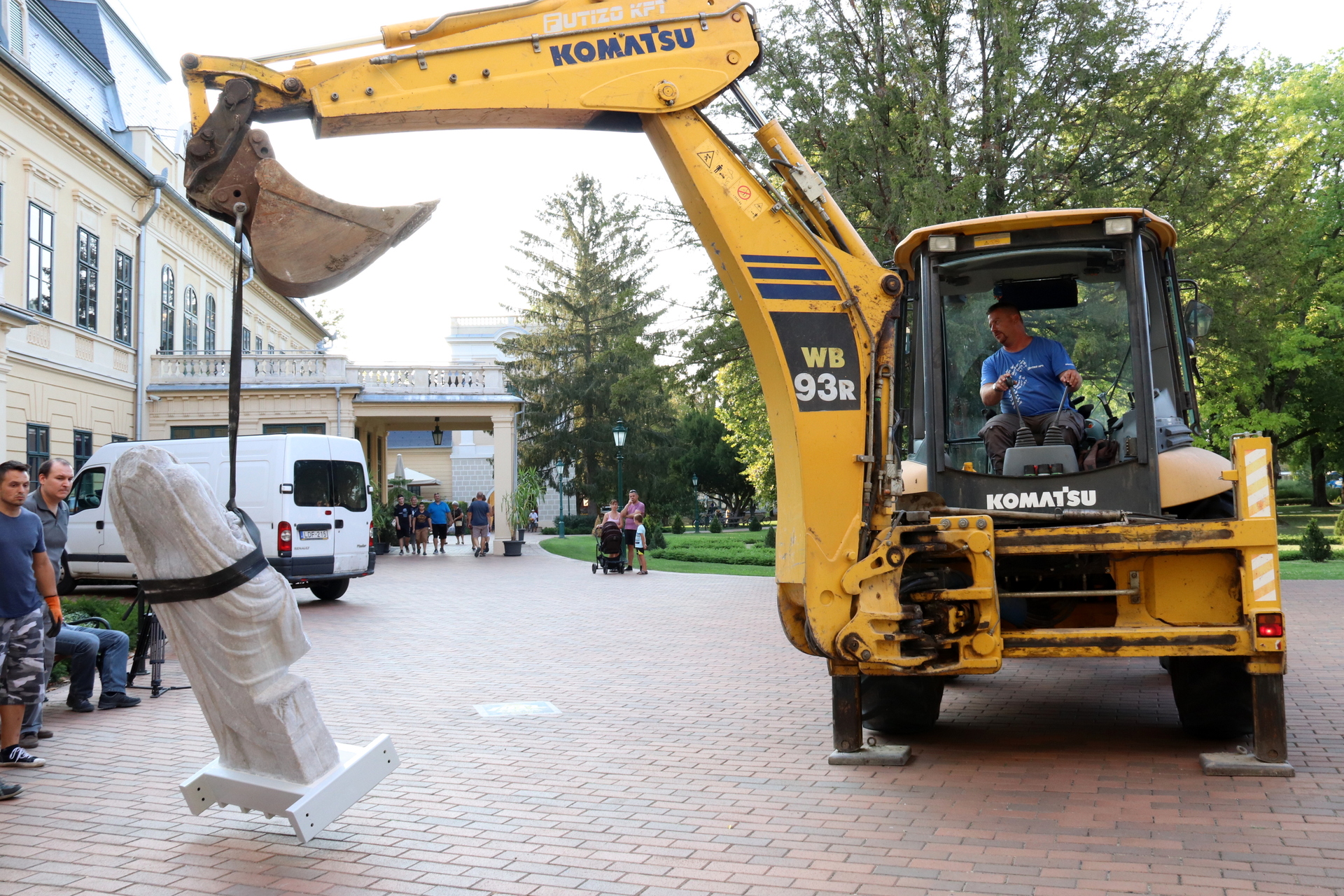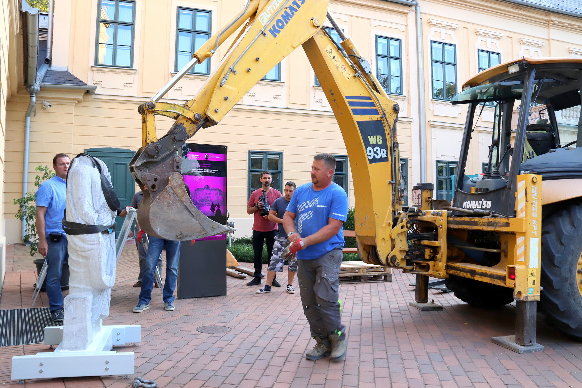 Nehezen, de törés nélkül került a helyére a több száz kilós restaurált római márványszobor