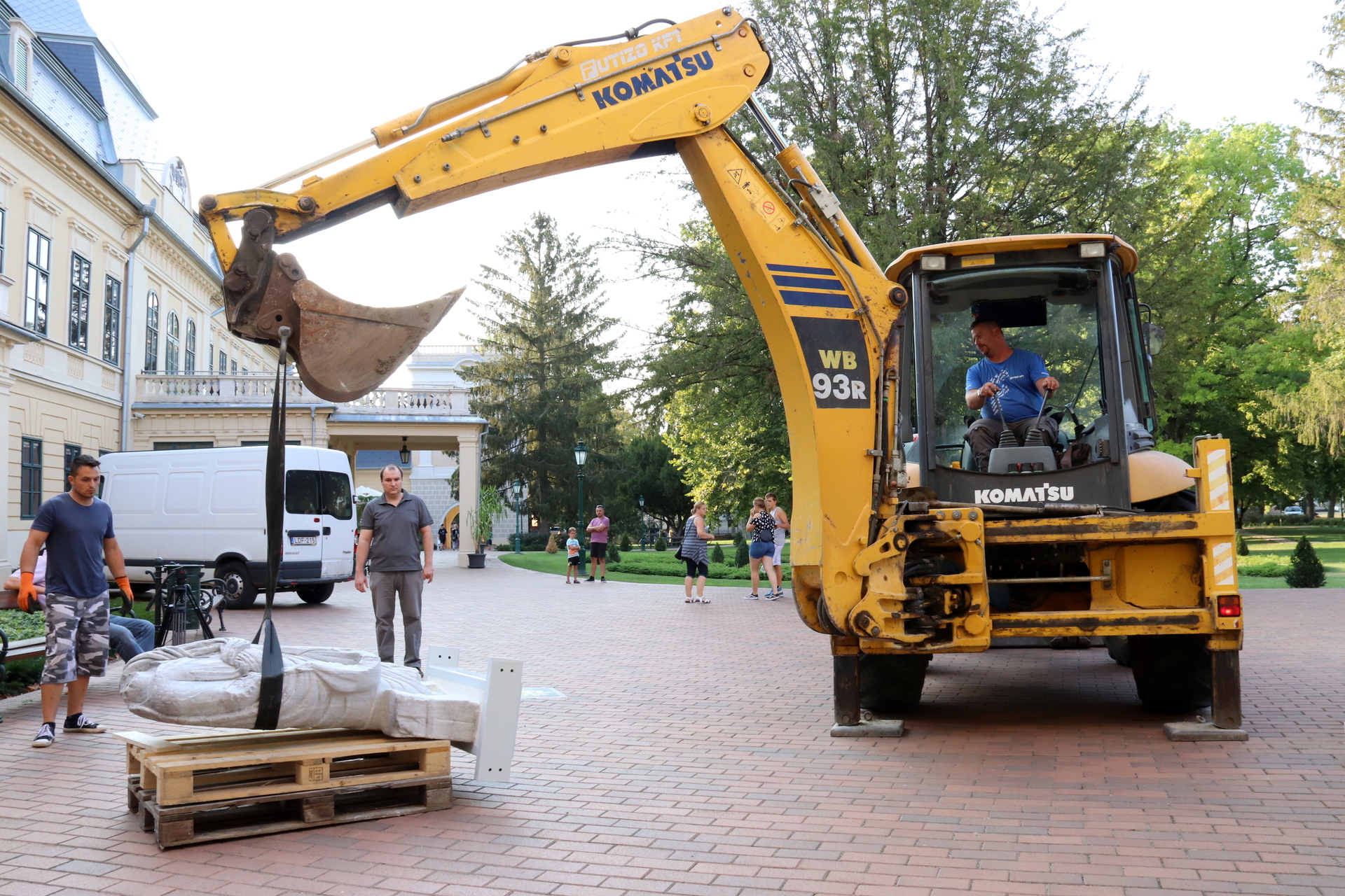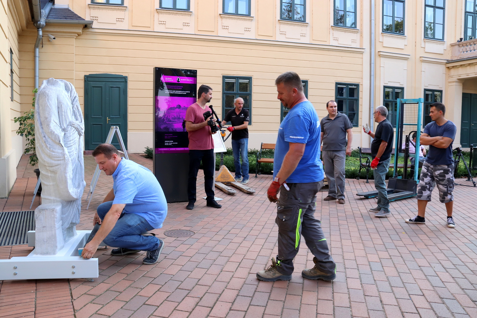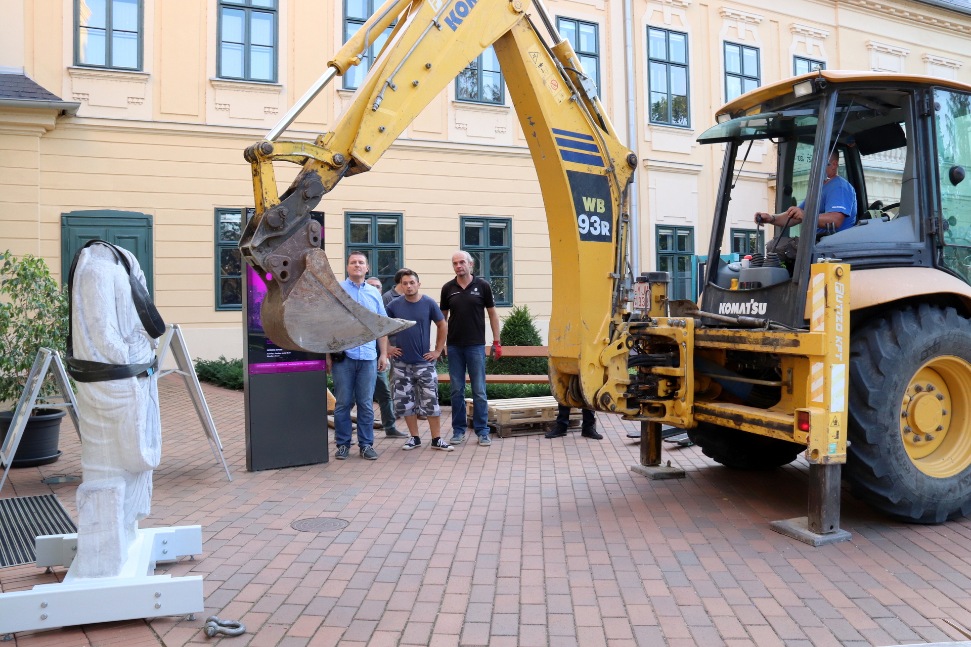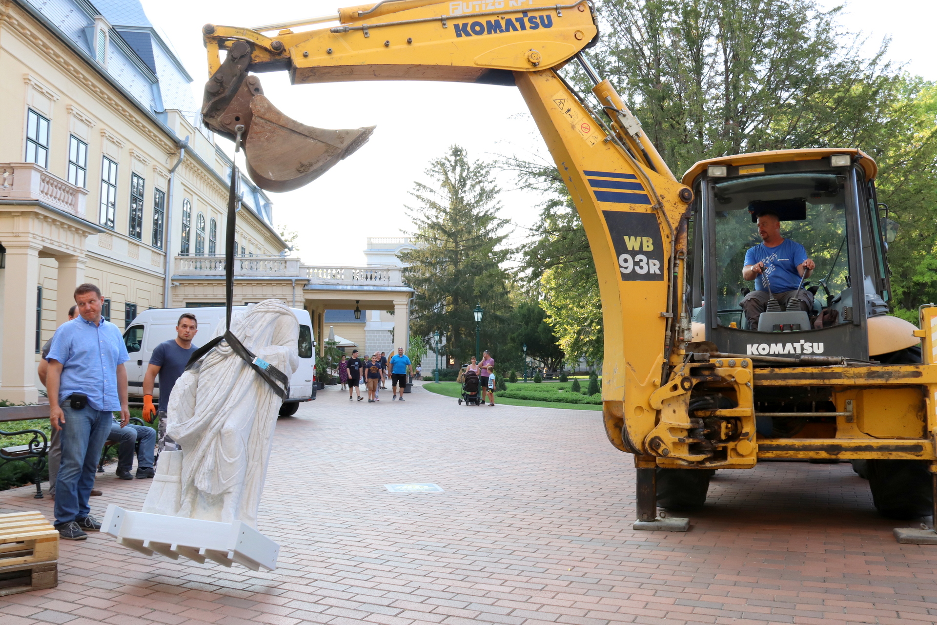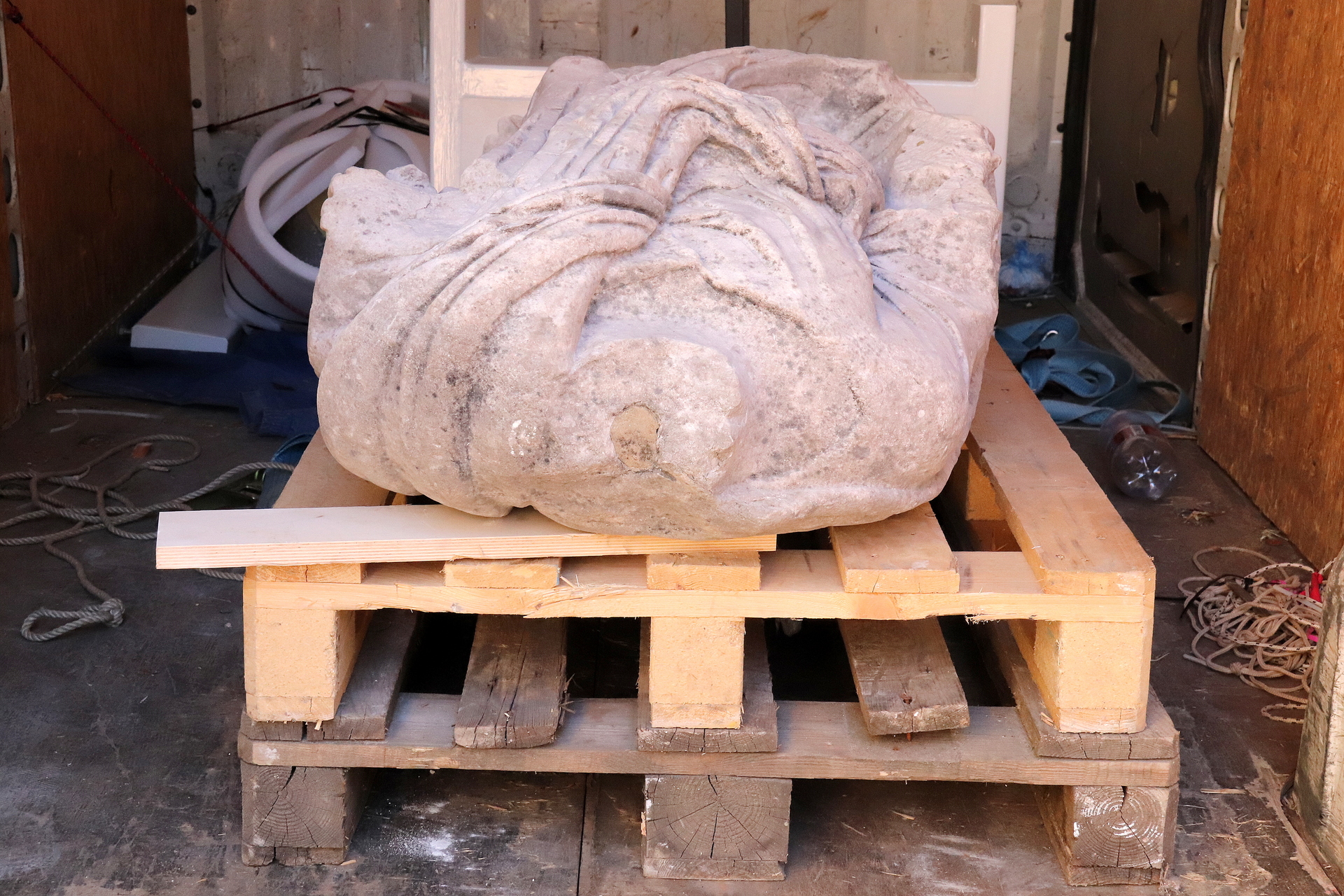 Nehezen, de törés nélkül került a helyére a több száz kilós restaurált római márványszobor