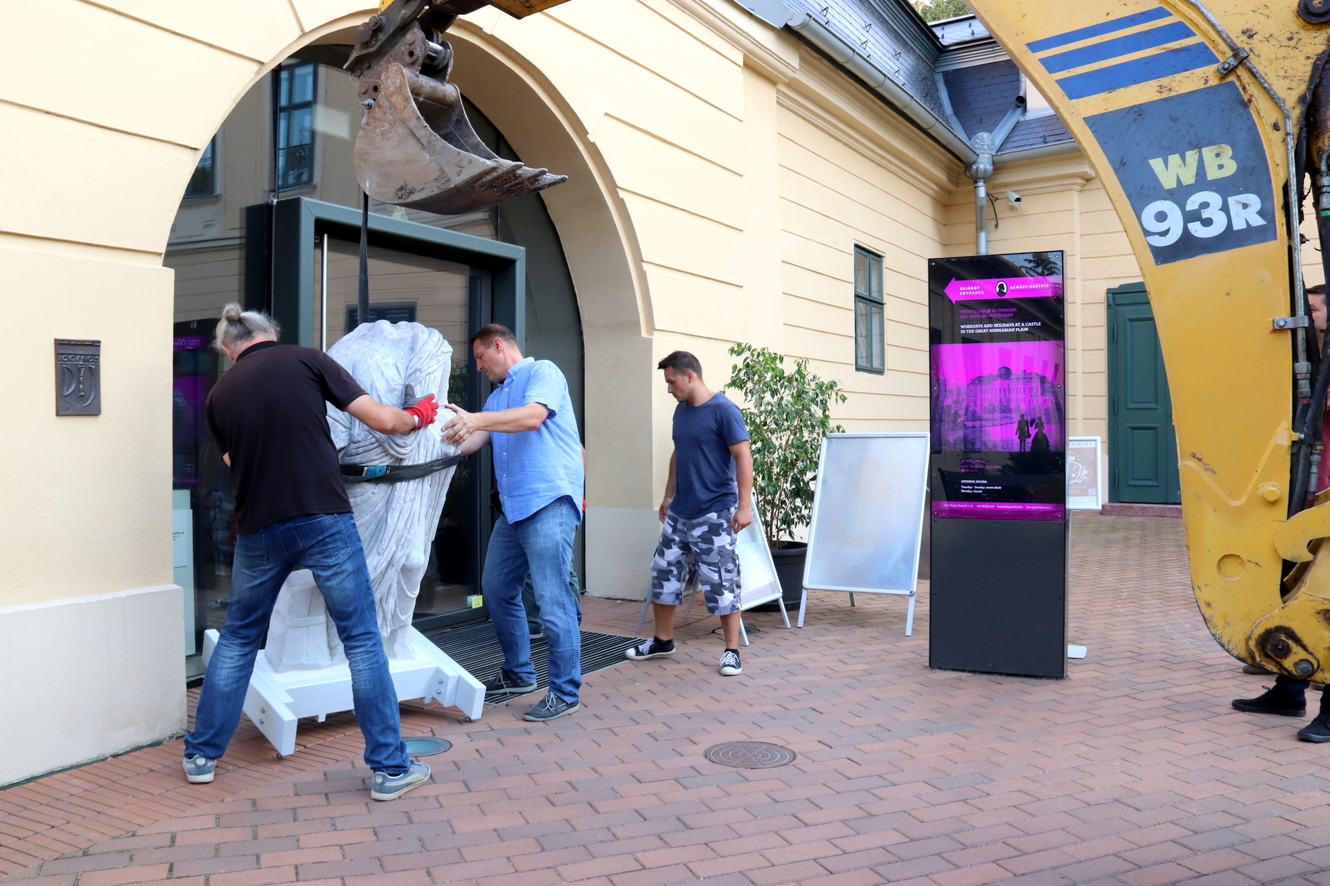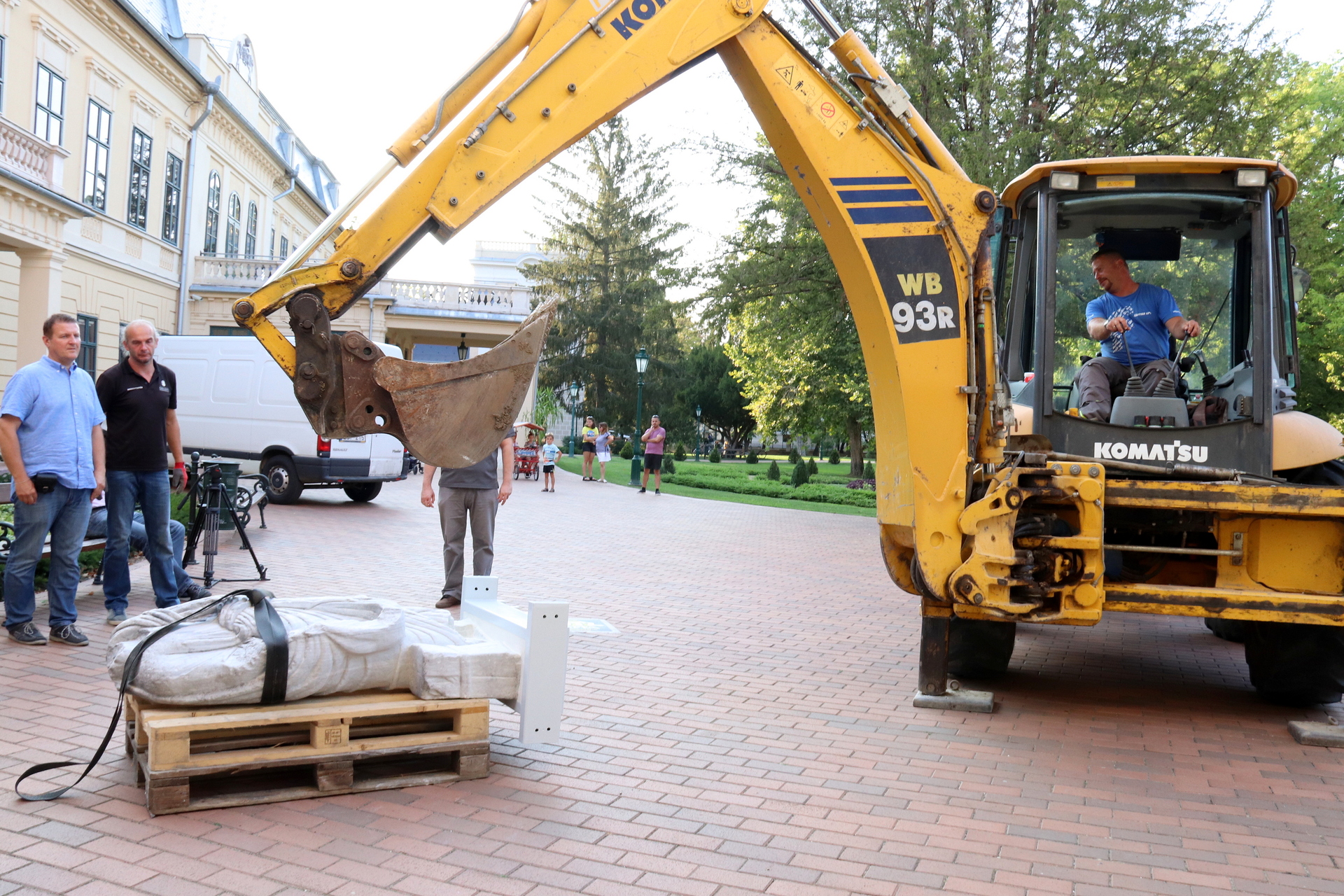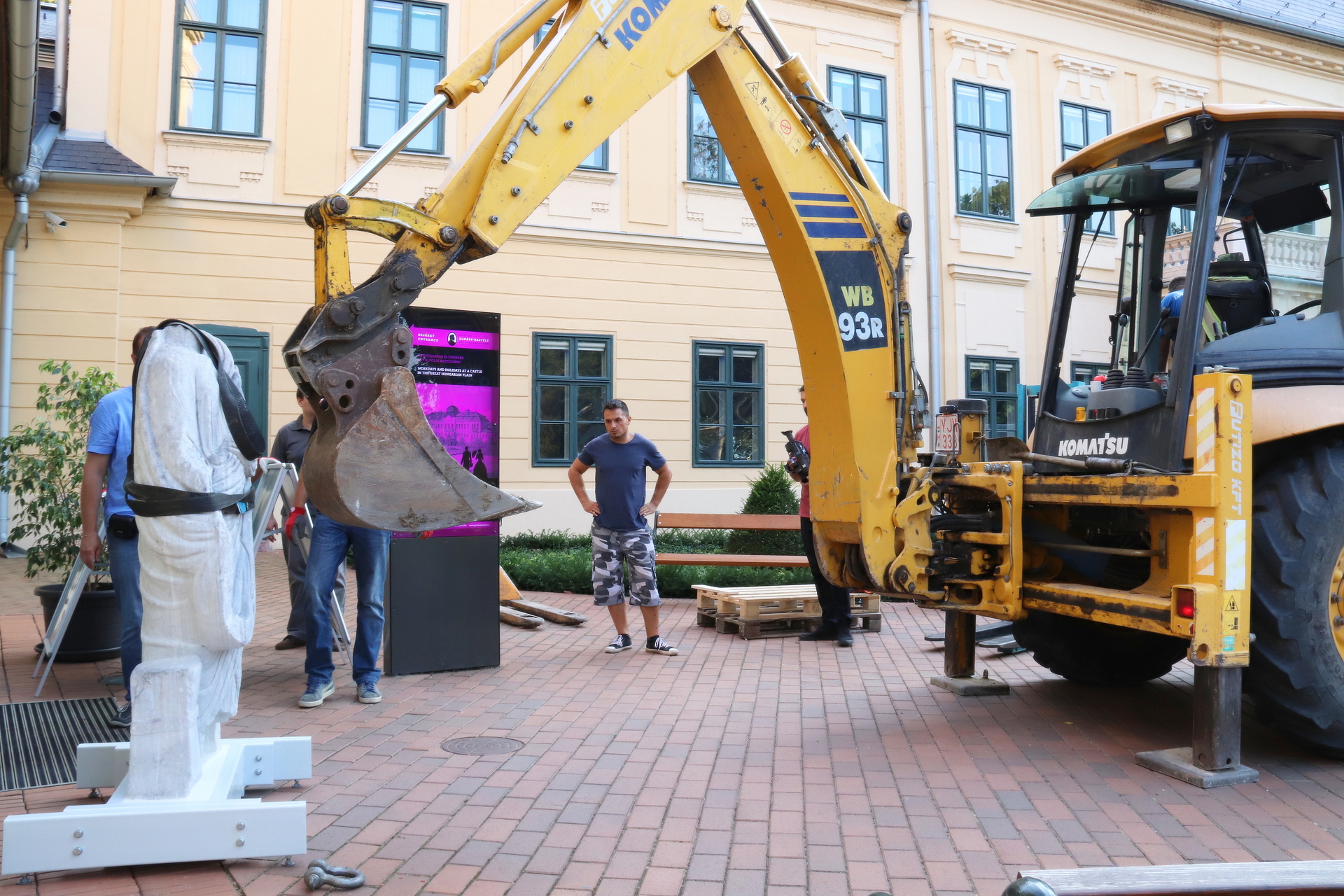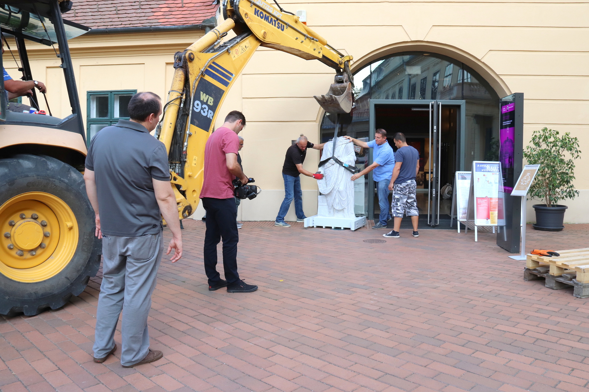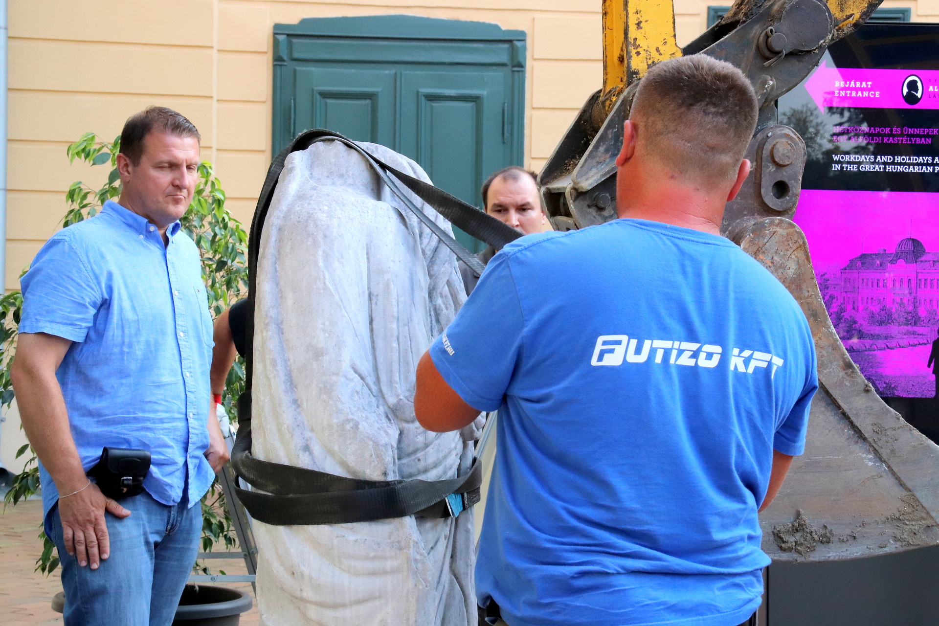 Nehezen, de törés nélkül került a helyére a több száz kilós restaurált római márványszobor