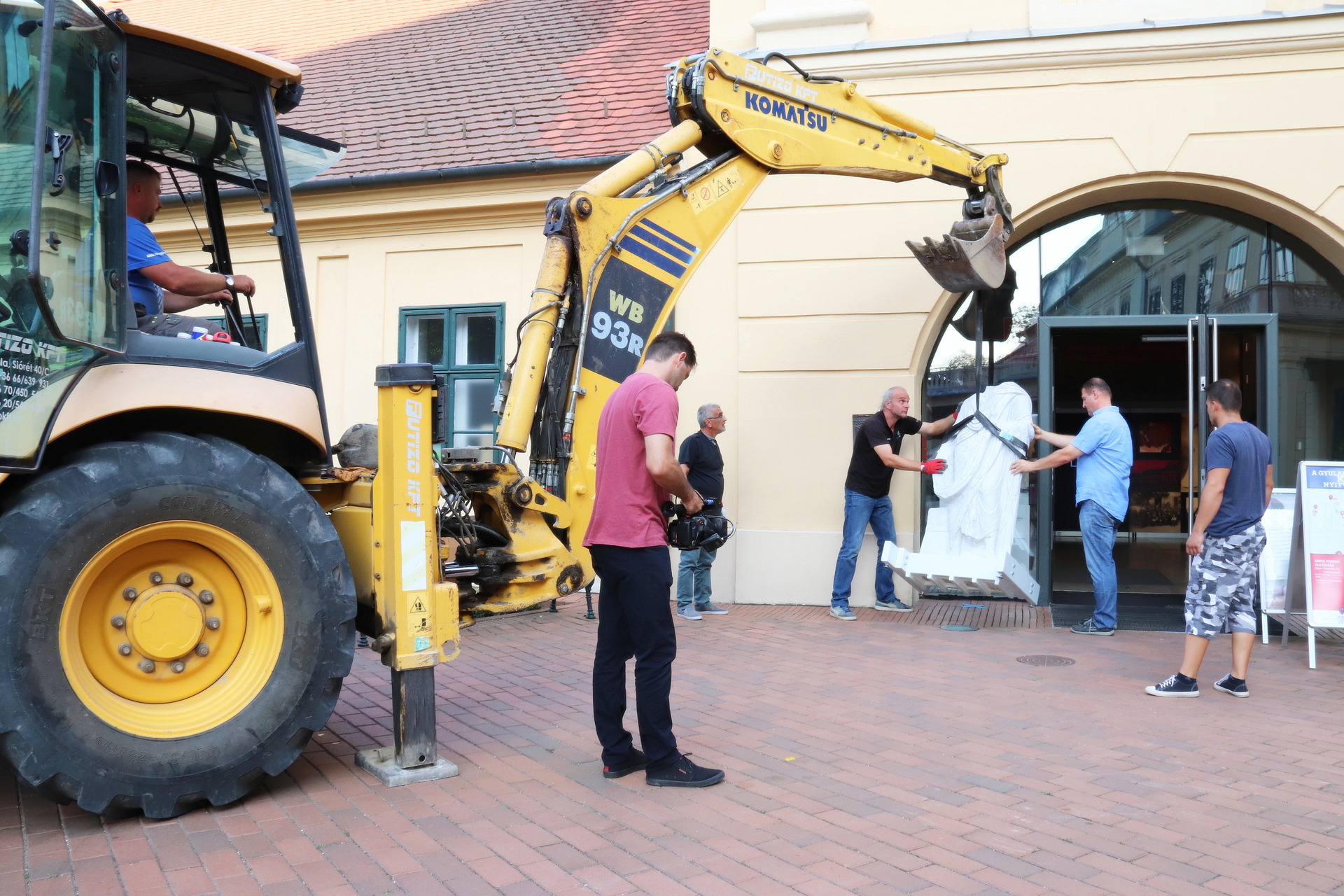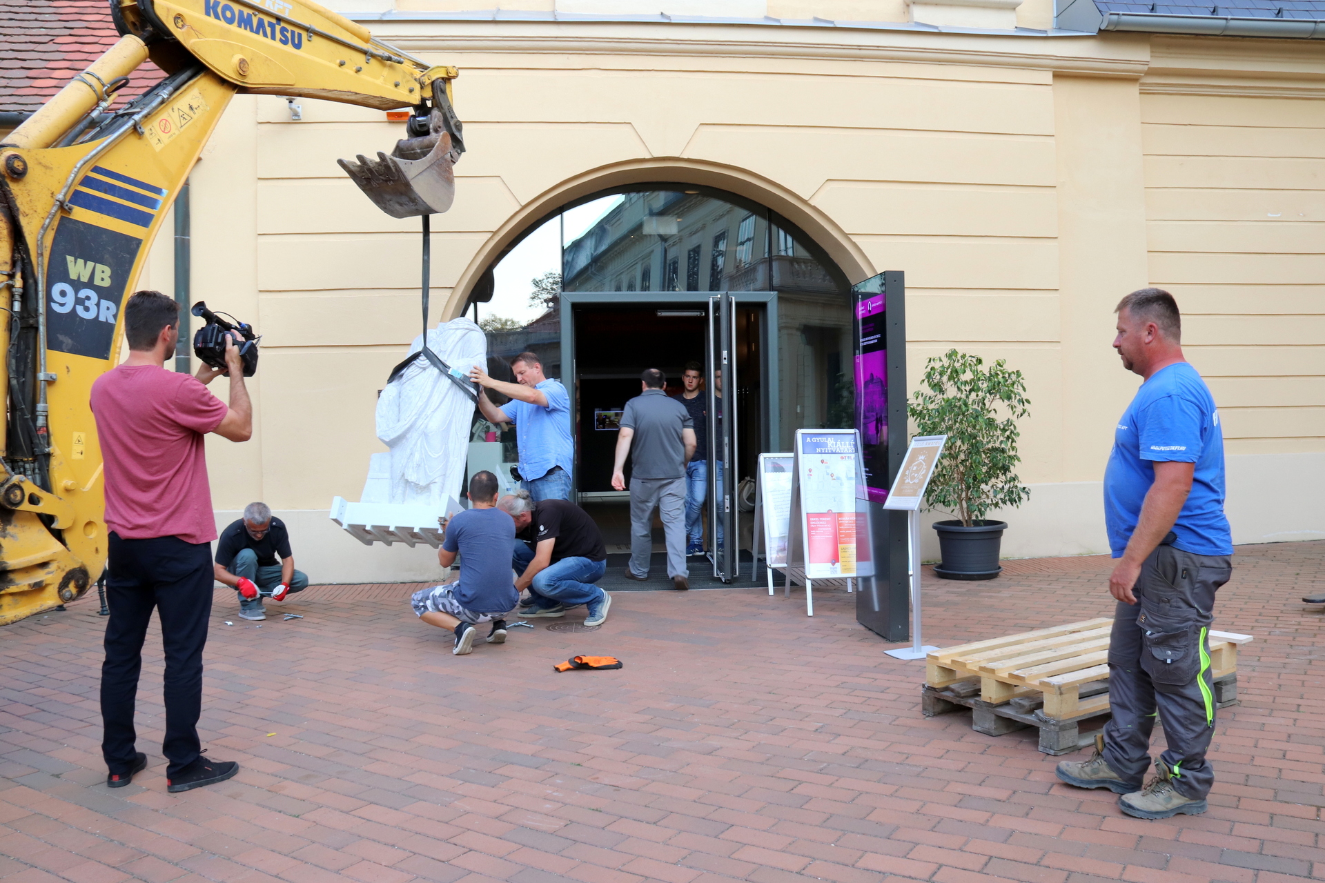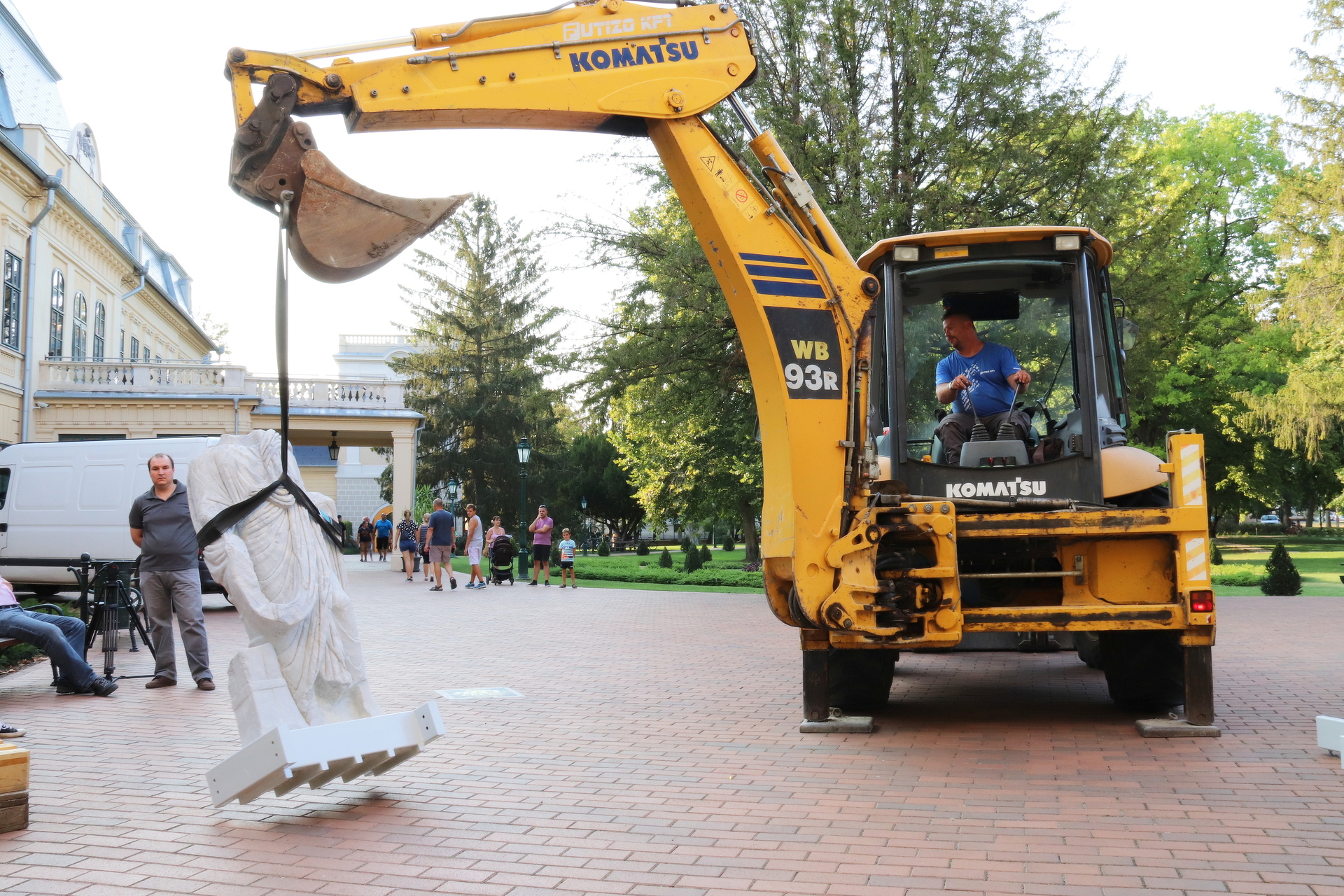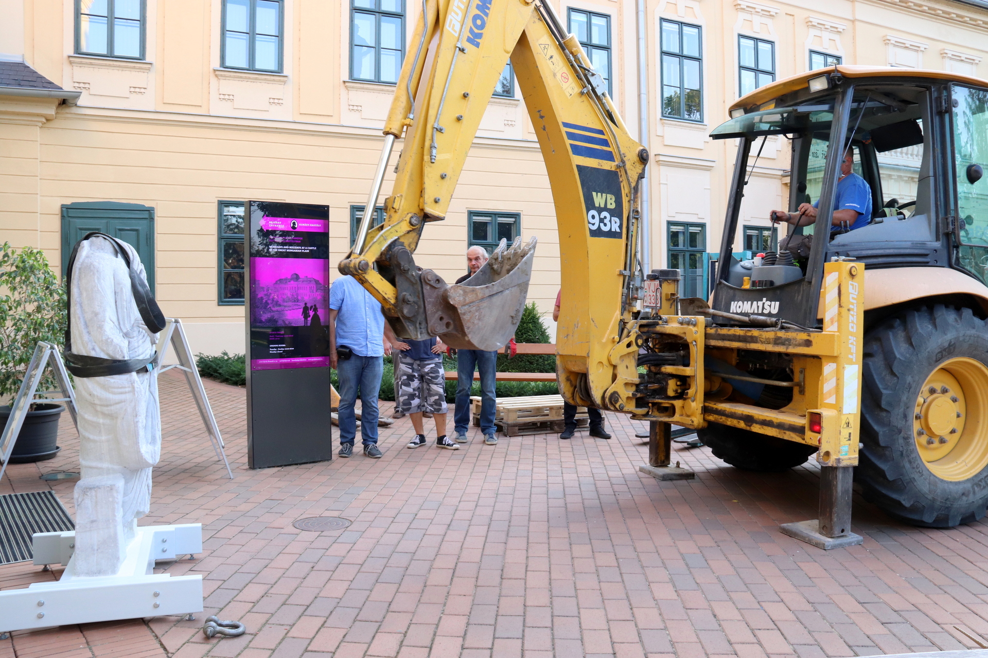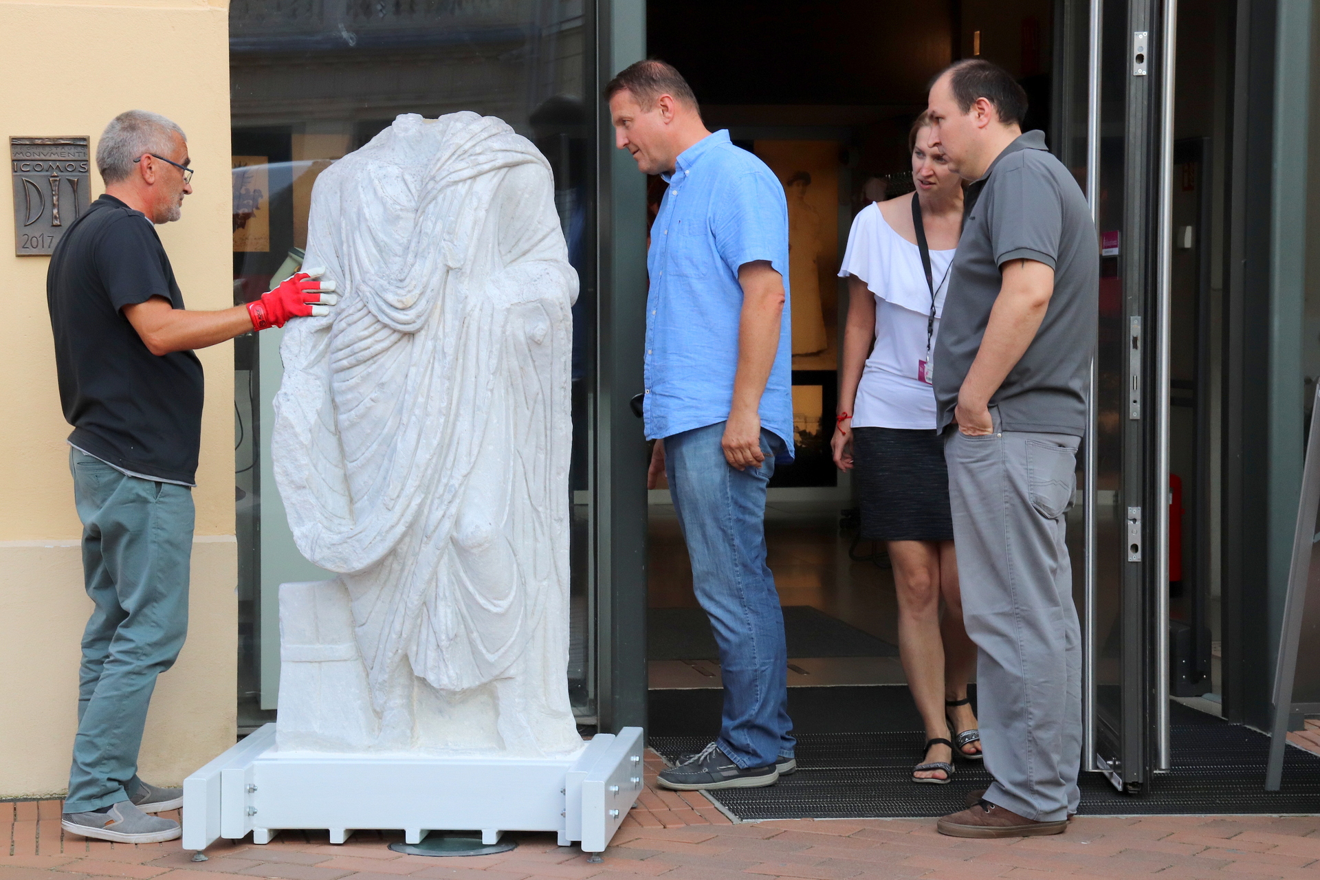 Nehezen, de törés nélkül került a helyére a több száz kilós restaurált római márványszobor