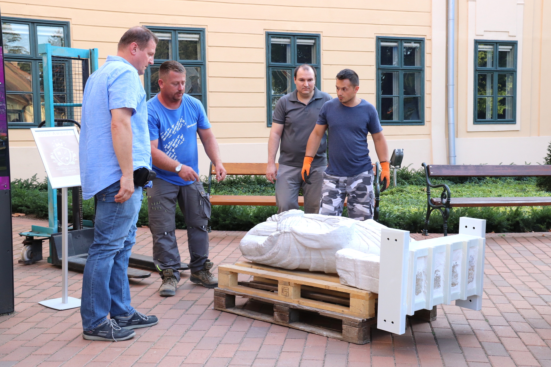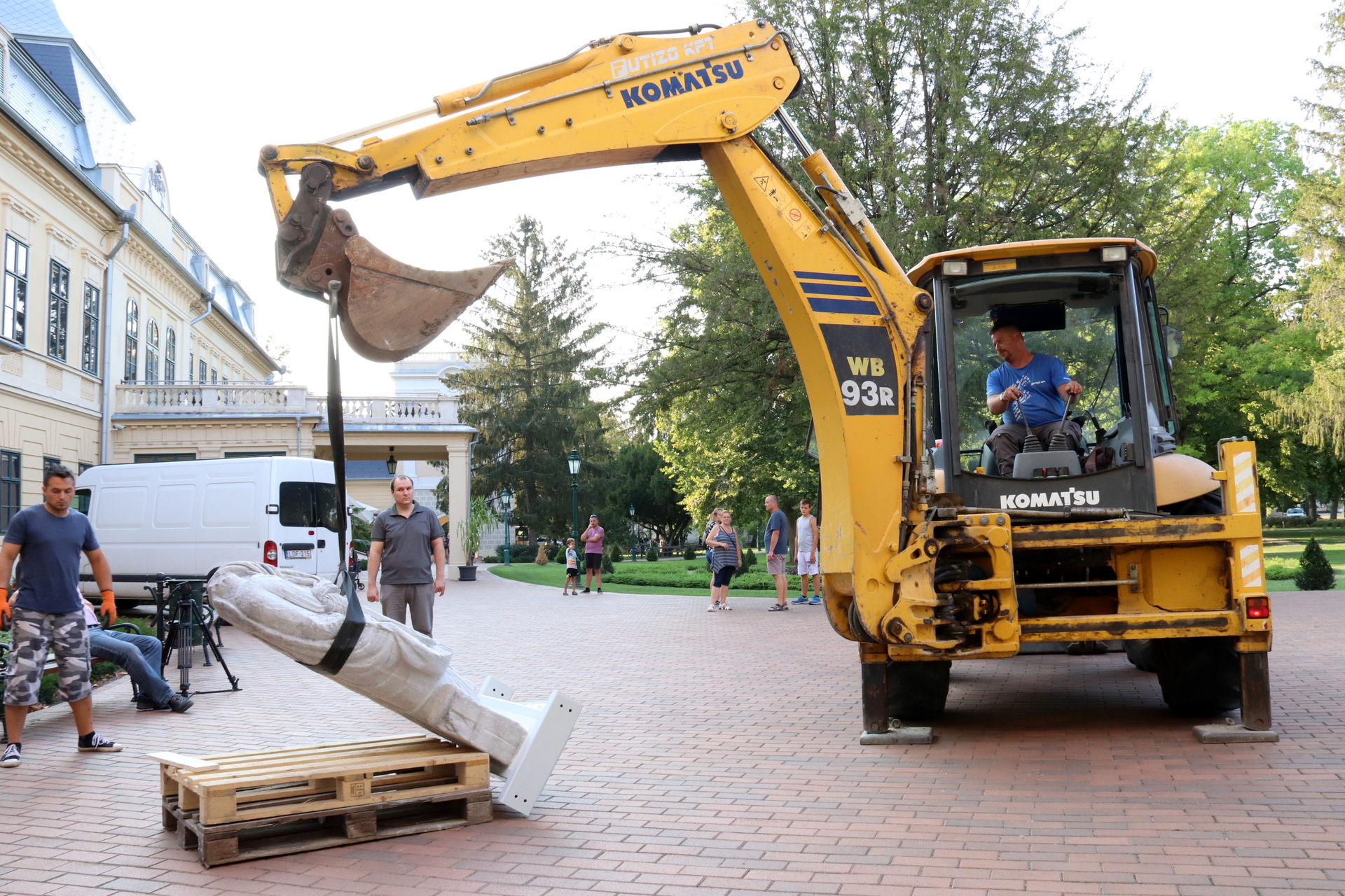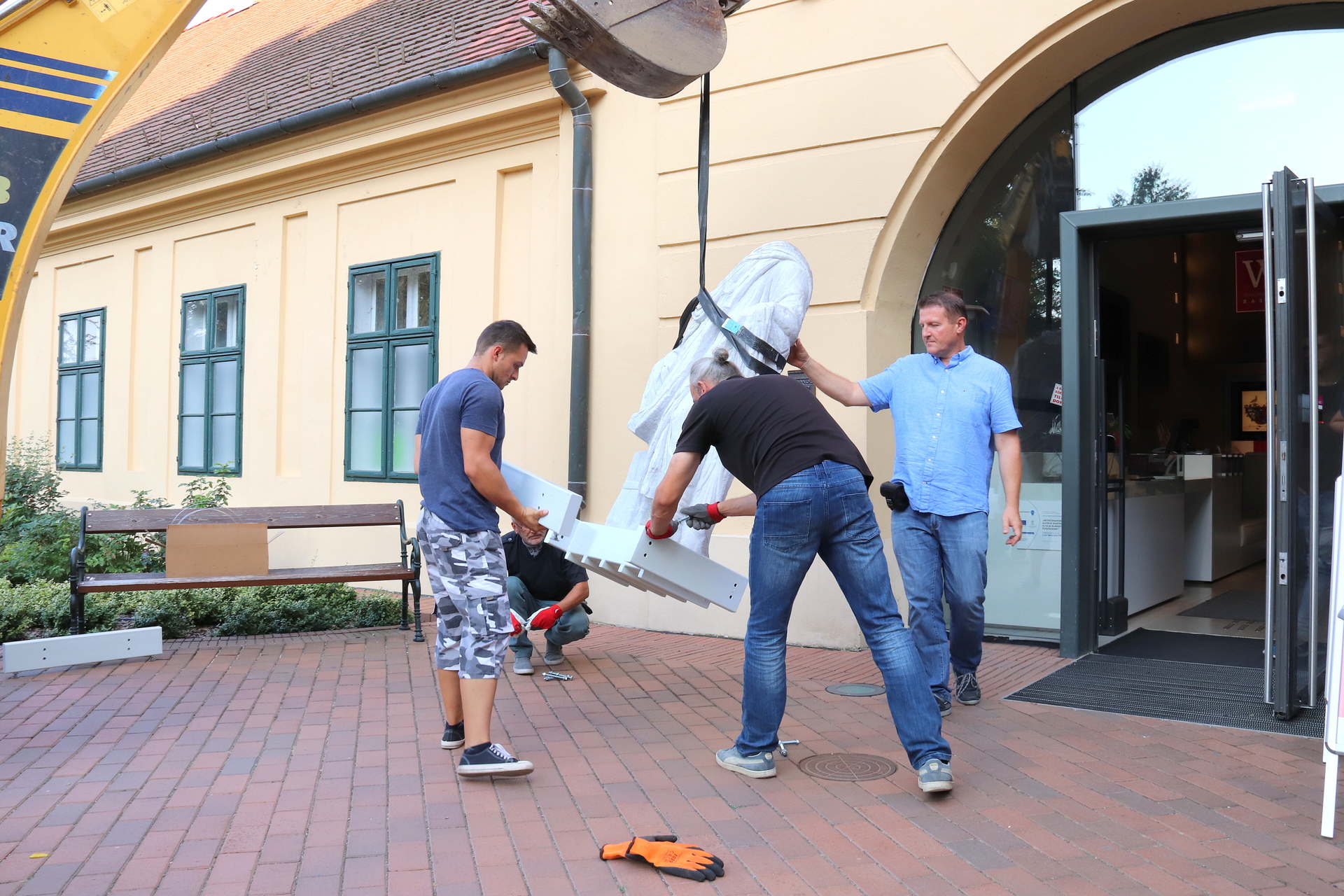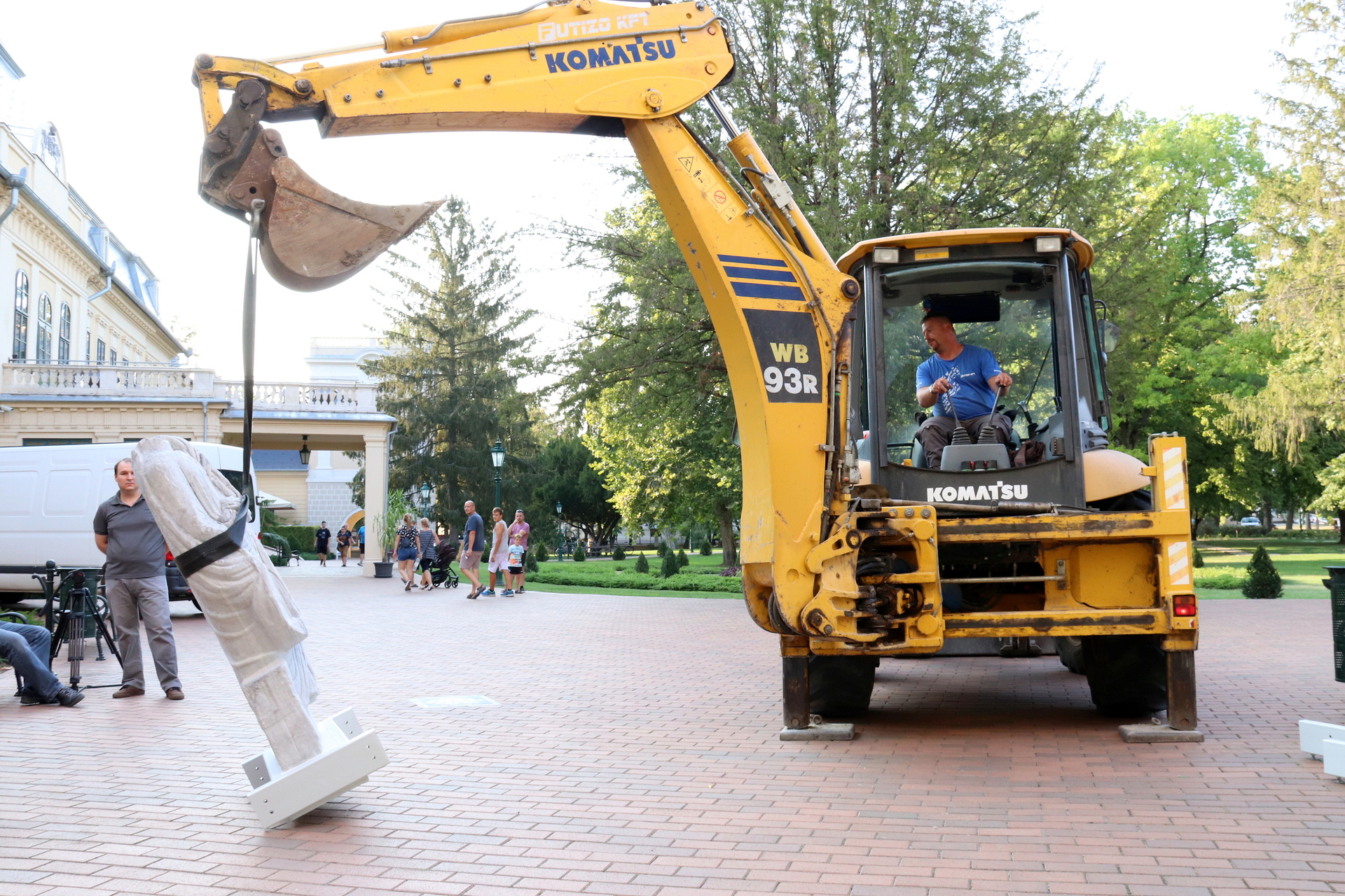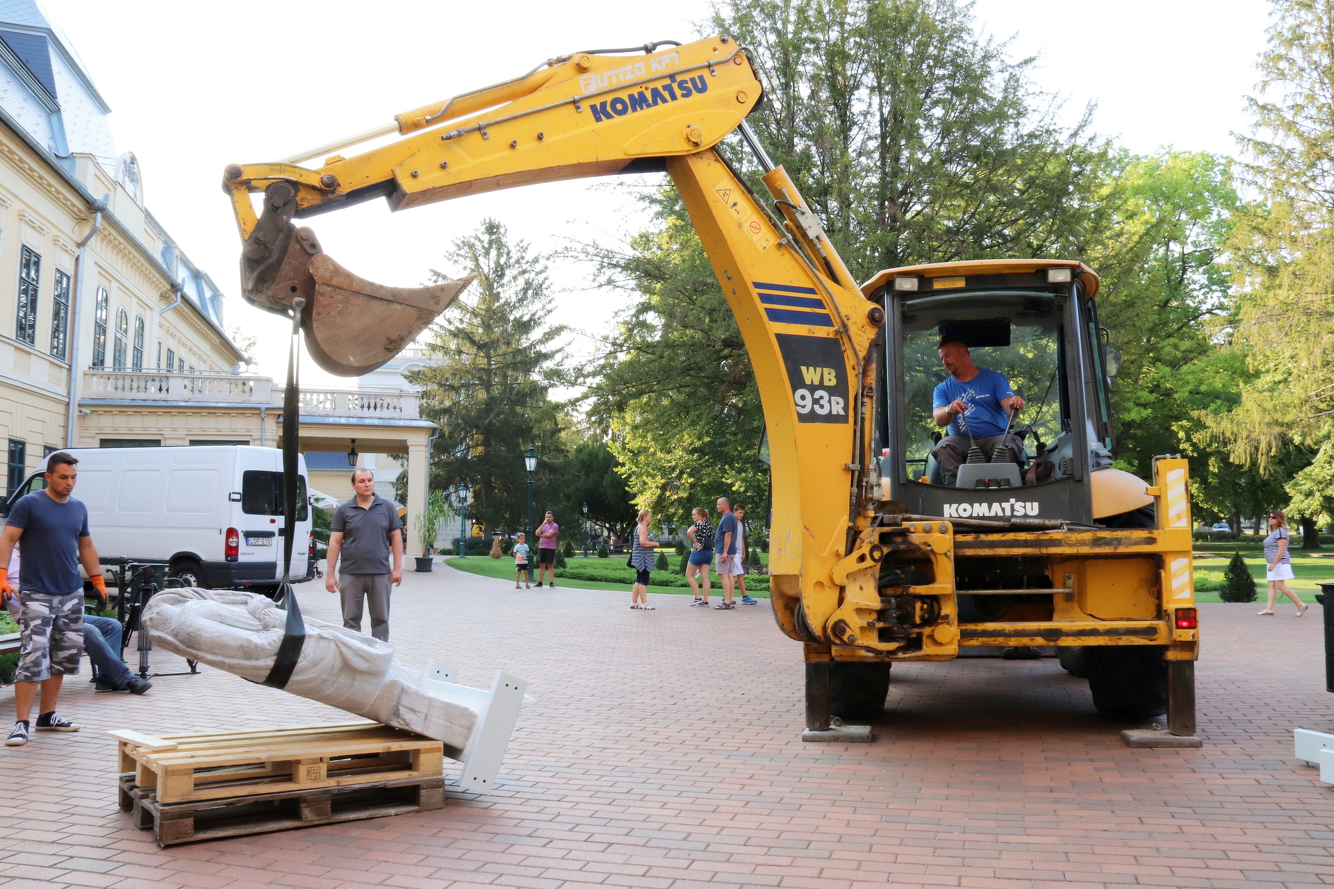 Nehezen, de törés nélkül került a helyére a több száz kilós restaurált római márványszobor
