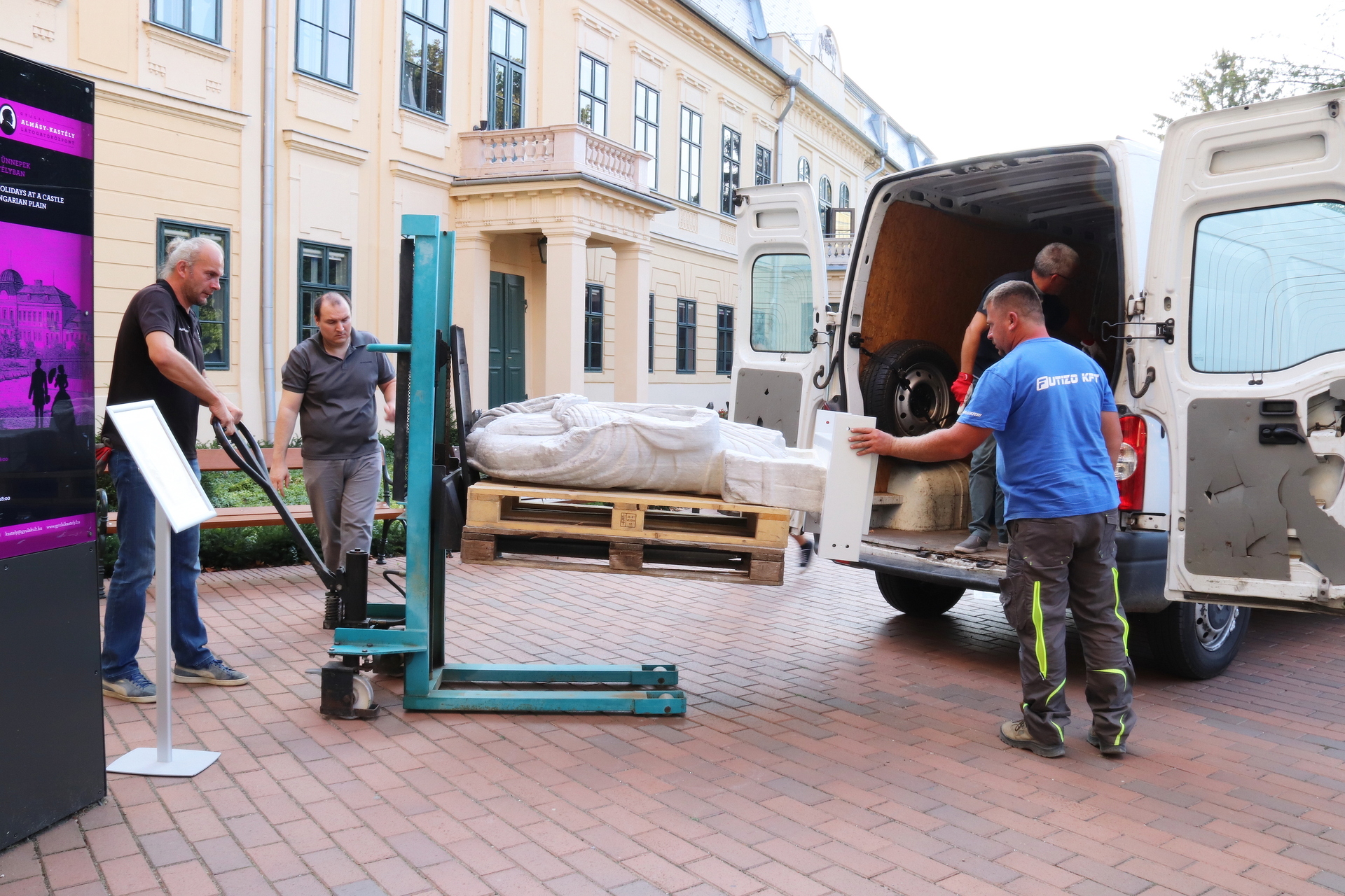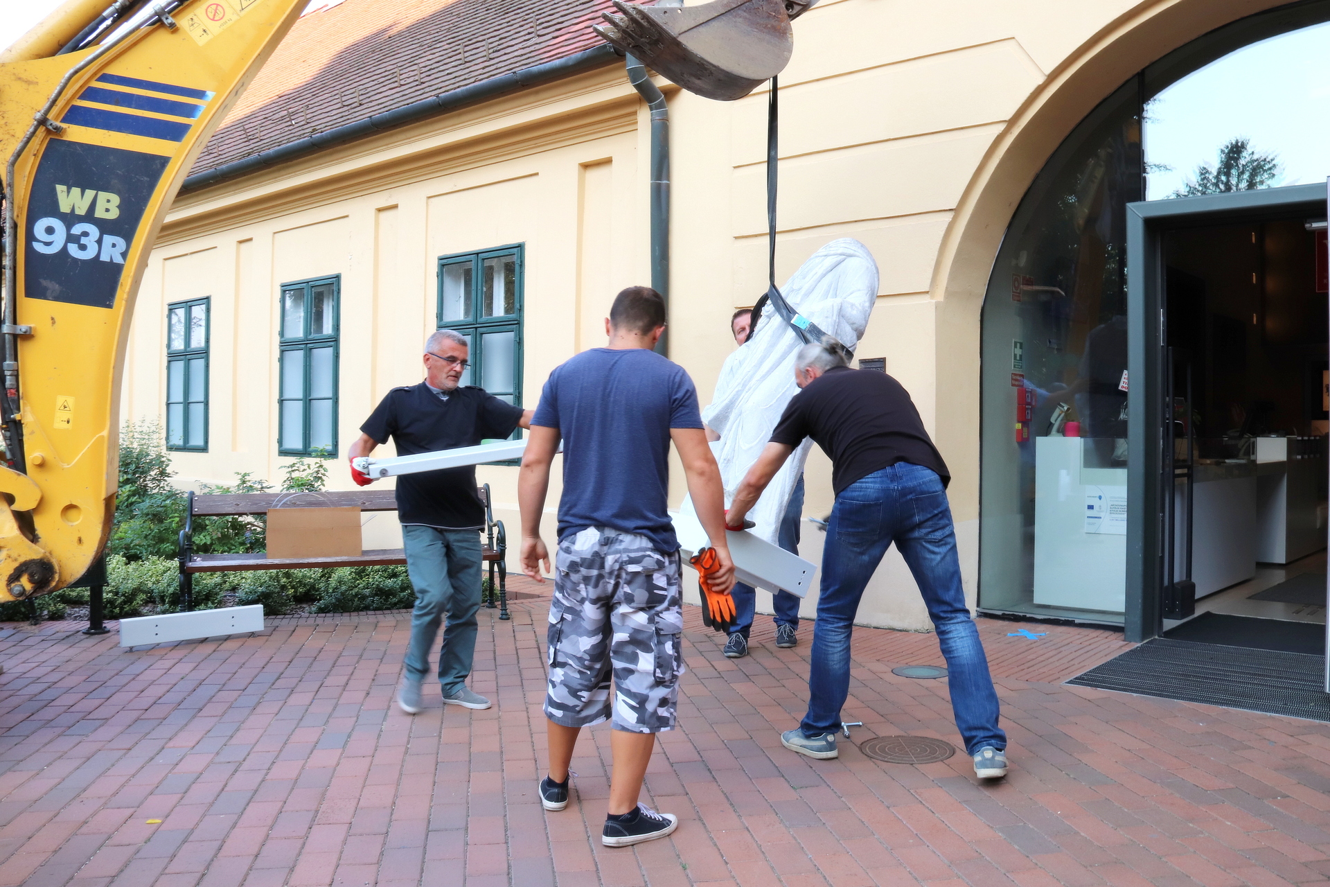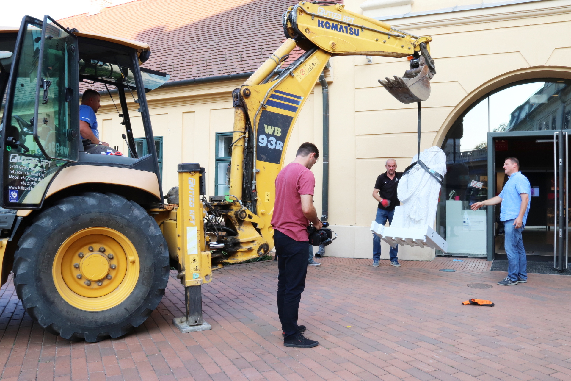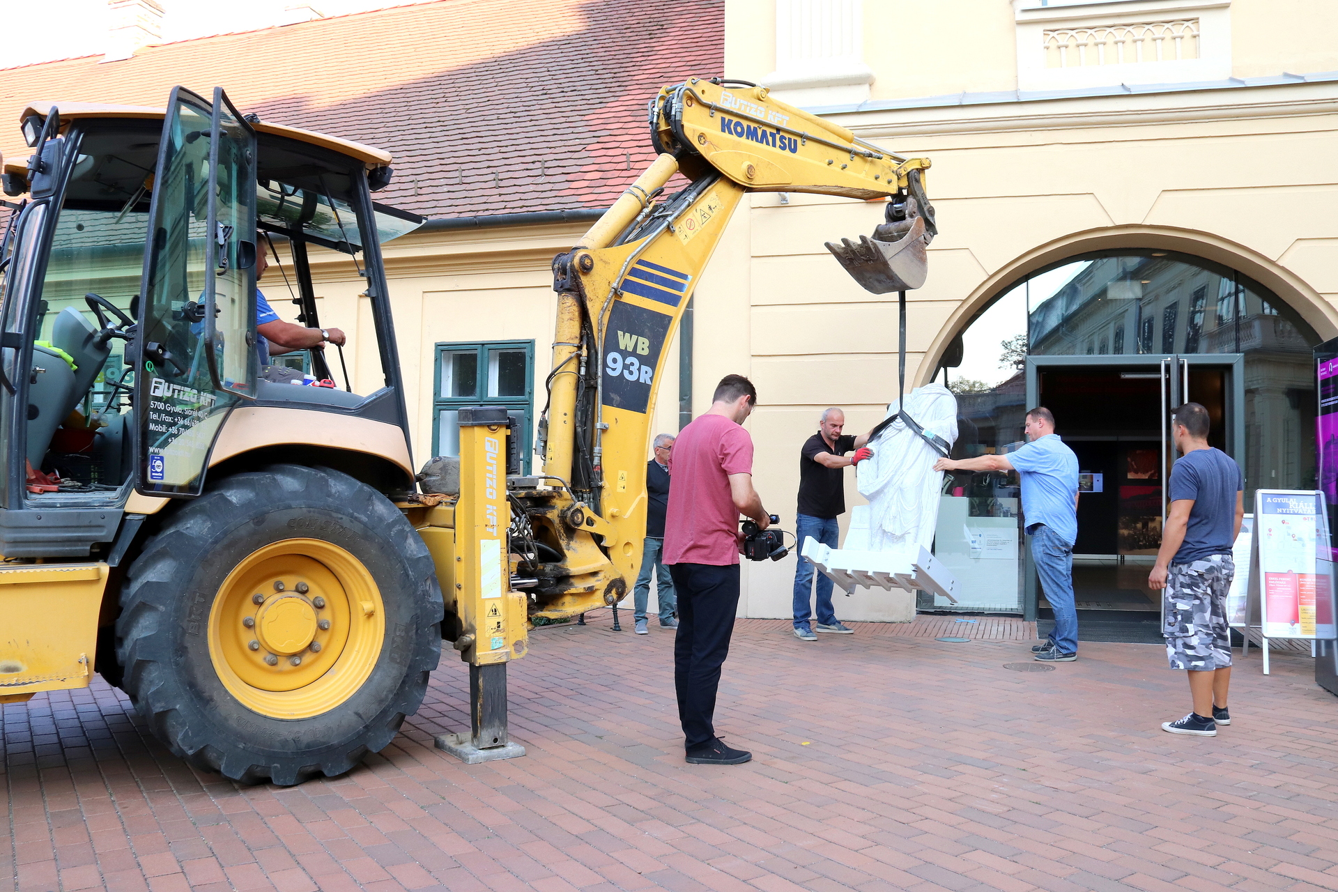 Nehezen, de törés nélkül került a helyére a több száz kilós restaurált római márványszobor